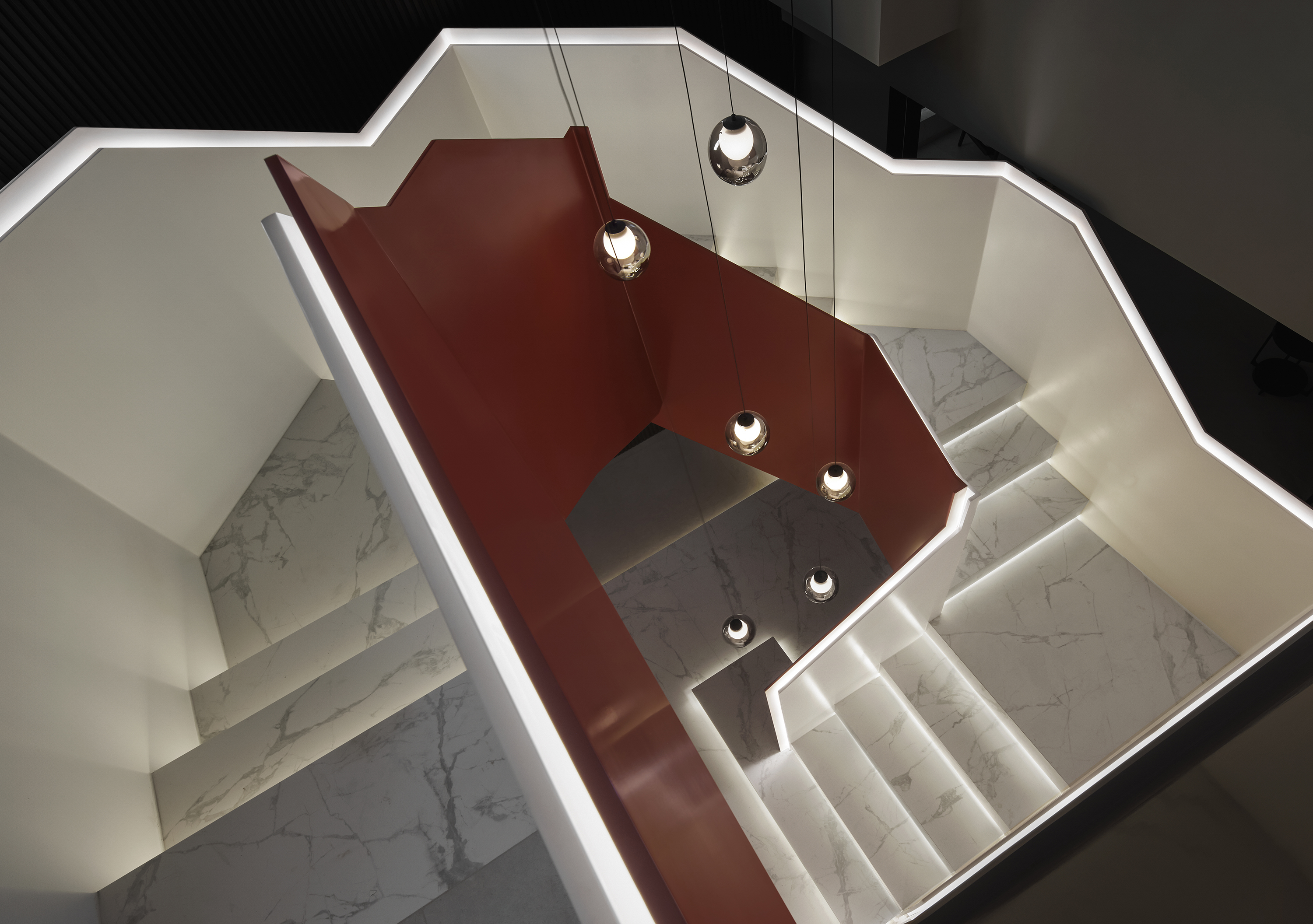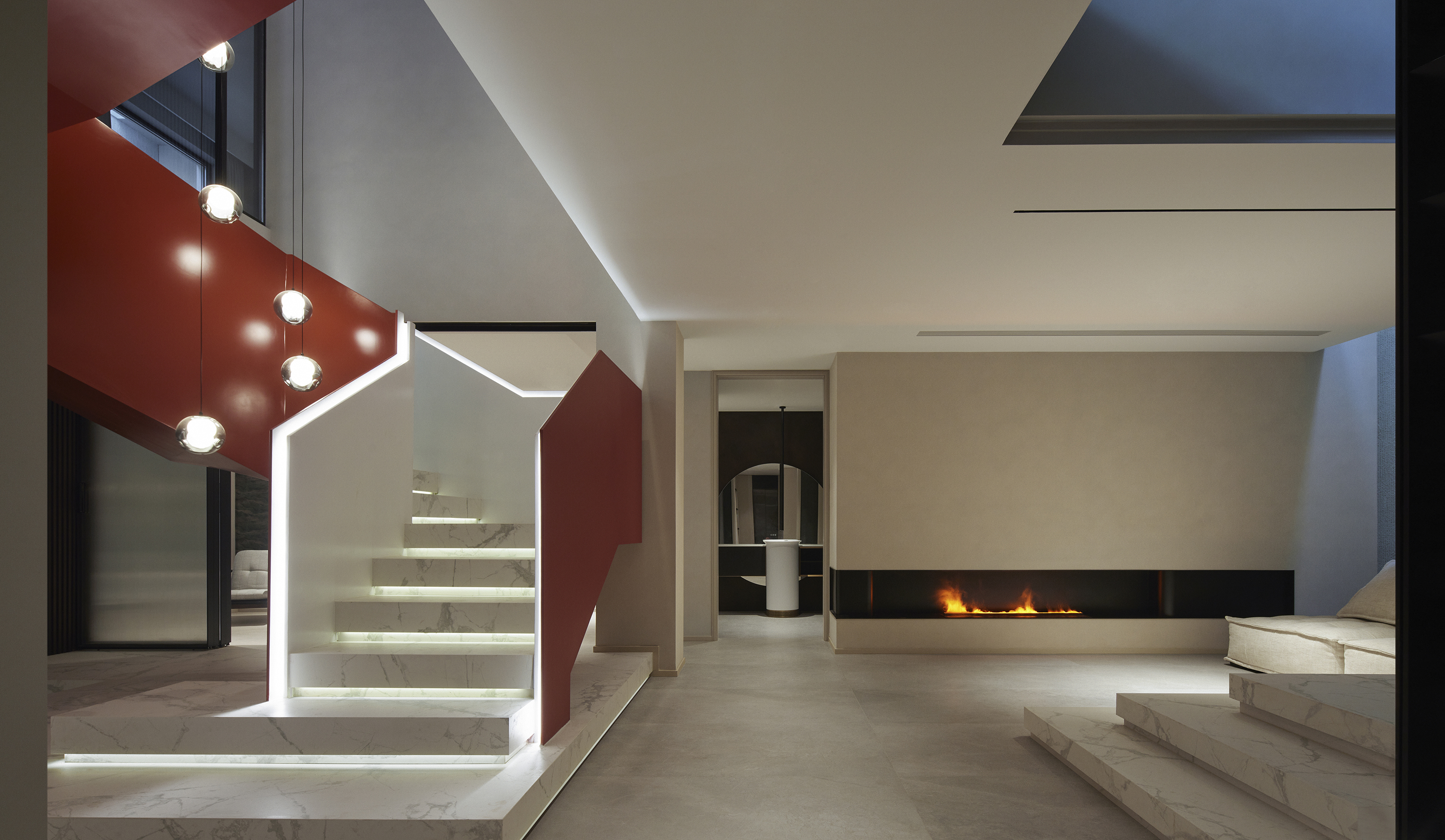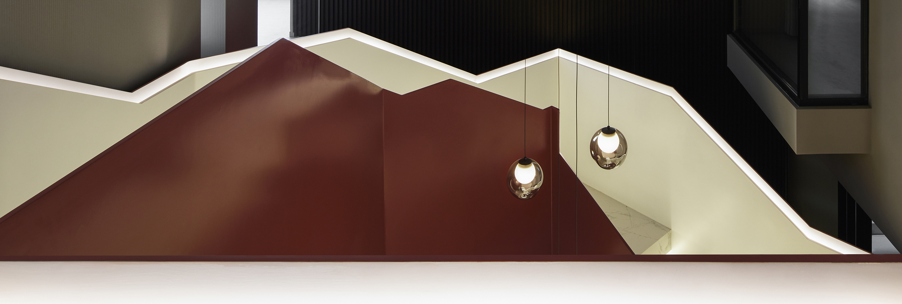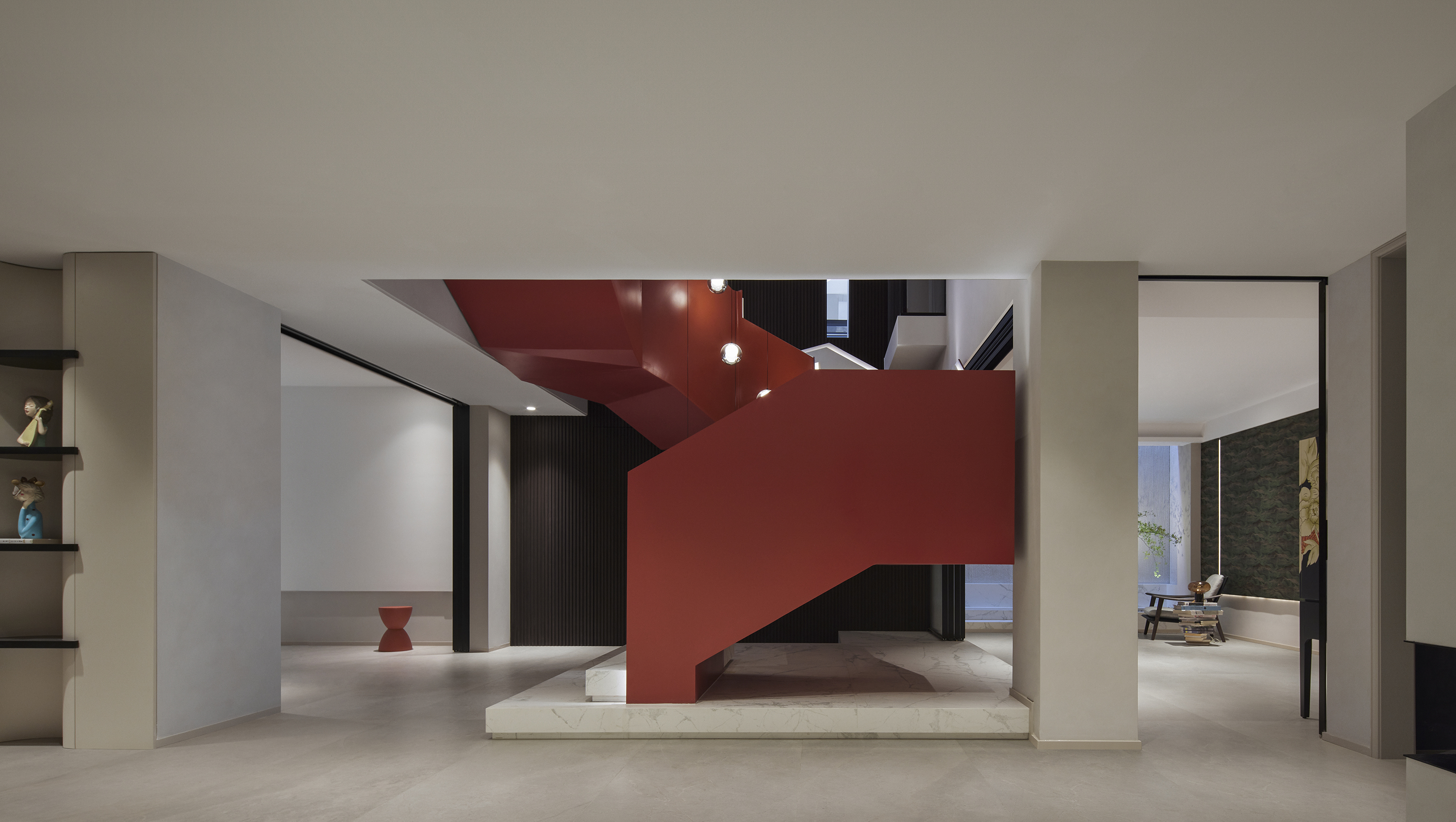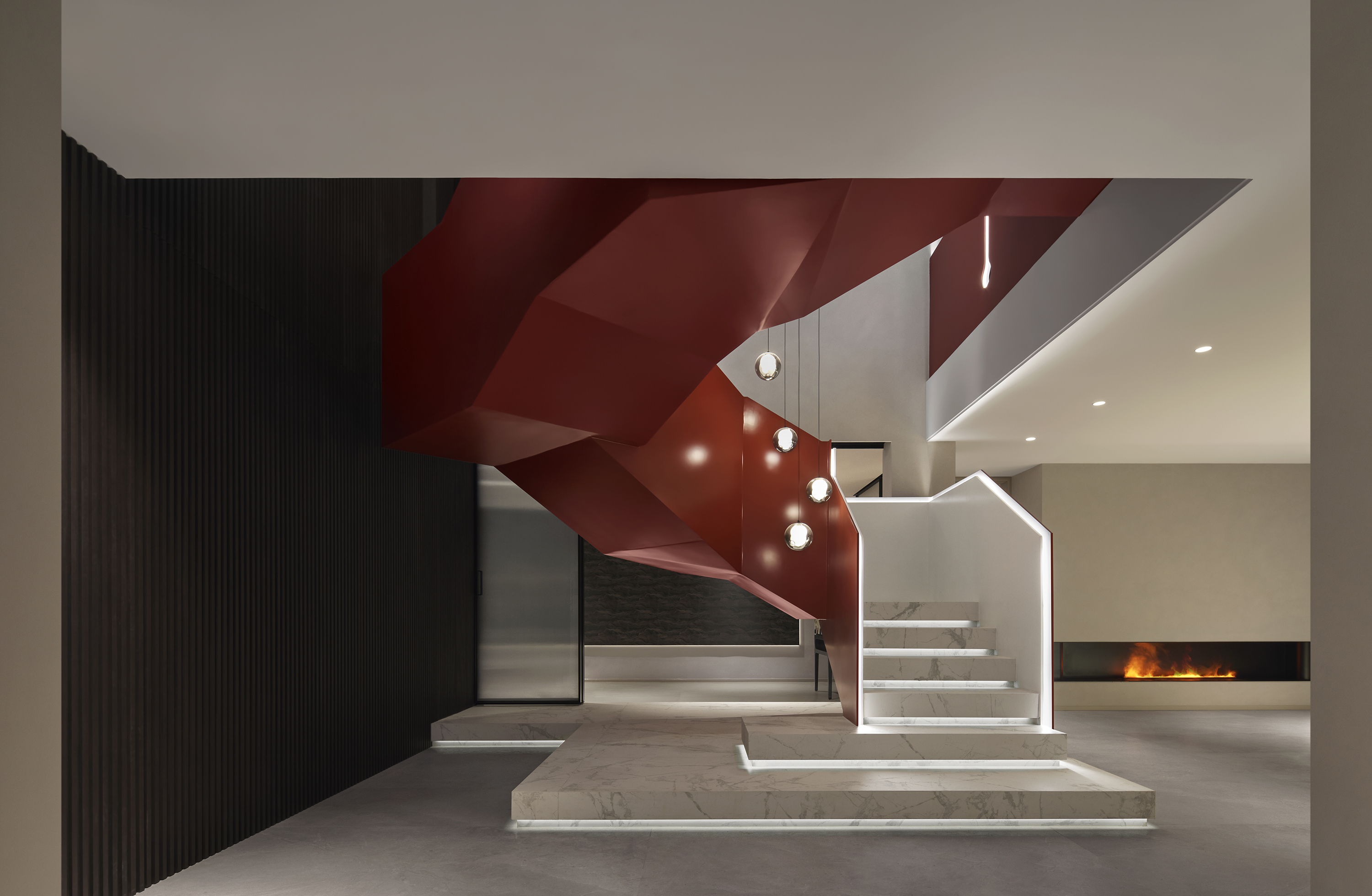 最后用特殊形态的楼梯把地下二层与地下一层做了挑空。让地下空间的光与空气在各个方向都有了更好传递与交互。让地下空间摆脱固有缺陷。有更宜居的空间条件。 -