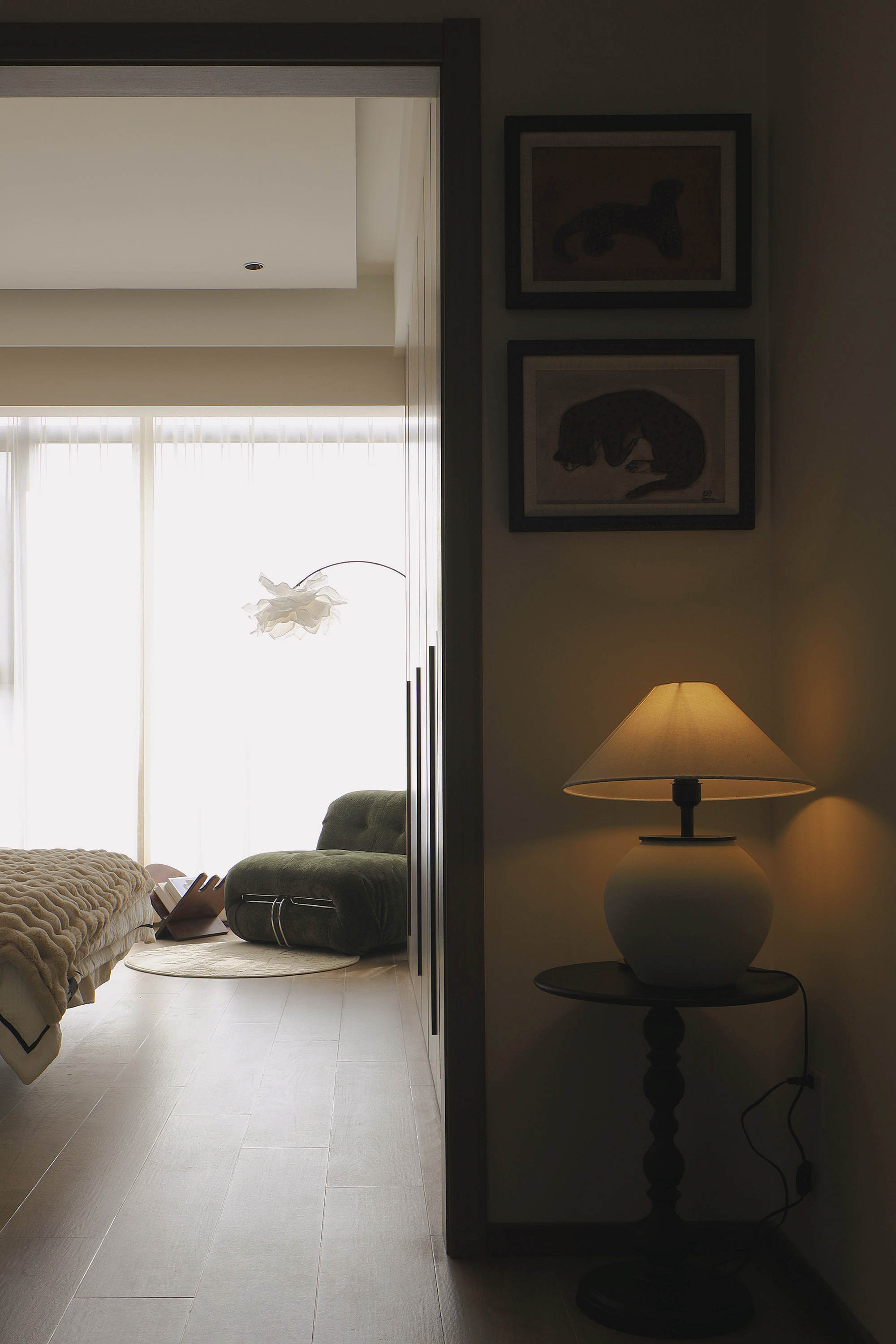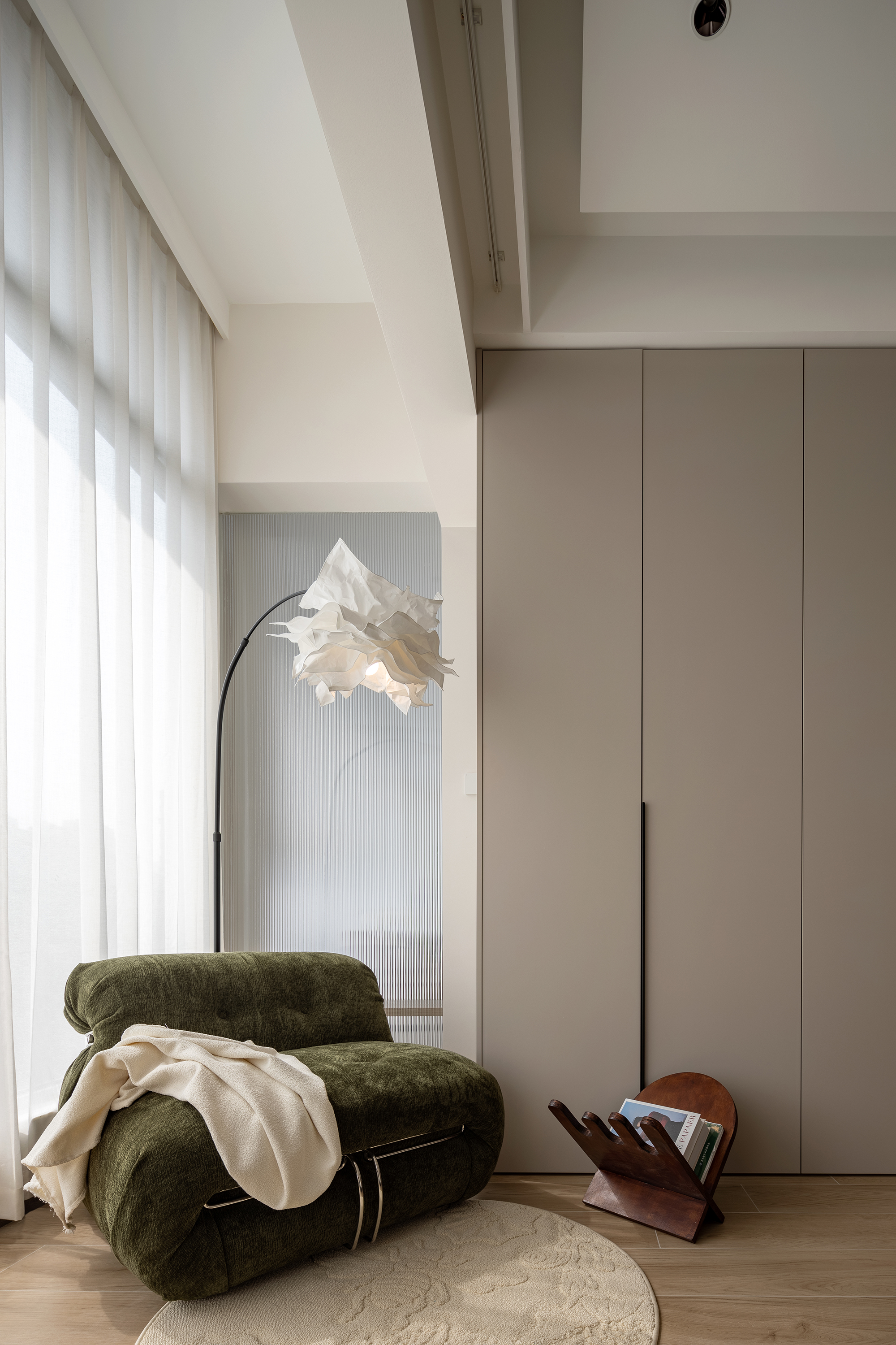 3.卧房与客厅之间的半透玻璃隔断,我想让卧室留有一些幻想,同时会感受到空间的延伸和期待,让思绪会飞一下。