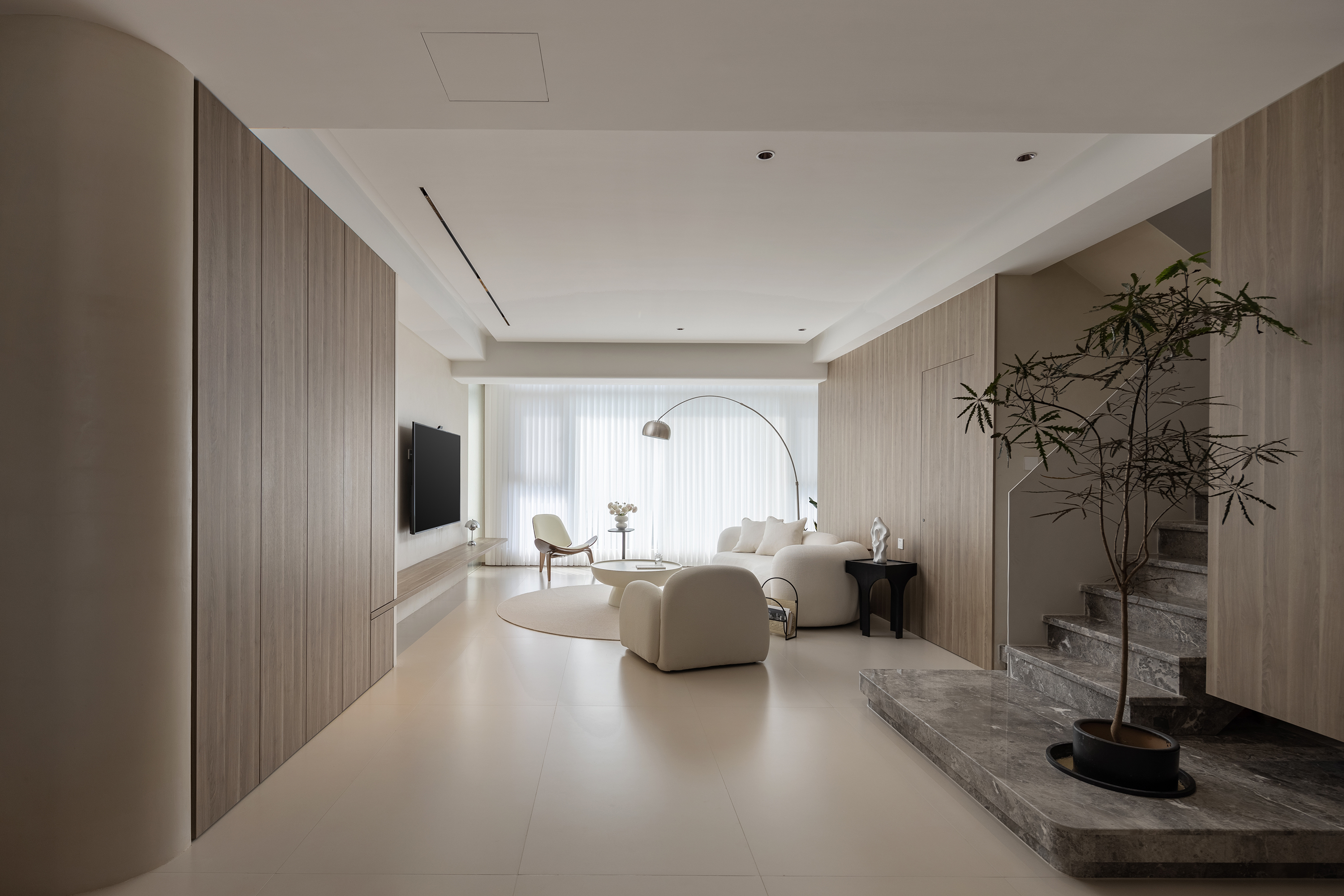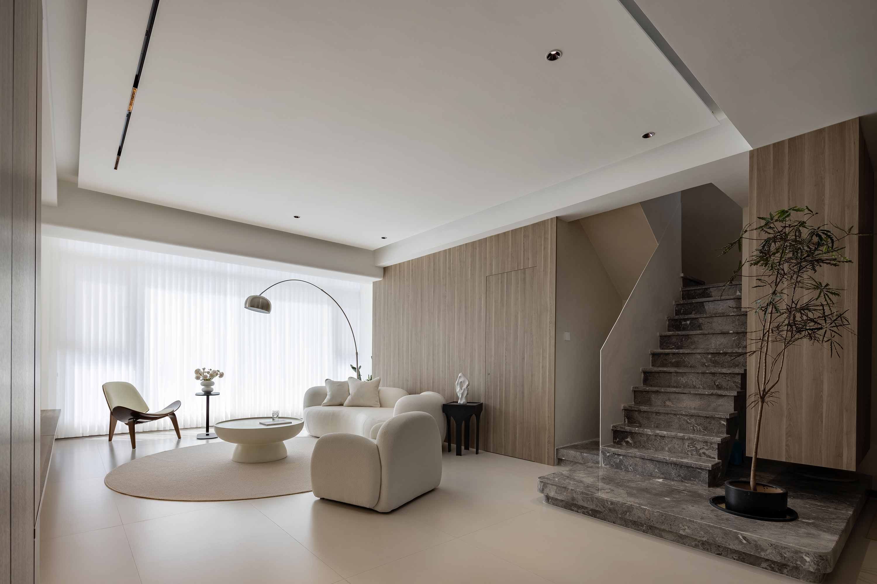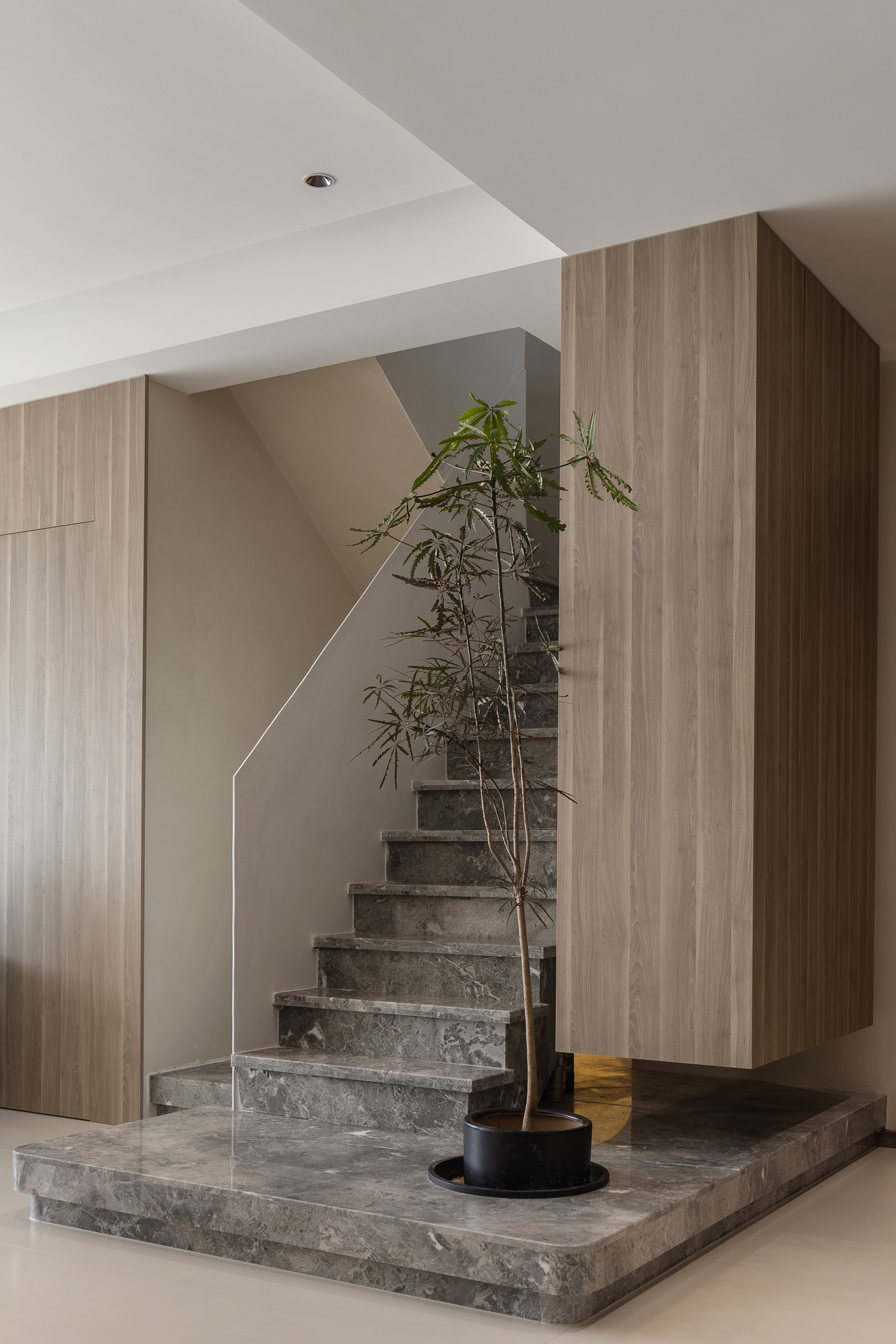 1.本案以连接两层的楼梯为切入点,营造透景,错景的奇妙体验,和心情的起伏。