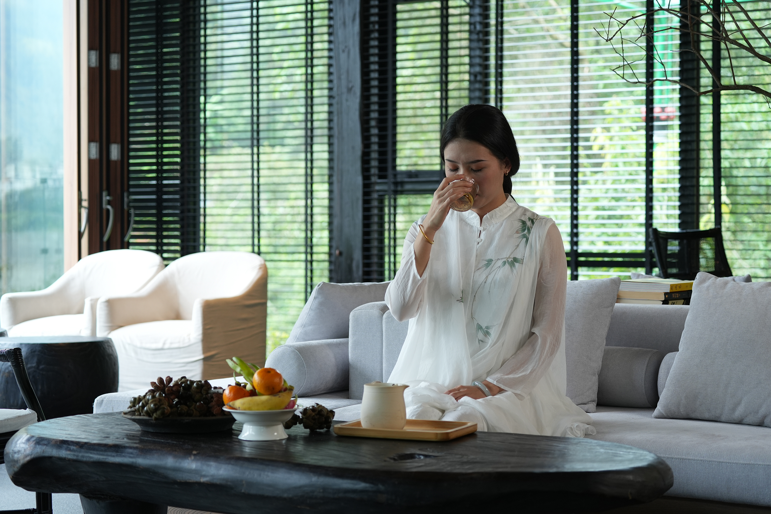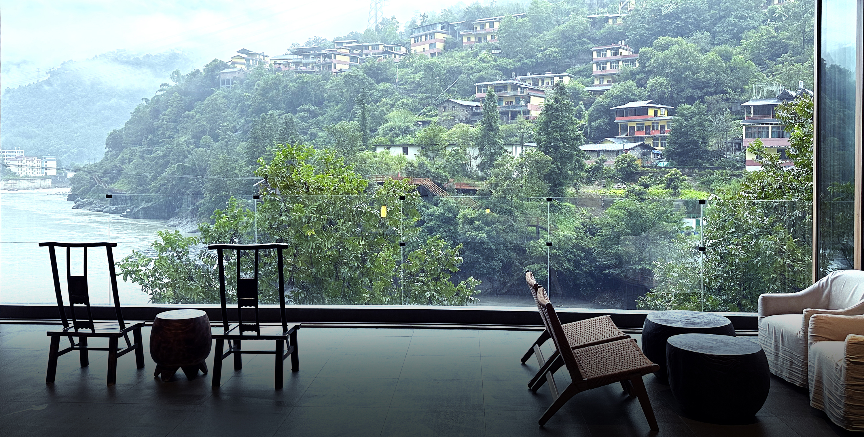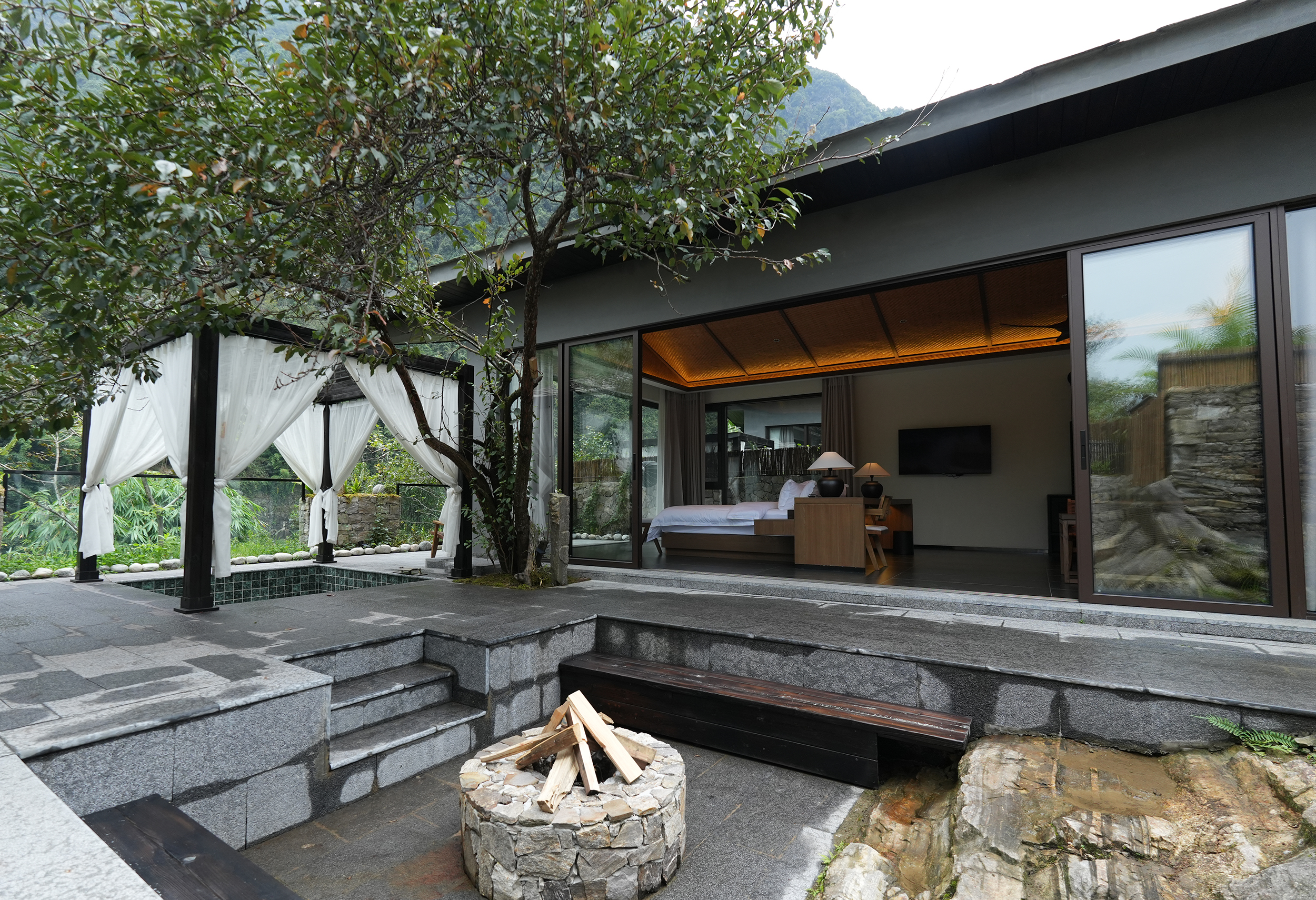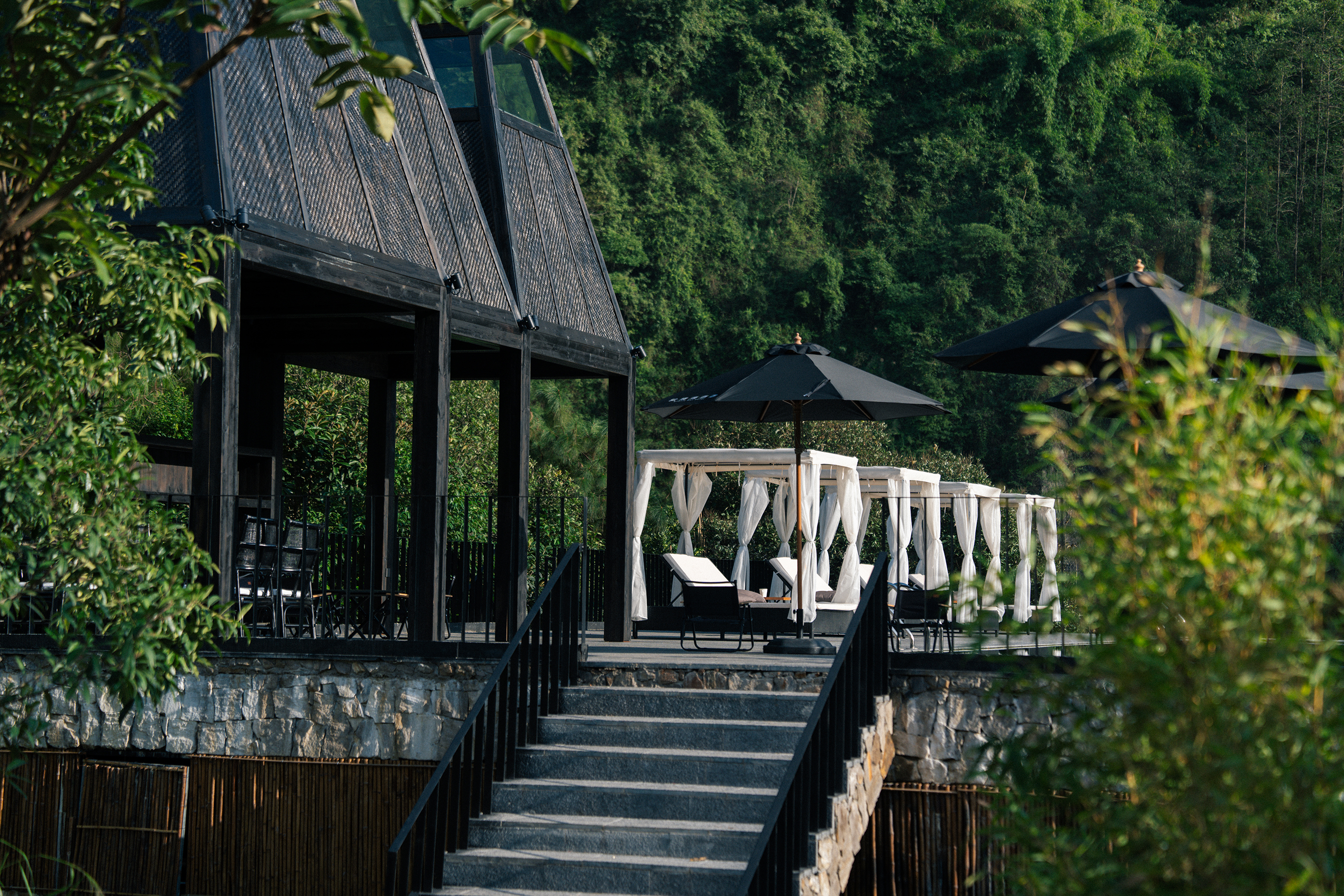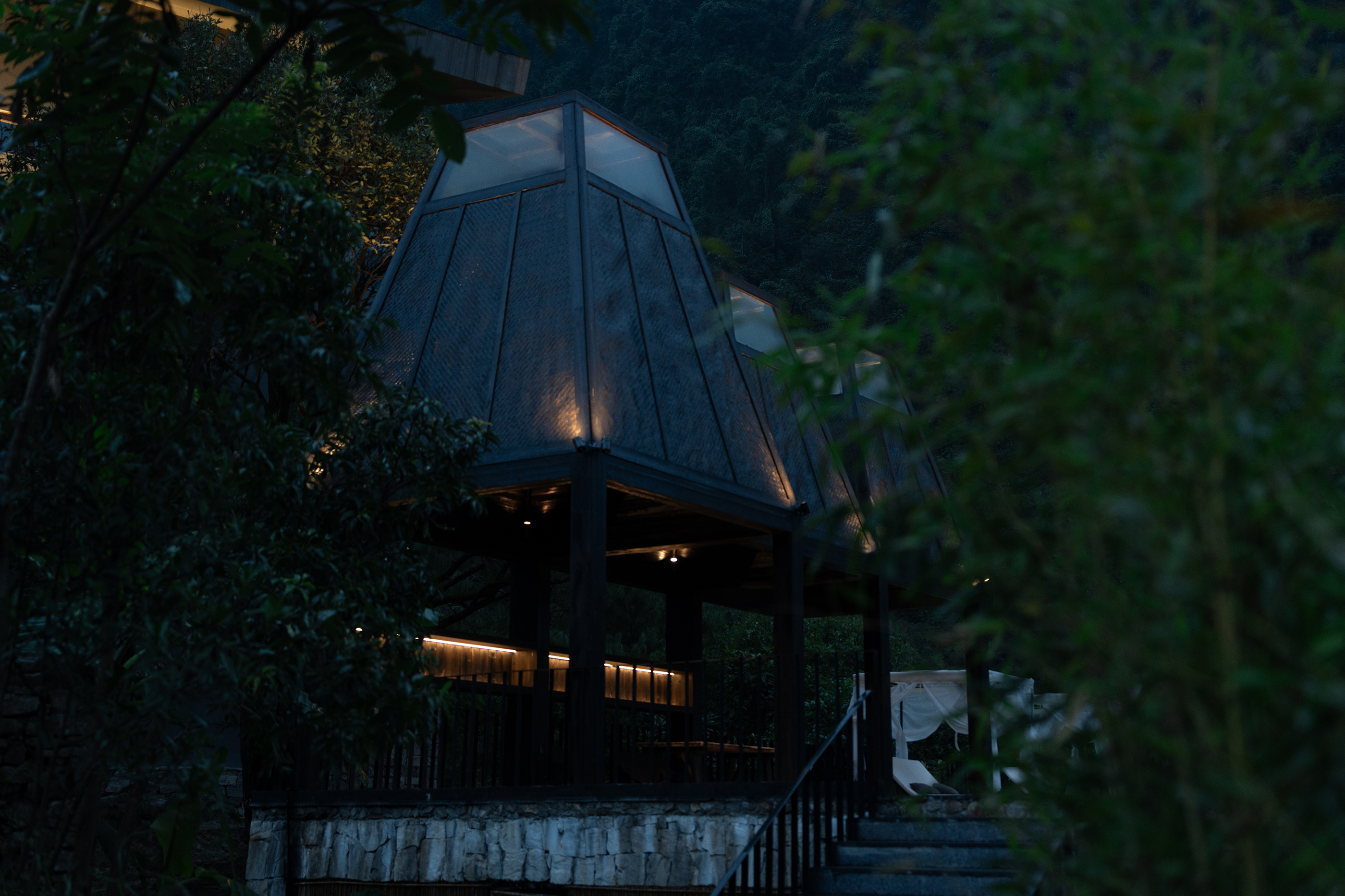 设计通过“自然而然,顺势而为”的建筑哲学,依山势而做建筑,在山间构筑一个避世又能触碰烟火的疗愈之所,理想和日常、山水和城市、当代性和在地性对抗后的虛实和调和,建造极简的现代建筑、赋予山水场域精神,让云雾、峡谷、飞瀑、山林、川流能与人内心产生共鸣,达到内观自己,让人的身体和心灵得到放空。