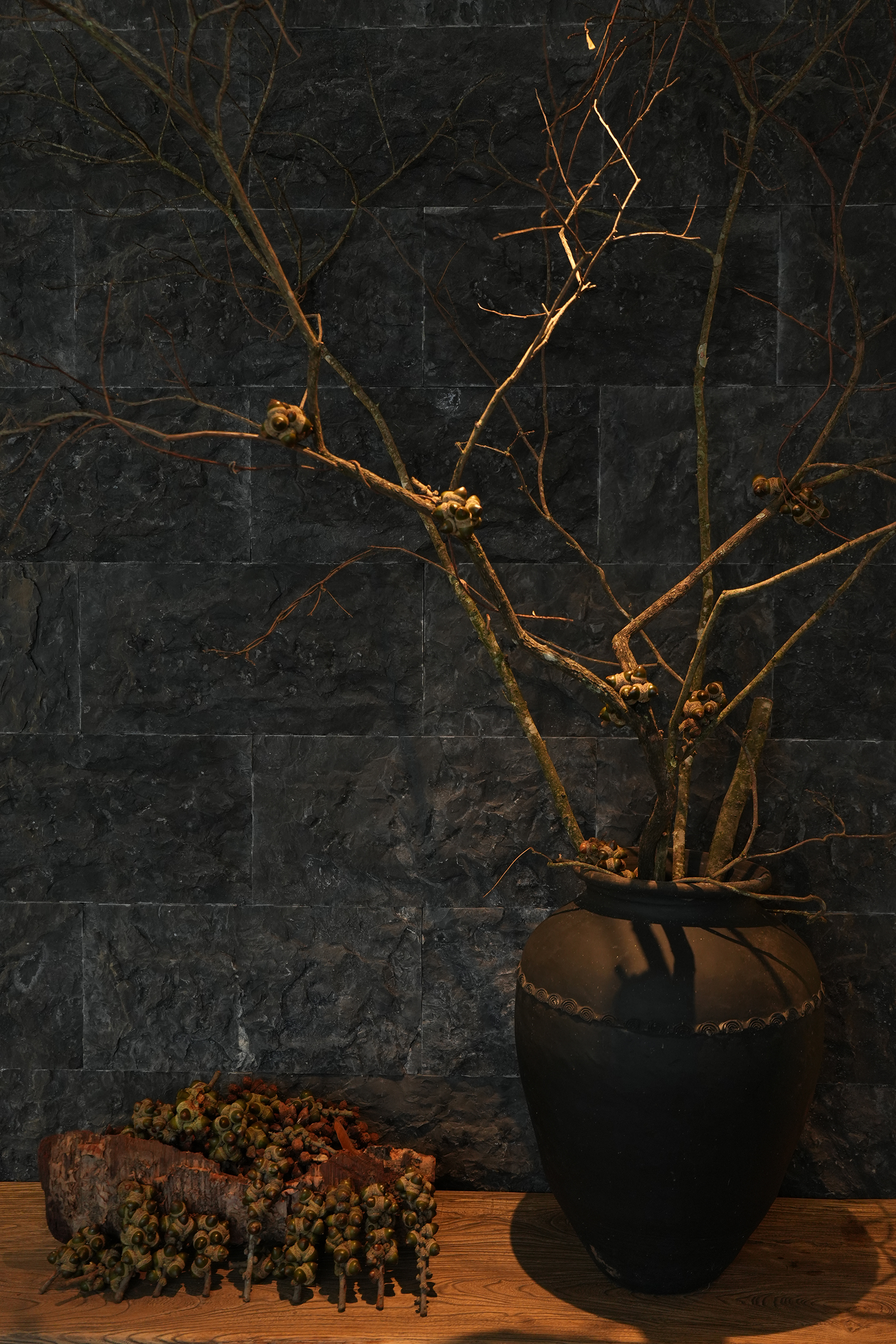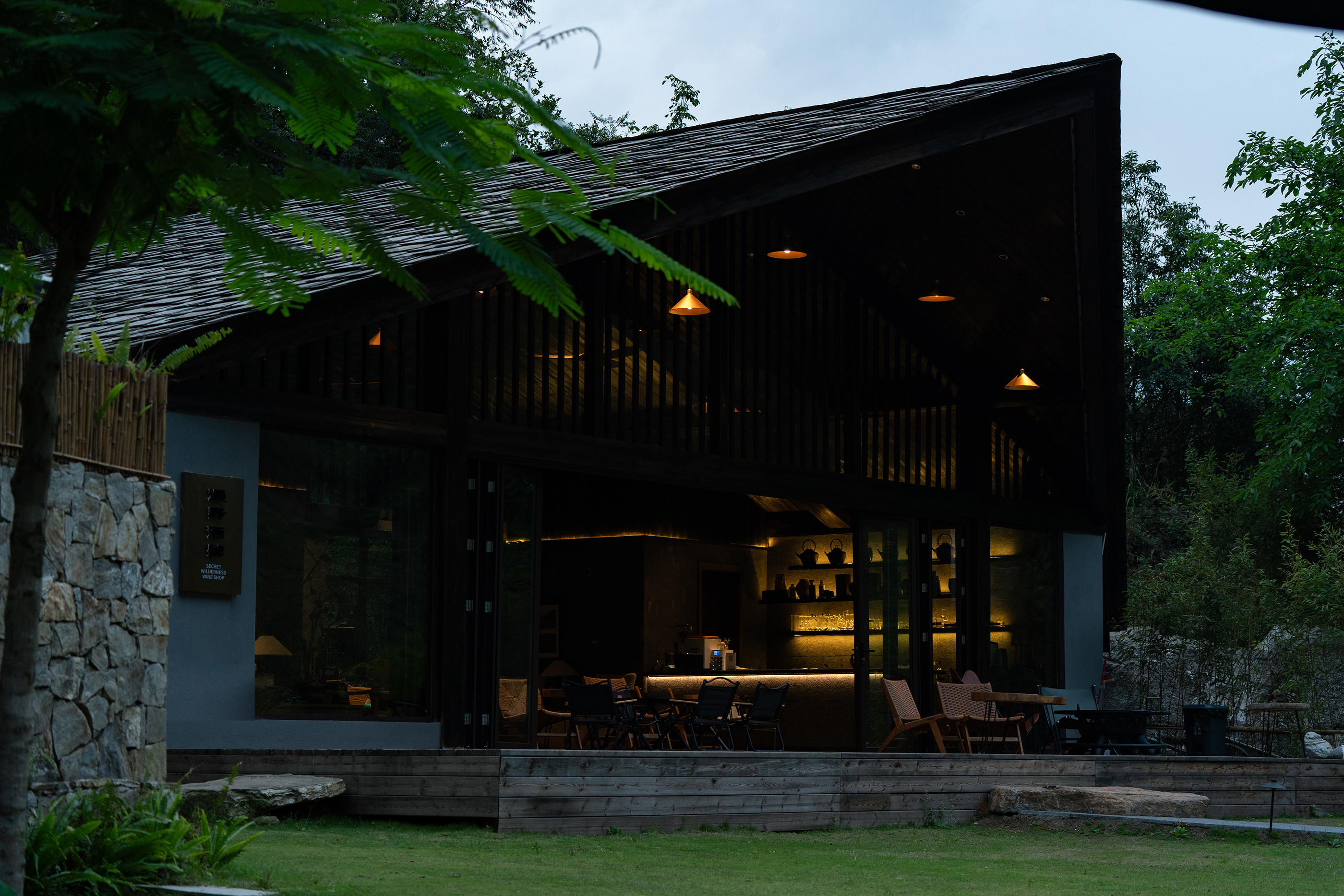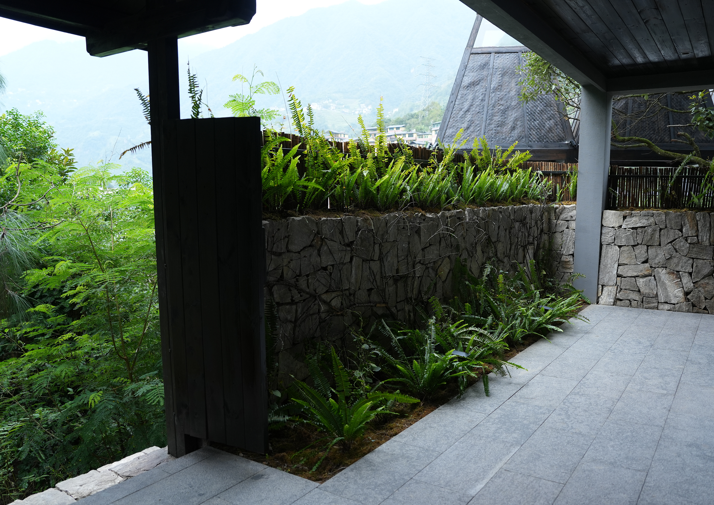 设计将可持续发展理念贯穿始终,材料主要选用当地的石片、石板瓦、原木、竹编、夯士质感涂料,餐厅选用当地原生食材,始终以亲近自然的方式回馈自然。