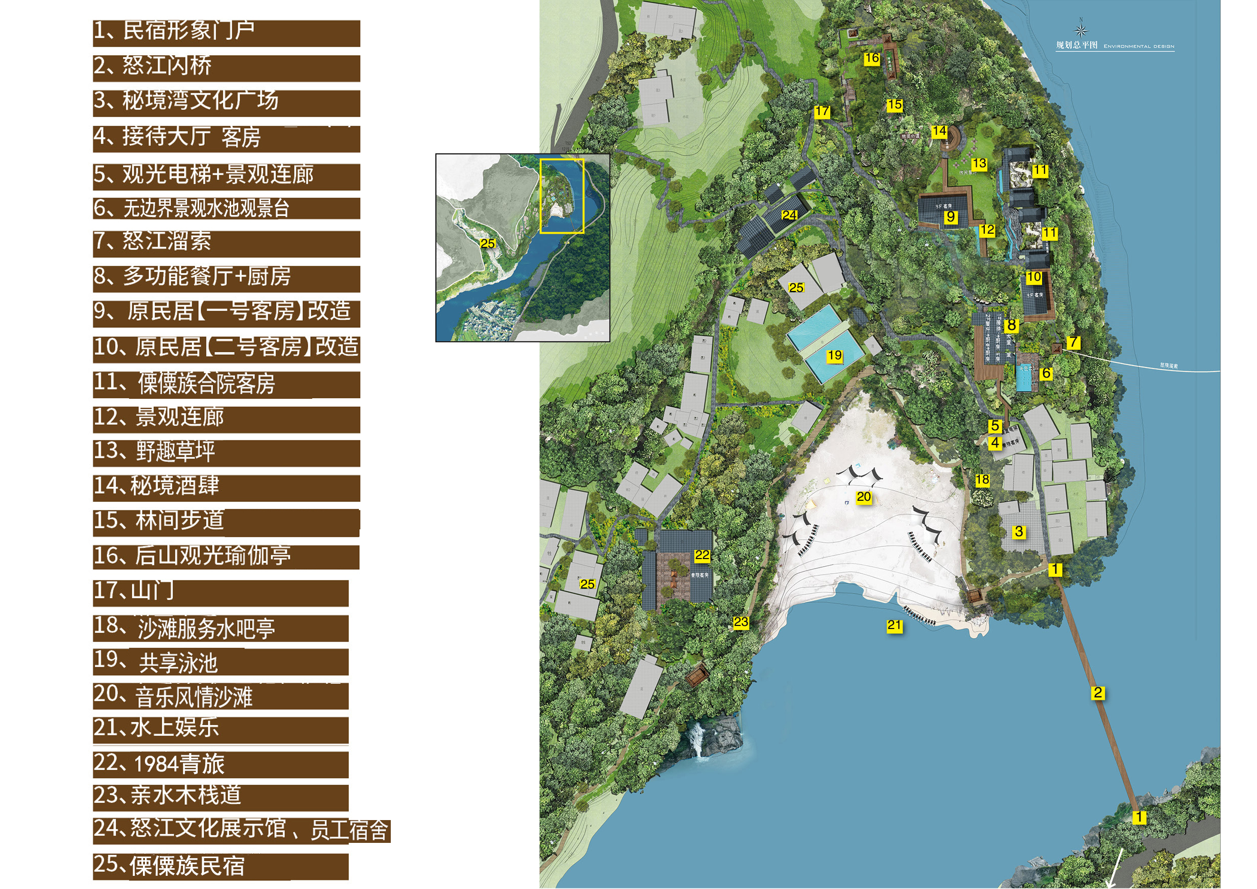 旅行,不止于逗留和经过,更是内心与世界的连接,而酒店,正成为人们在旅行过程中的“家”,超越了住宿本身的功能意义,塑造一个提供情绪寄托的场所。秘境湾酒店位于怒江福贡县施底村,占地22亩的山头上,以怒江在地文化为背景,打造具有当代东方的避世之境。有22间各具特色的客房,一户一景,合院和一层客房都带有庭院和私汤,每个房型都有不同的体验与景色。配备有多功能傈僳族餐厅、悬崖泳池、秘境酒肆、山顶禅修室、傈僳族合院、健身房,周边环境有沙滩、吊桥、溜索、亲水栈道、教堂、非遗体验馆等。