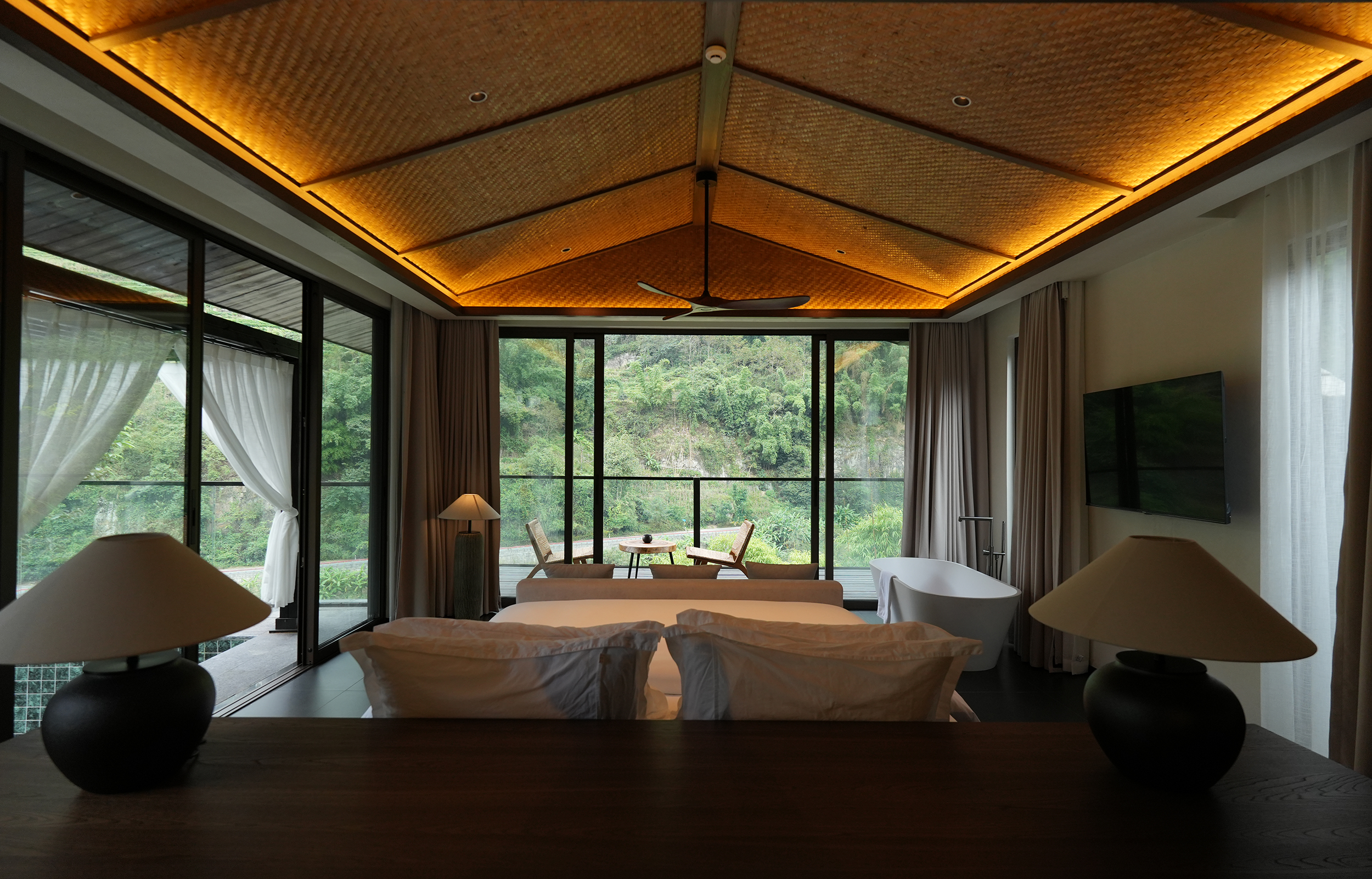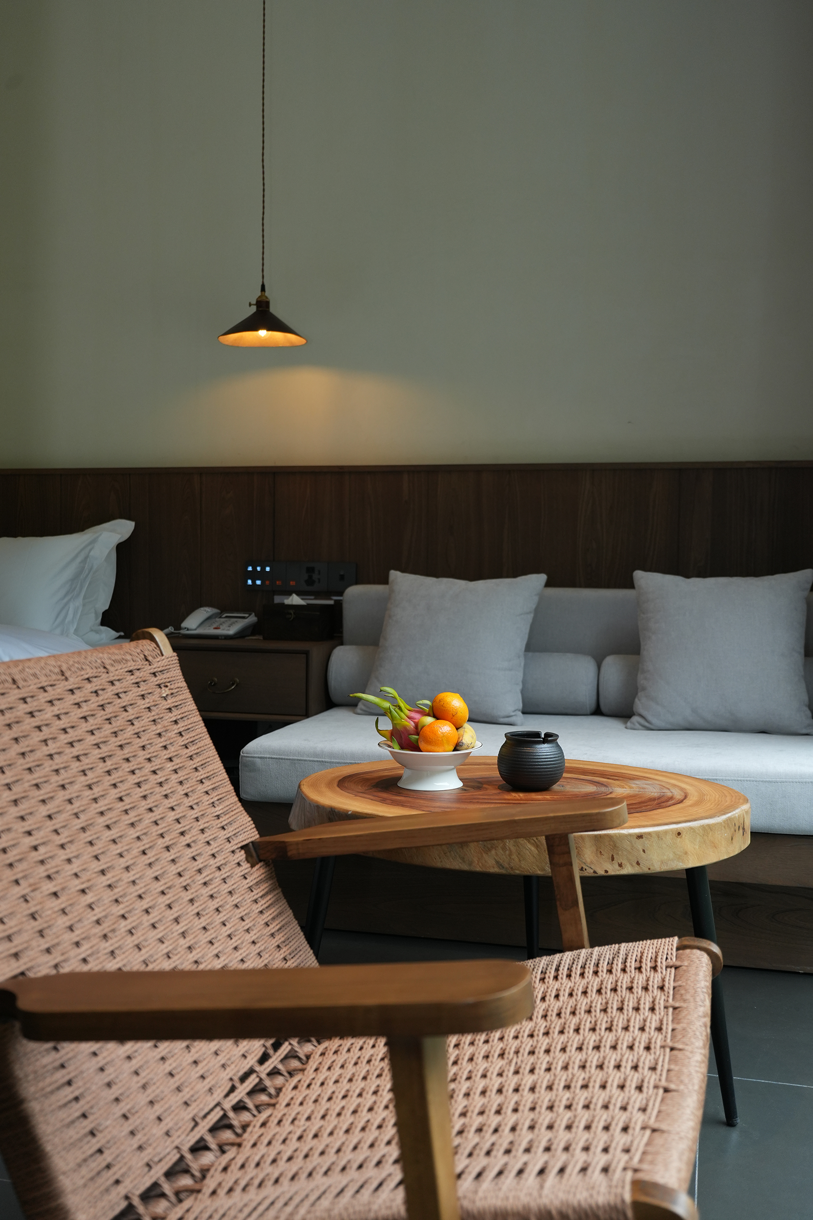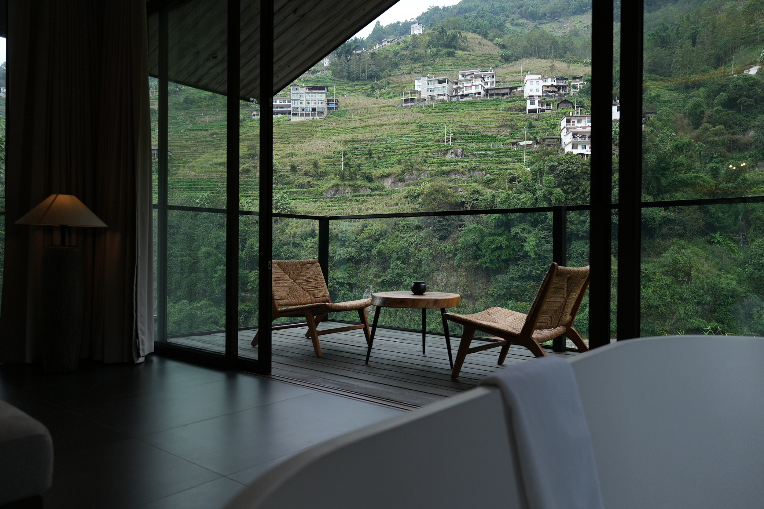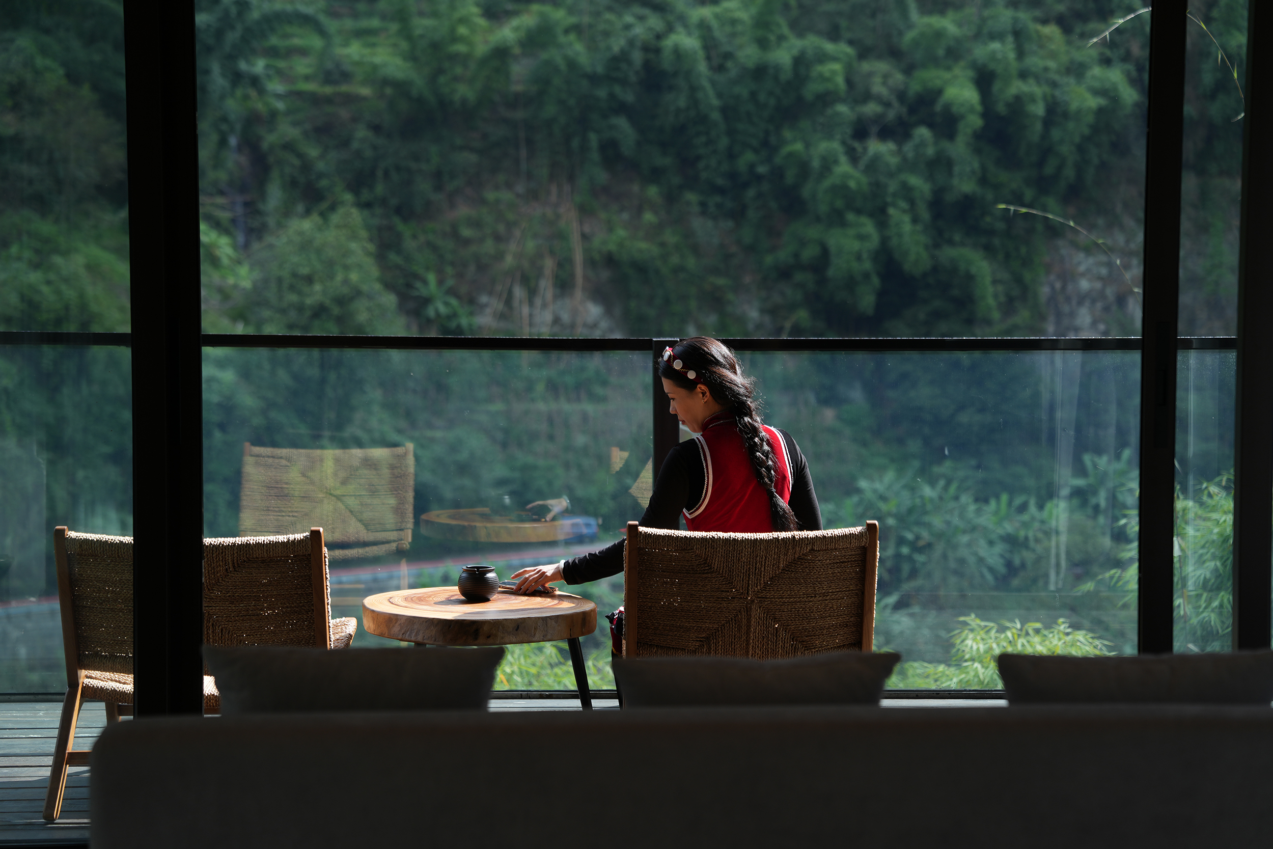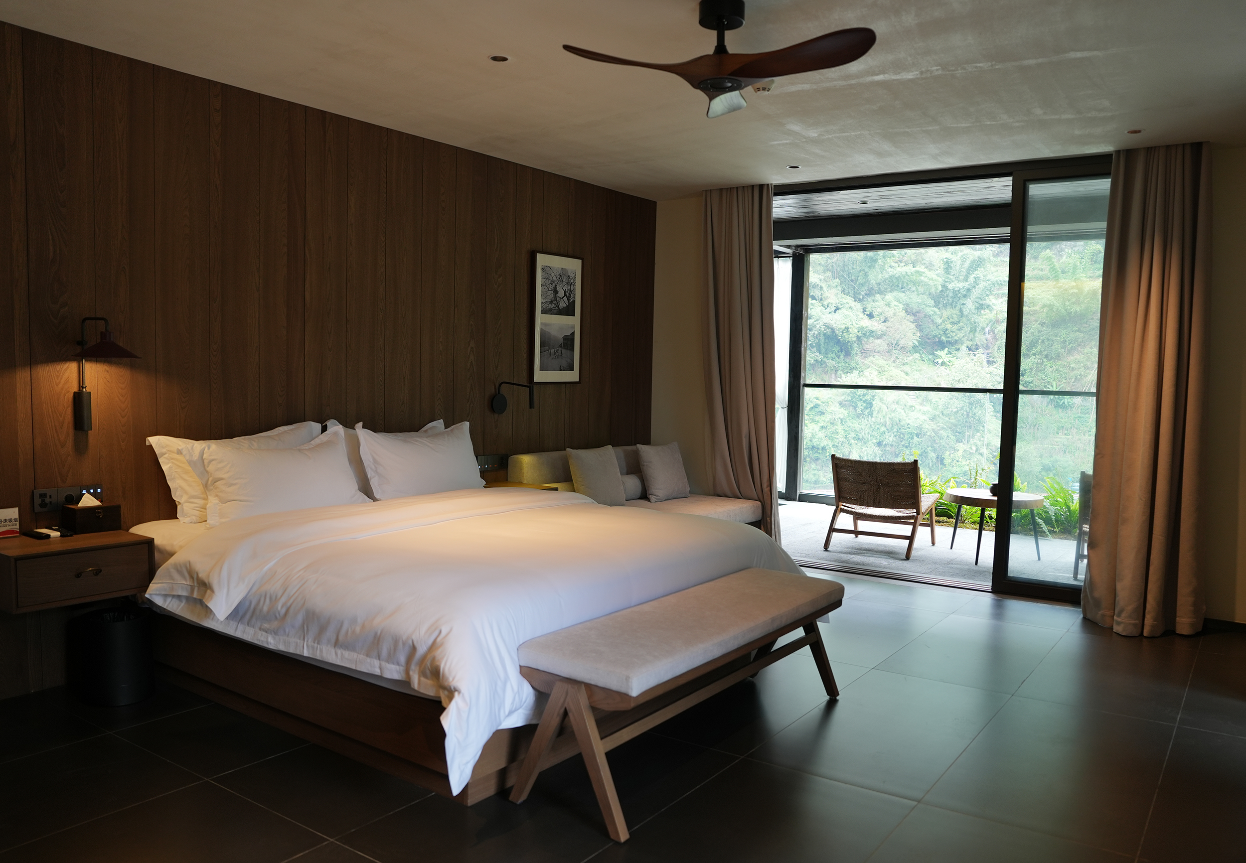 整个酒店给人们的感觉是呆得住,很放松,在酒店的每个角落,都好像和自然在对话,一种久违的松弛慰流淌过心里,让人的整个灵魂慢下来,酒店变成生活乌托邦。