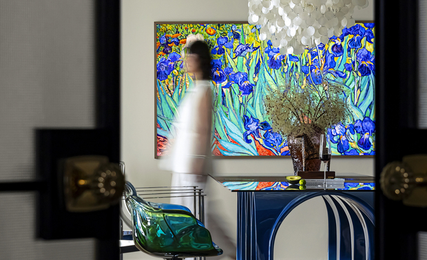 黑色小方砖与彩色大屏,L形转角彩色折叠大屏,浓浓硬核科技感。