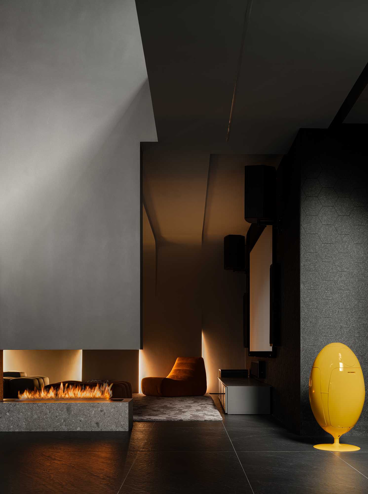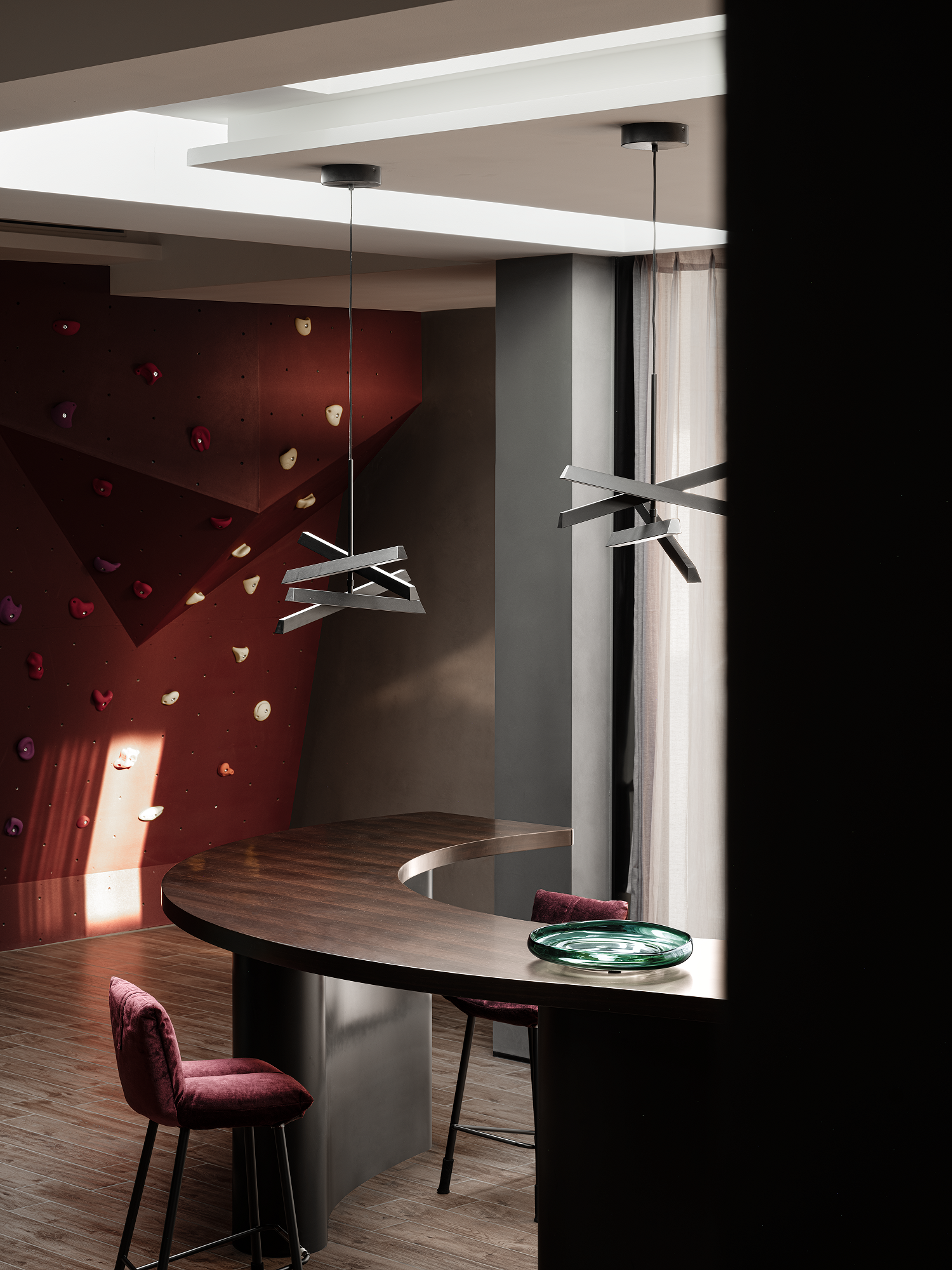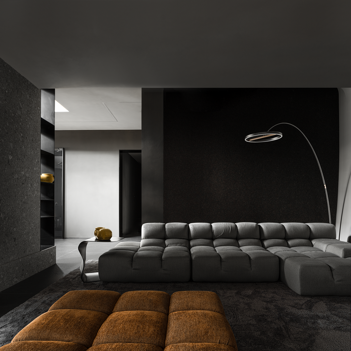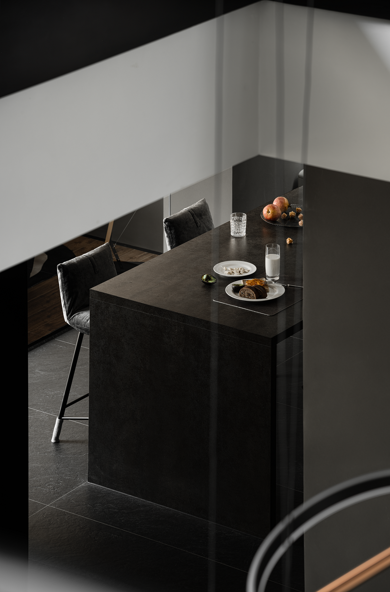 餐厨、影视厅、会客厅、攀爬区...供家人生活的功能区没有完全封堵的墙,都已完全开放或半开放形式打开,整个空间通透且极具互动性。
