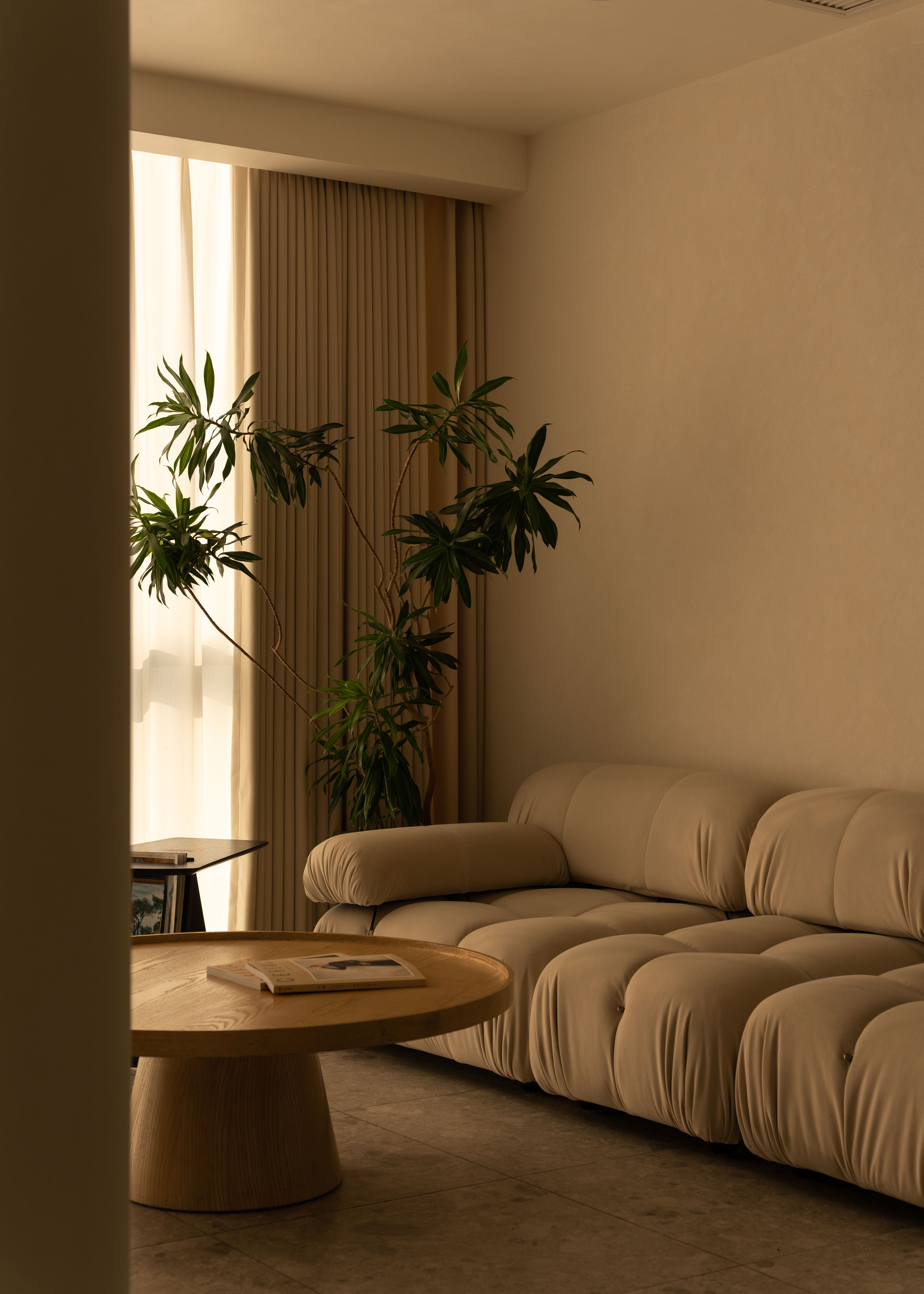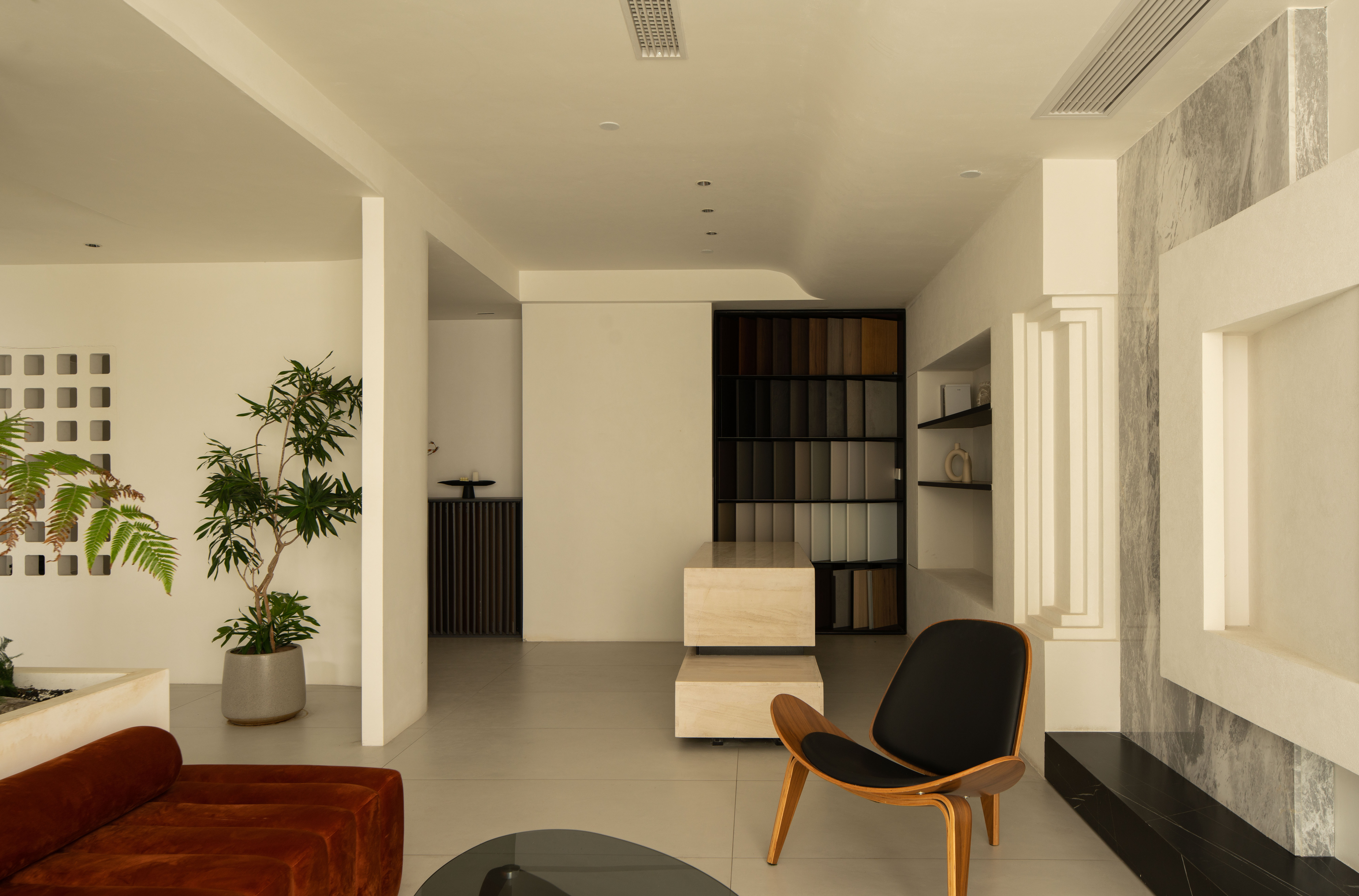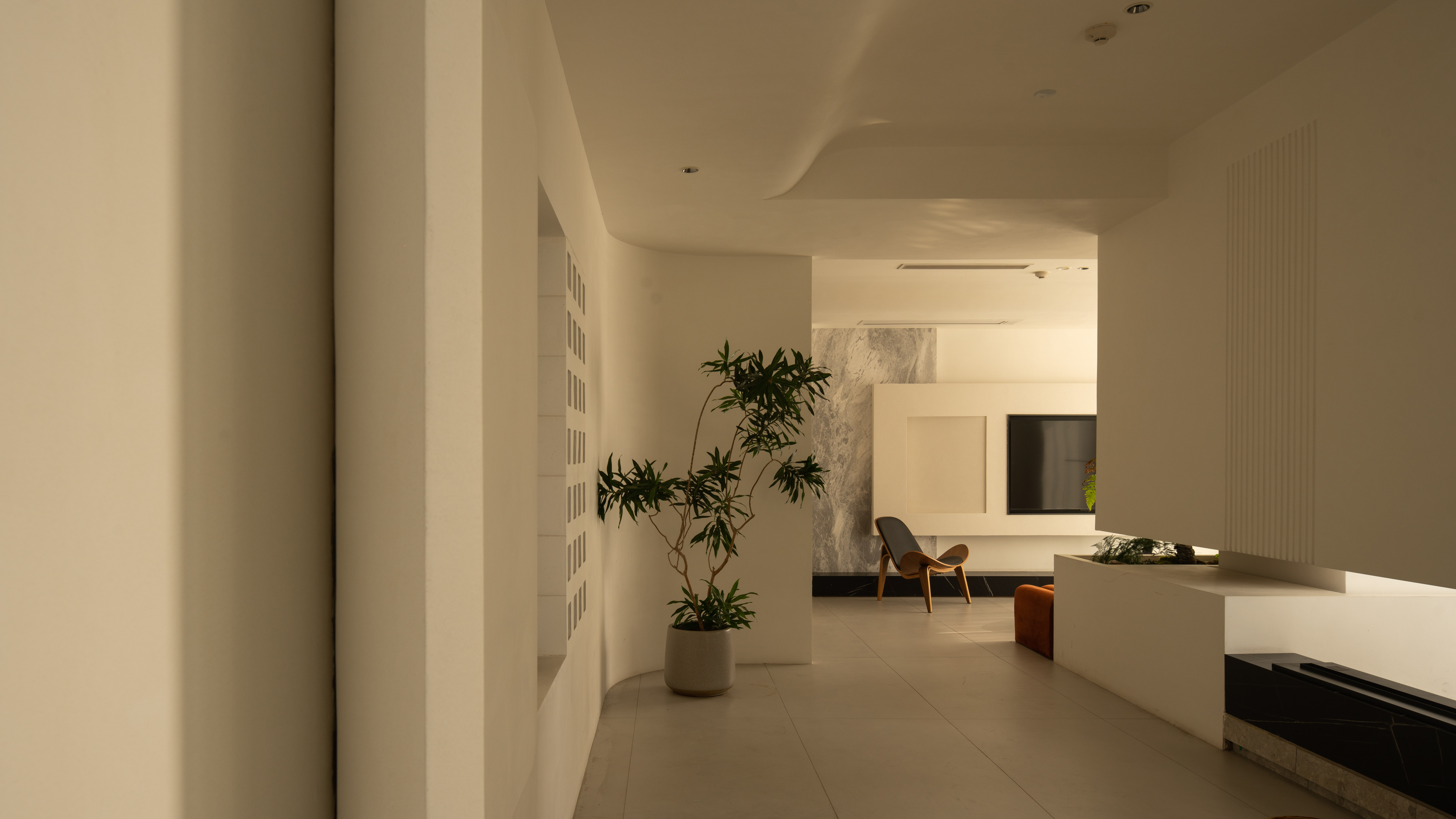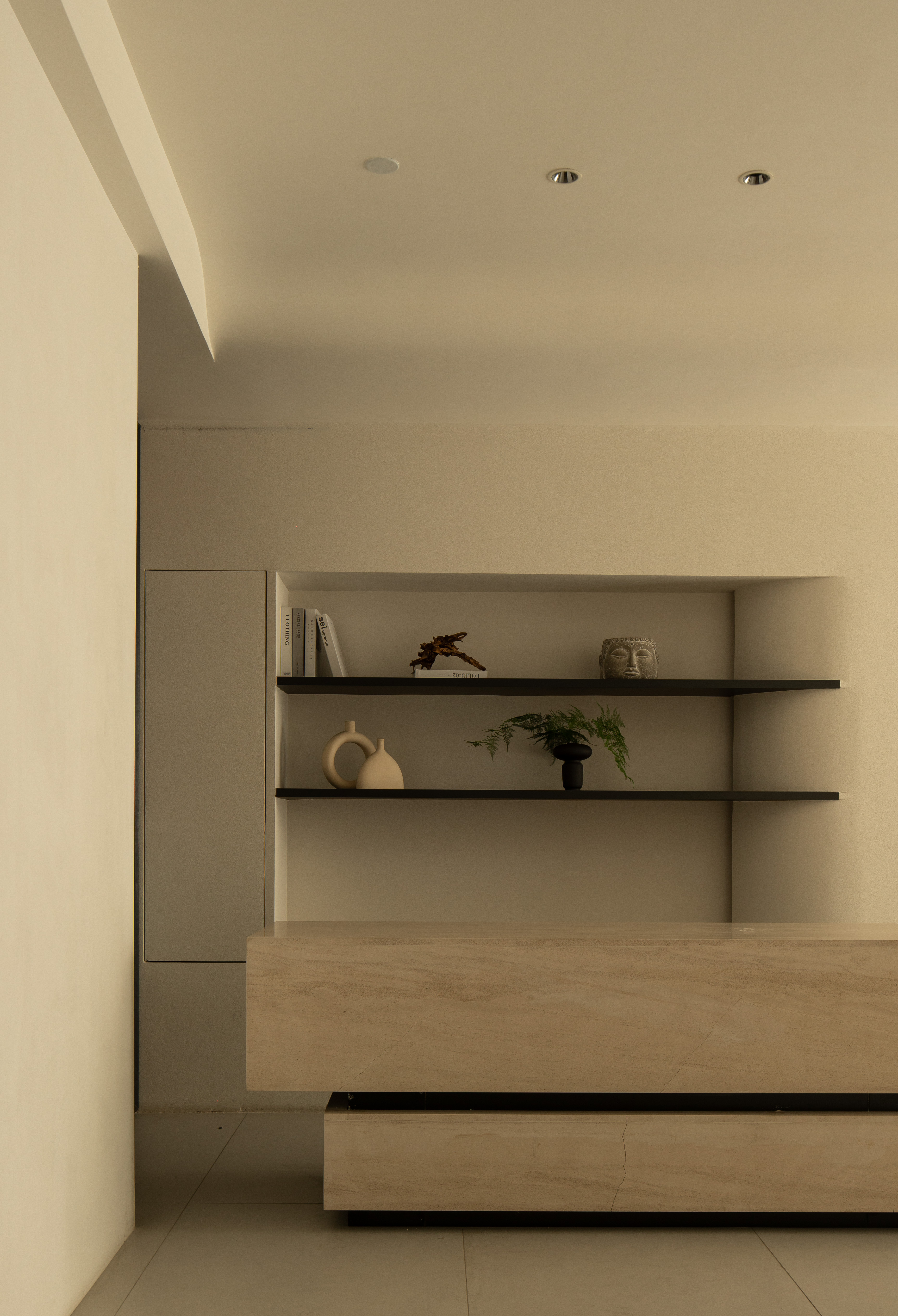 整体空间从入户玄关到接待、中间留有部分可以灵活变动的展示空间过度再到洽谈、汇报、办公空间,整体以家为氛围让客户走进公司有一种自然松弛的感觉,可以很好的放松下来拉近客户关系。也融入了一些解构的手法,去区分每空间的同时让光线能够自然的穿透进我们的每一个区域和我们的一些景观植物结合,让整个空间充满生动的气息,使员工能在此环境下更舒适方式的工作,没有压迫感才能拥有更多灵感去思考设计。