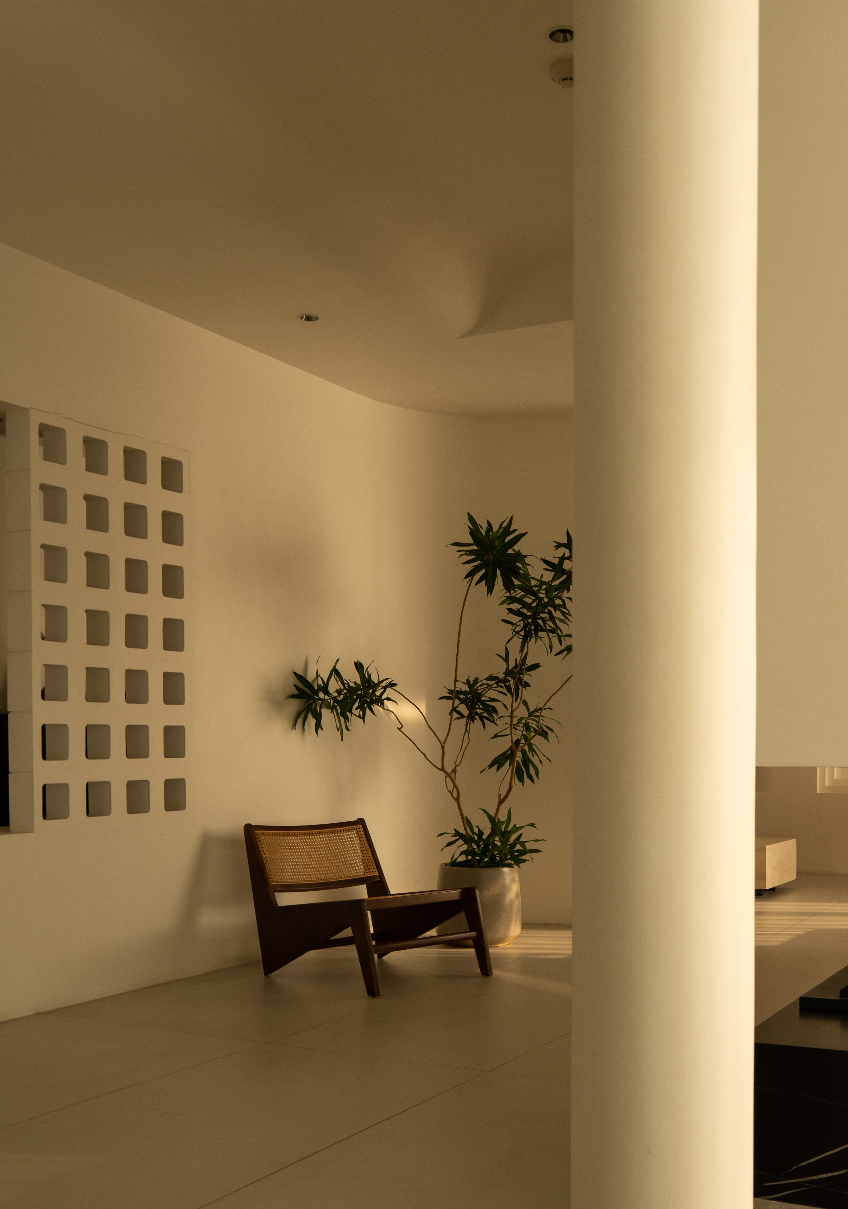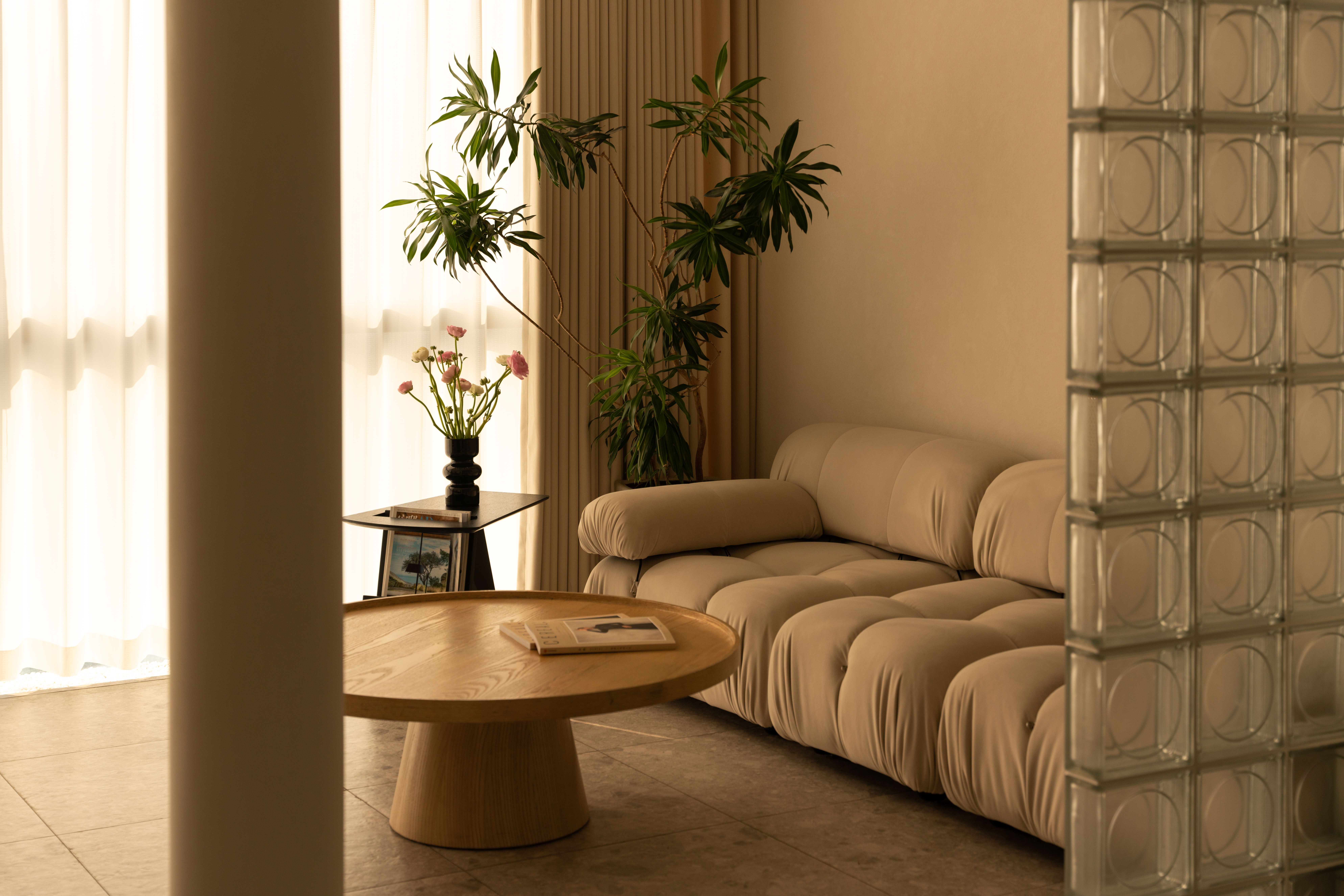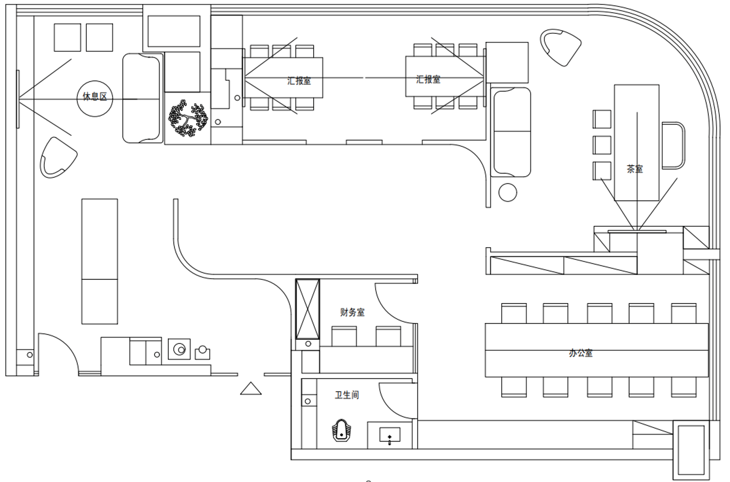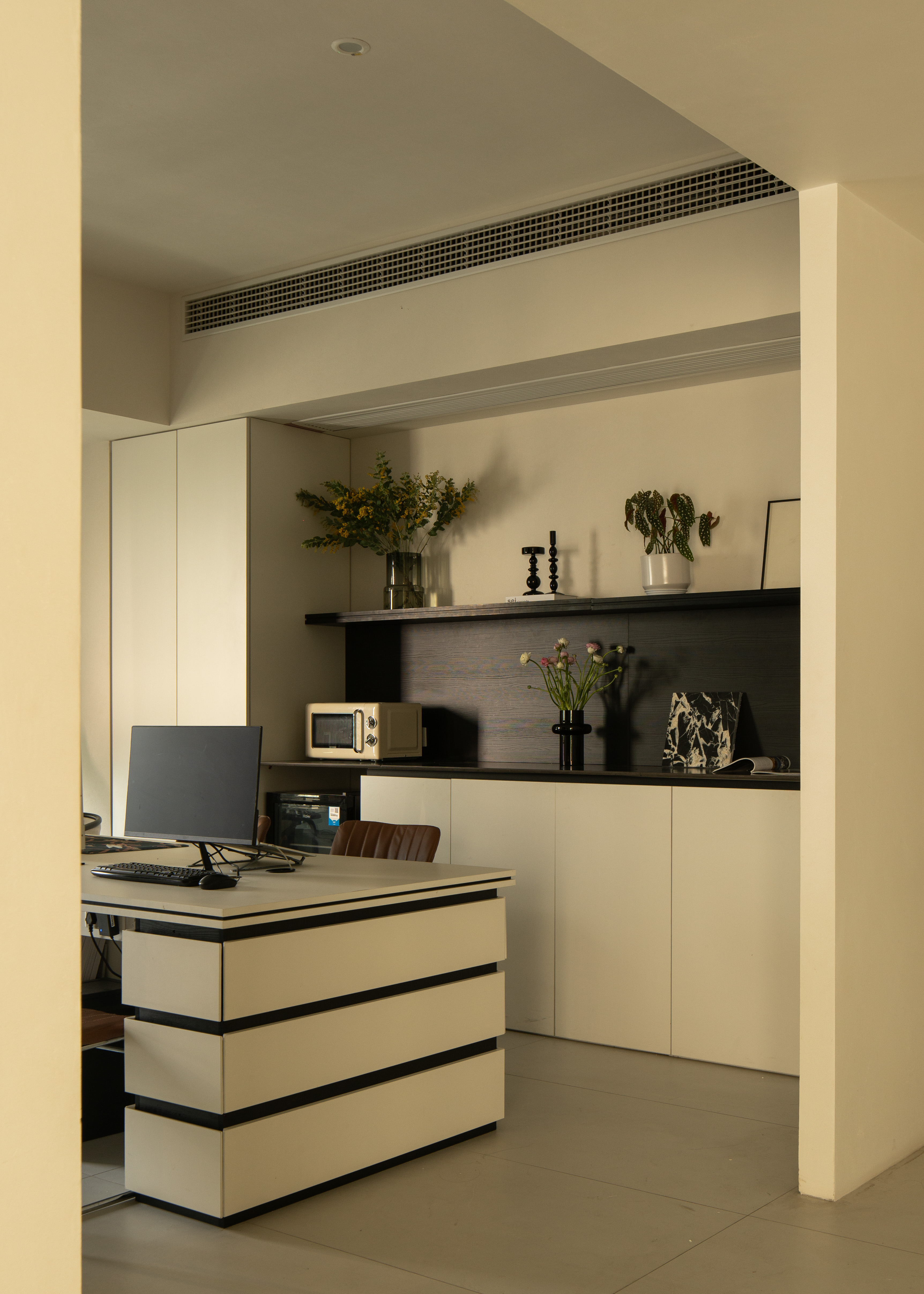 整体空间从入户玄关到接待、中间留有部分可以灵活变动的展示空间过度再到洽谈、汇报、办公空间,整体以家为氛围让客户走进公司有一种自然松弛的感觉,可以很好的放松下来拉近客户关系。也融入了一些解构的手法,去区分每空间的同时让光线能够自然的穿透进我们的每一个区域和我们的一些景观植物结合,让整个空间充满生动的气息,使员工能在此环境下更舒适方式的工作,没有压迫感才能拥有更多灵感去思考设计。