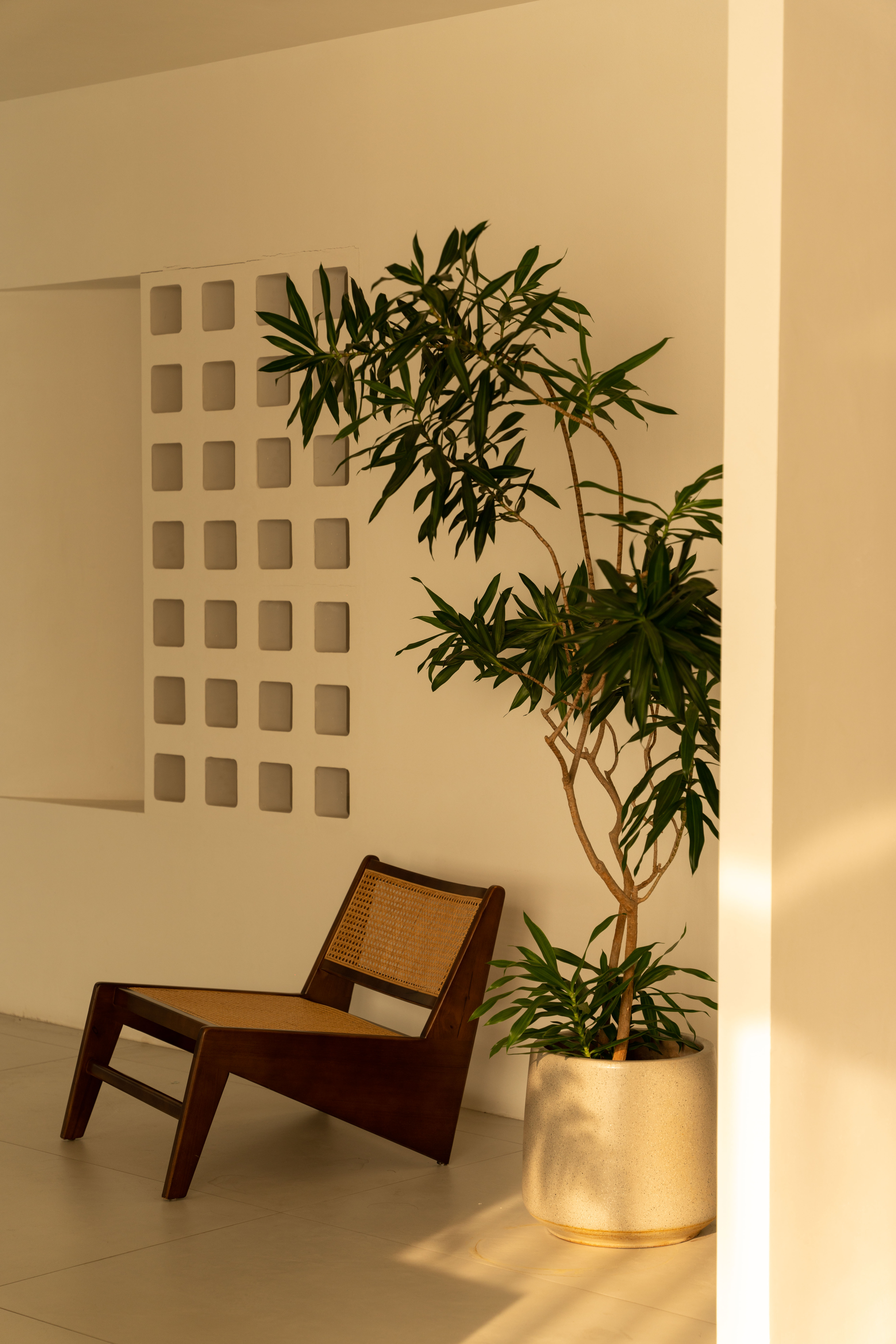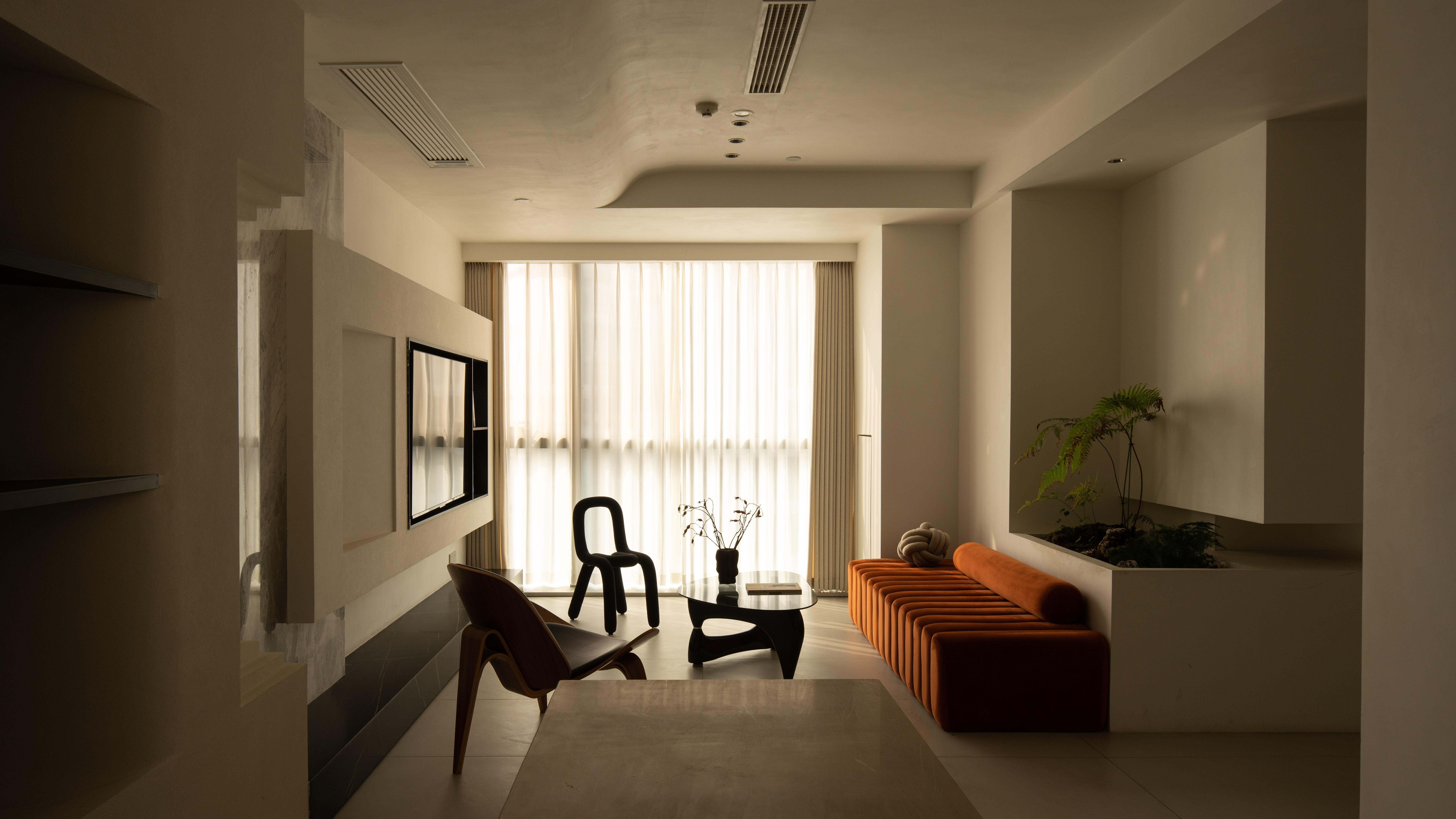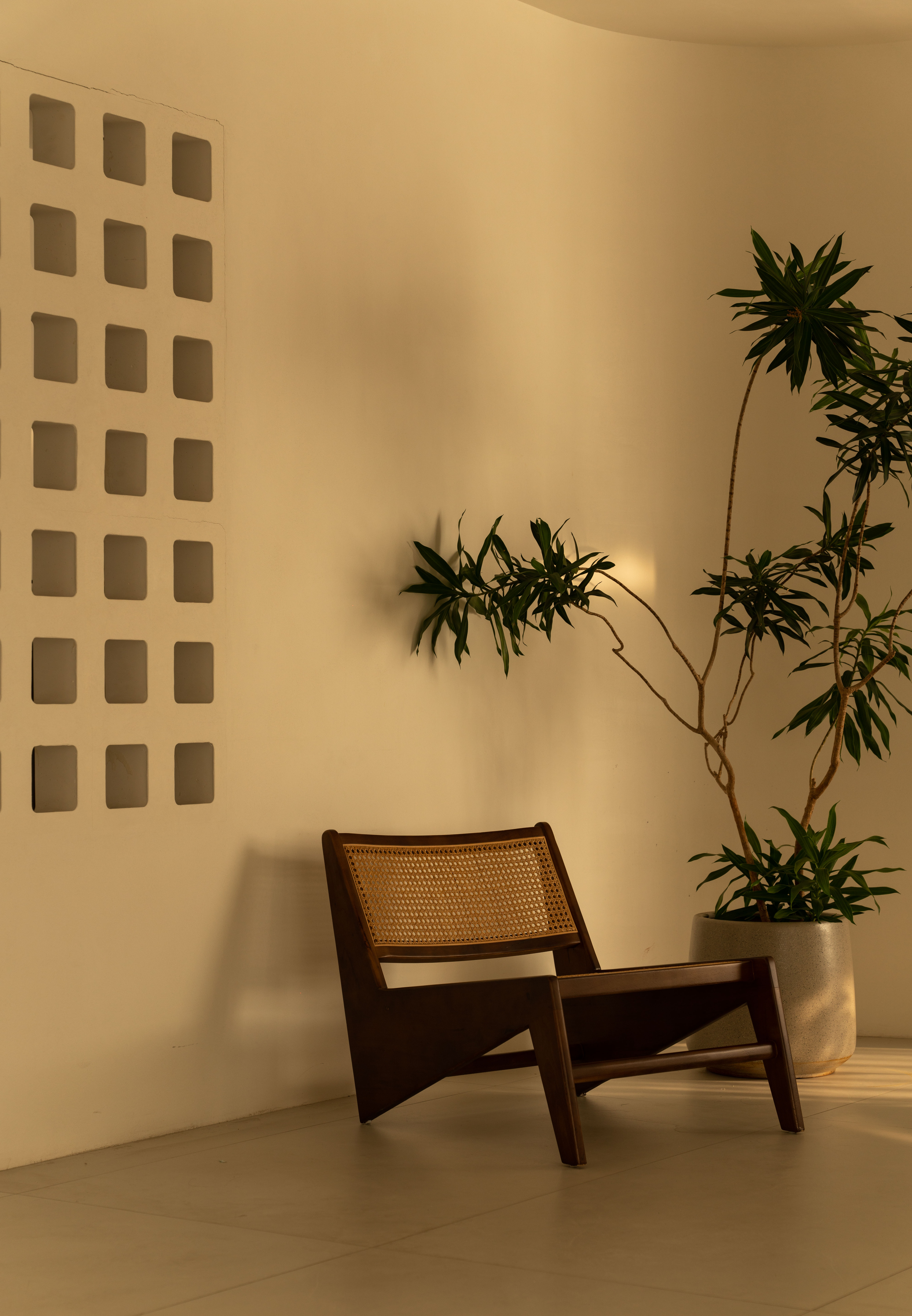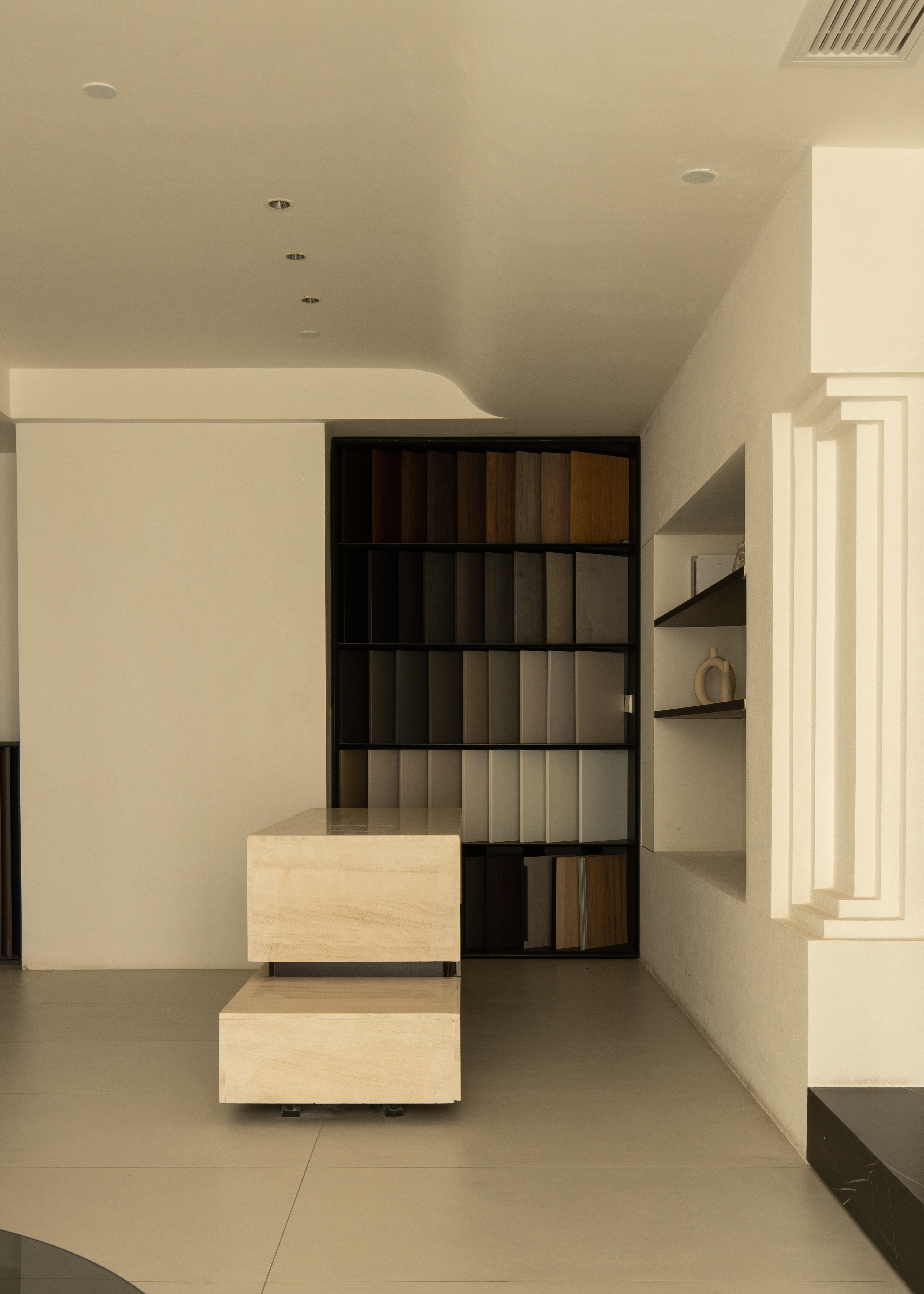 整体空间从入户玄关到接待、中间留有部分可以灵活变动的展示空间过度再到洽谈、汇报、办公空间,整体以家为氛围让客户走进公司有一种自然松弛的感觉,可以很好的放松下来拉近客户关系。也融入了一些解构的手法,去区分每空间的同时让光线能够自然的穿透进我们的每一个区域和我们的一些景观植物结合,让整个空间充满生动的气息,使员工能在此环境下更舒适方式的工作,没有压迫感才能拥有更多灵感去思考设计。