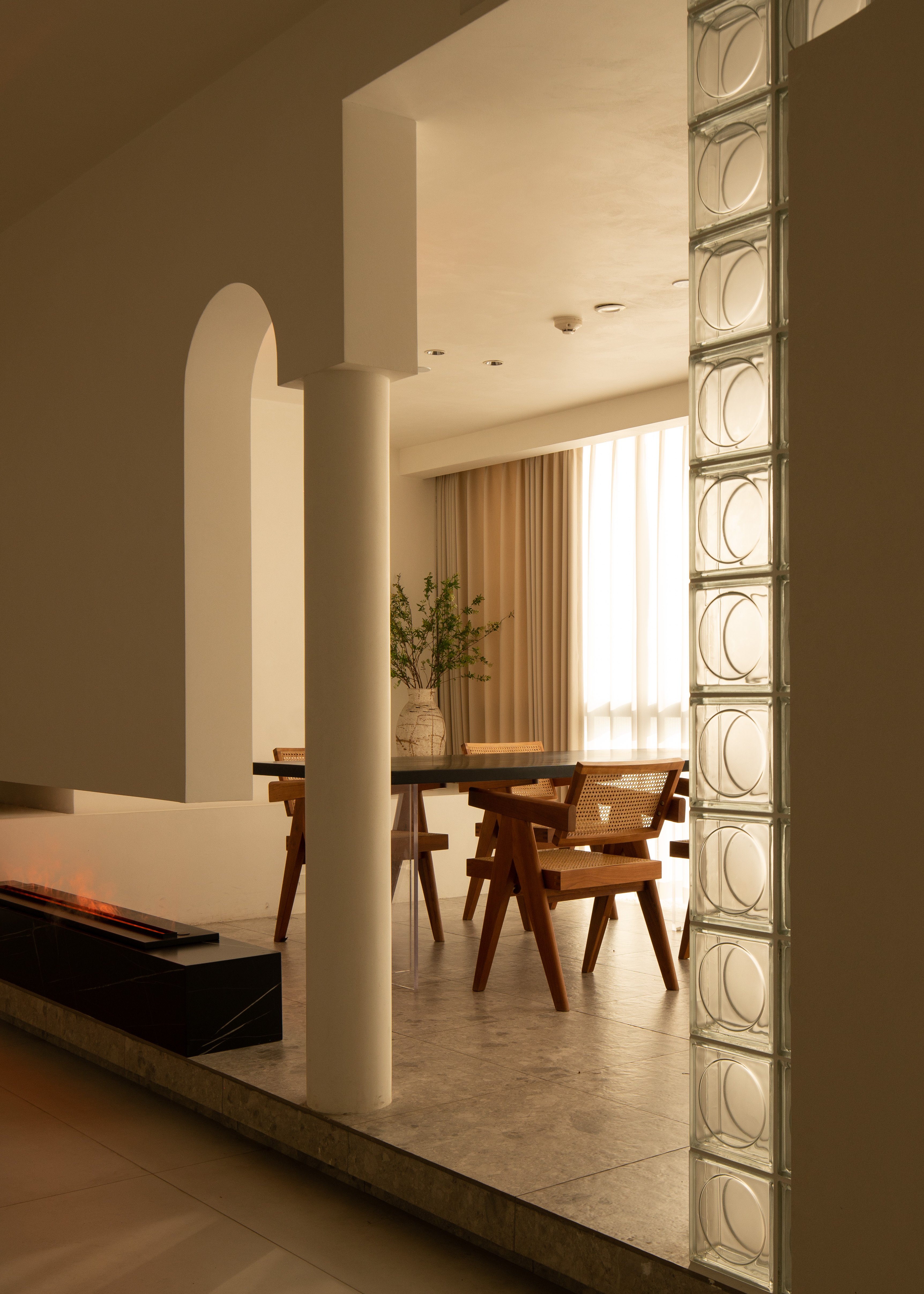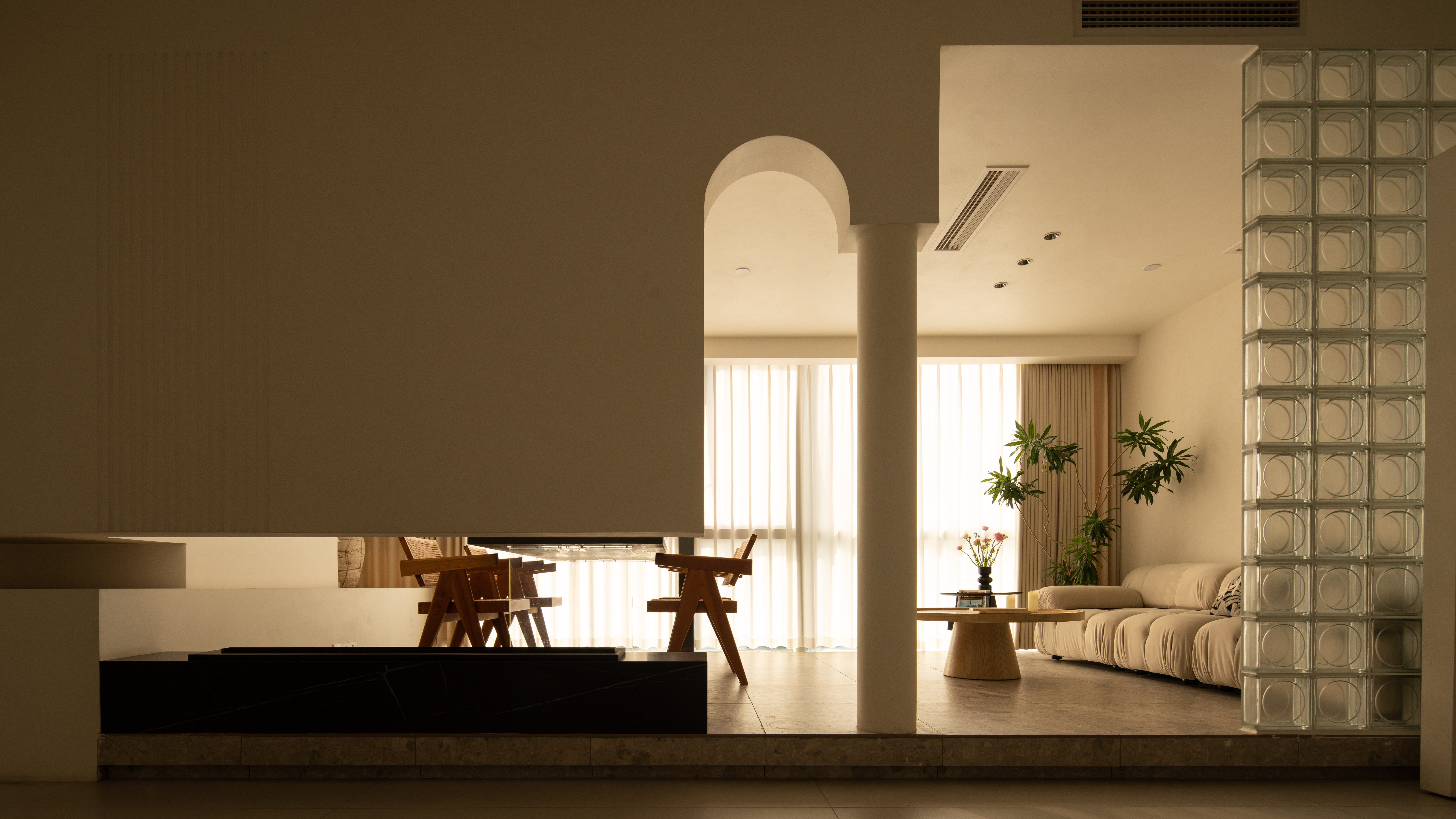 空间布局在入户玄关透景开始让人有想深入探索的欲望,整个动线在原基础上延伸然后层层递进,在每个空间之间既有相对的隐私感,又能很好的观察到每个空间的一些动向。
