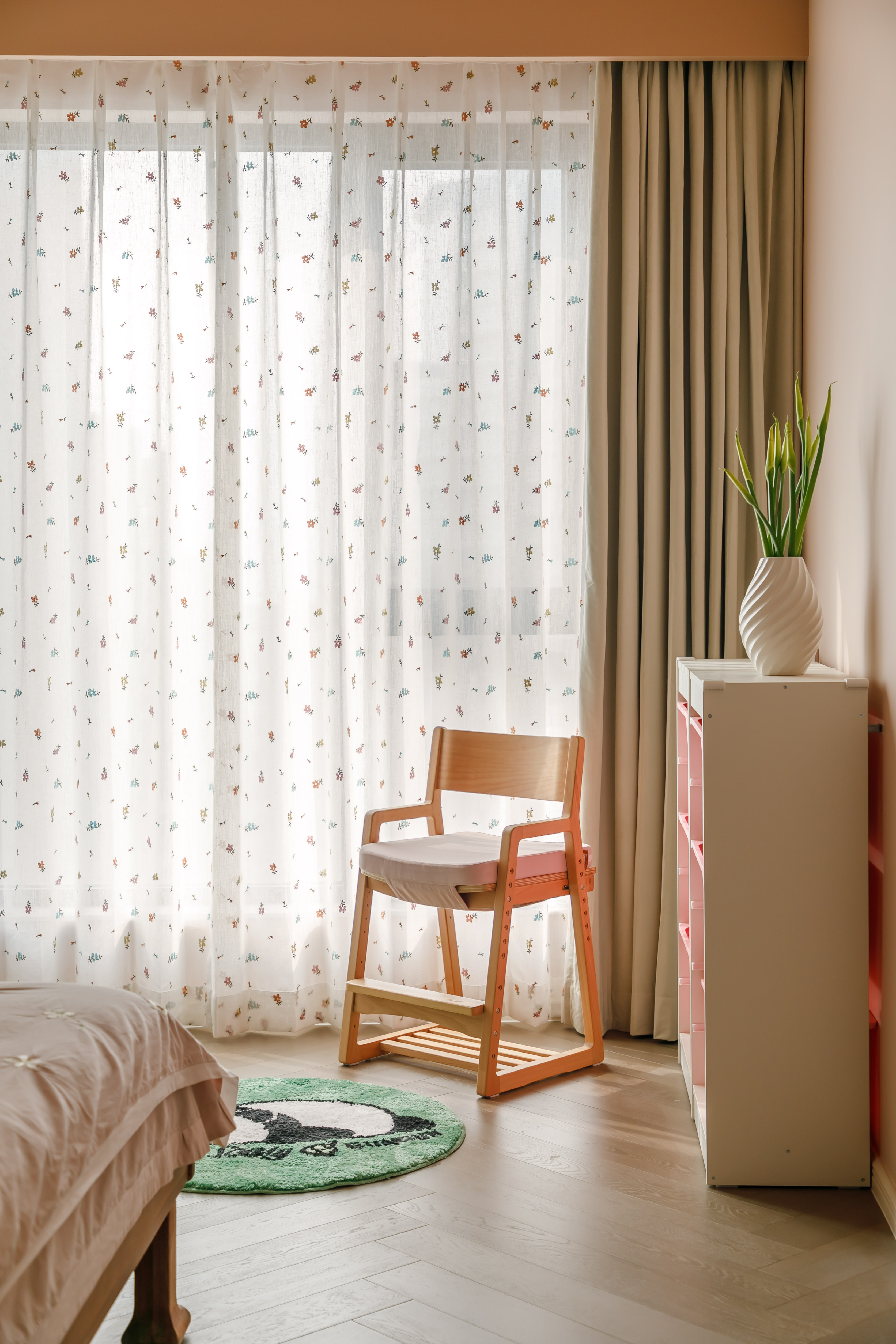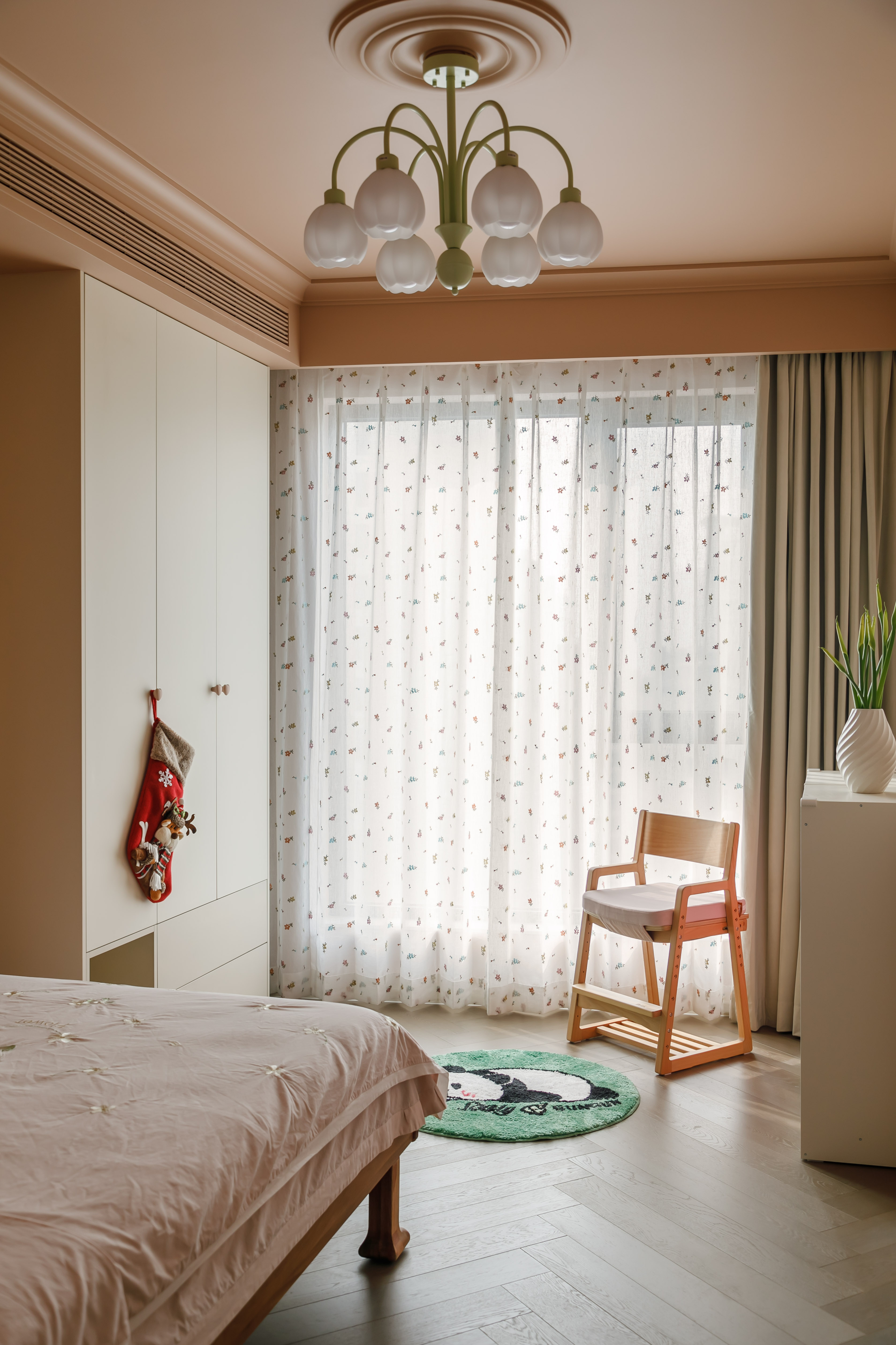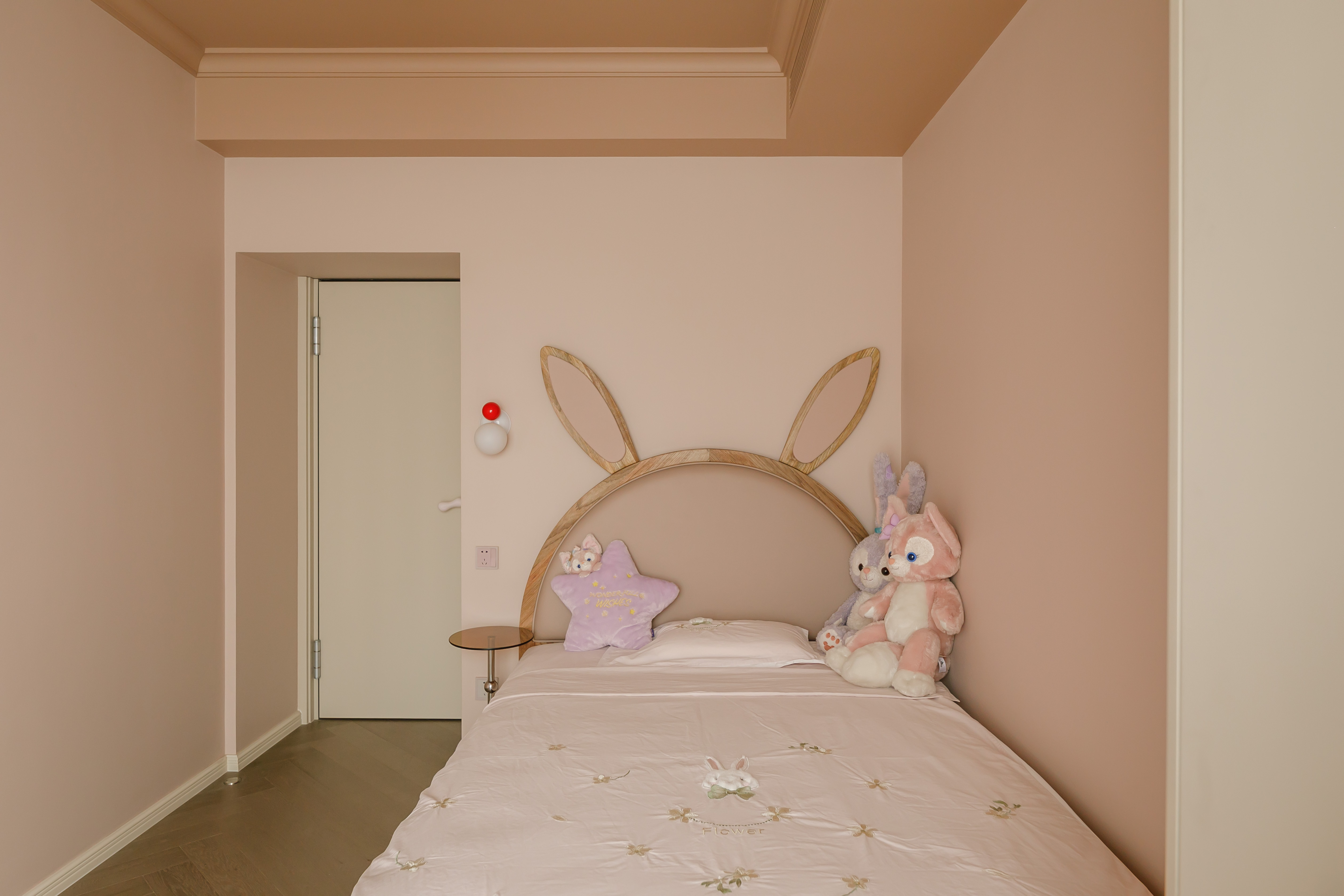 女儿房选用了小主人最喜欢的粉色,顶和墙两种不同的粉叠加,通过光作为空间的主角,唤醒一整天的活力