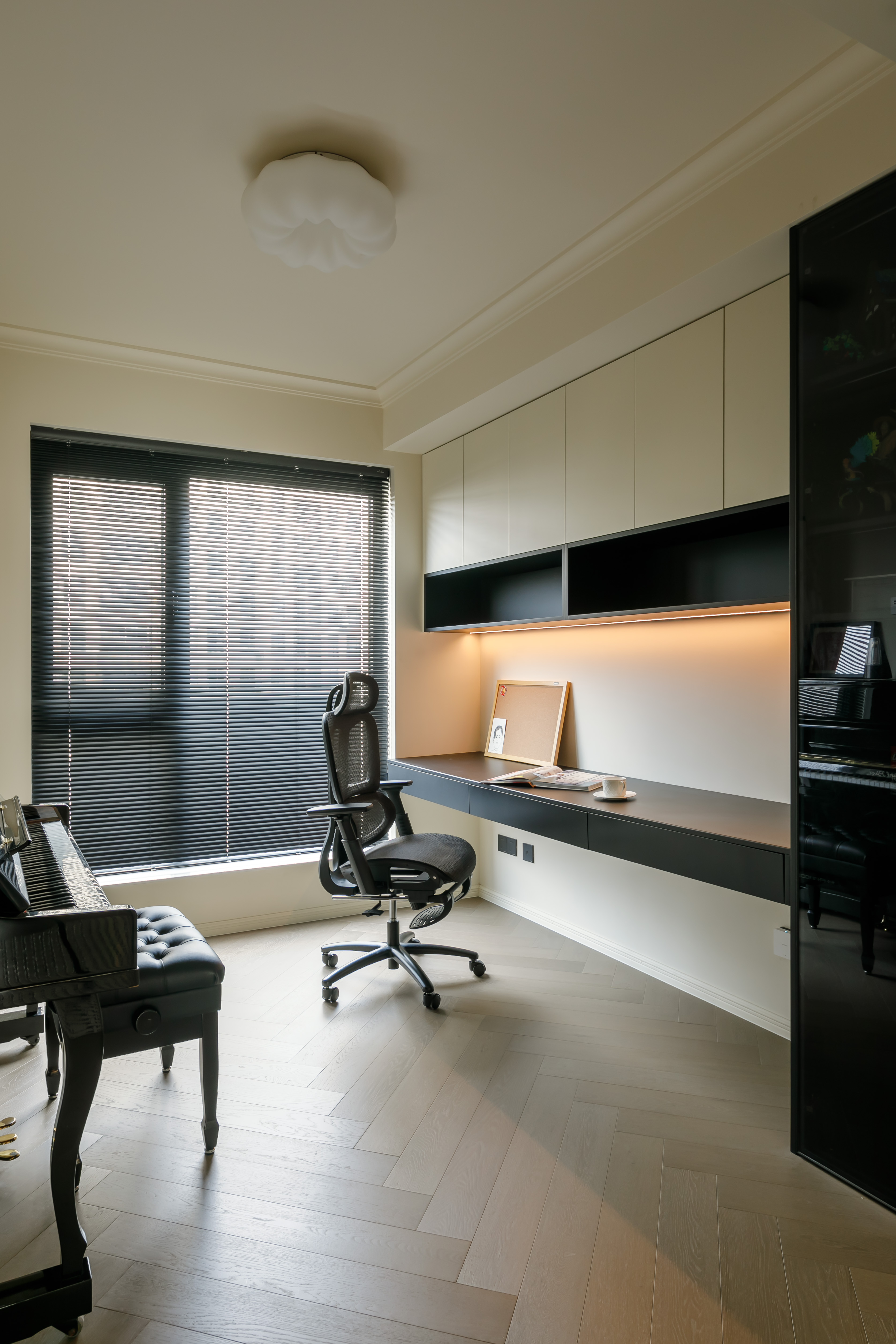 书房的规划是学习和发展兴趣爱好的活动空间,平时可以陪伴小孩在此练琴,拼乐乐高,或阅读,或画画,享受亲子互动,增进感情共鸣。
