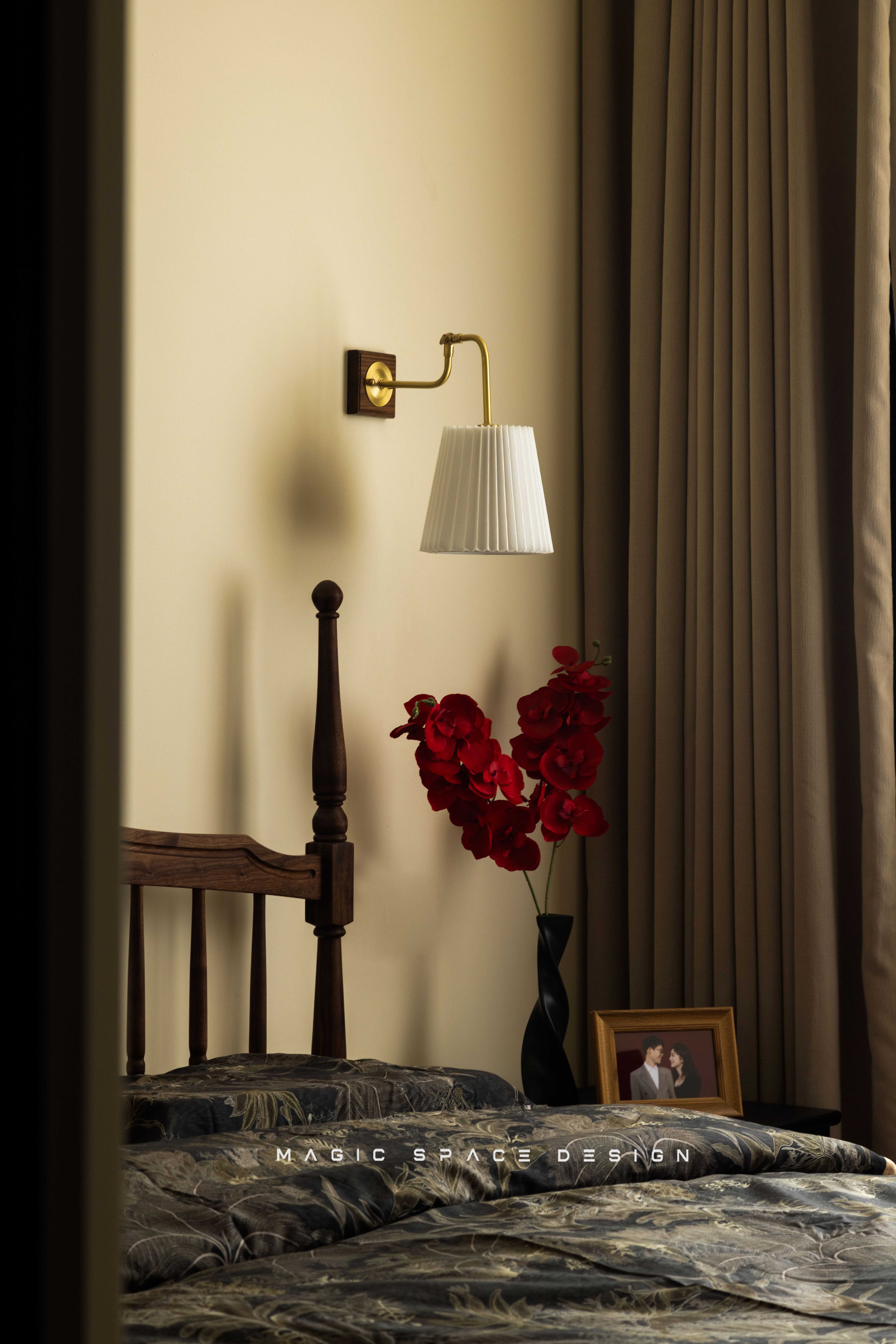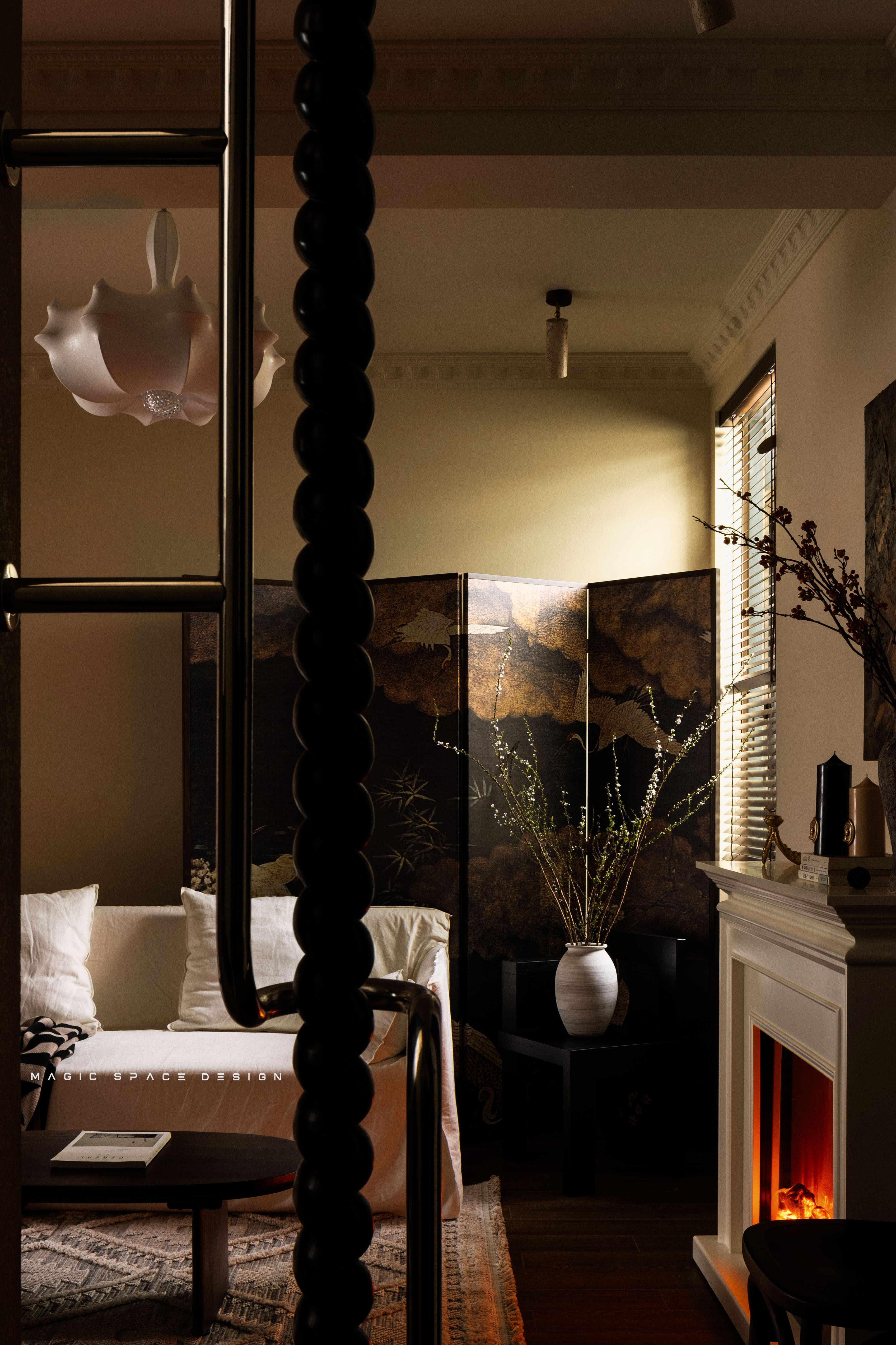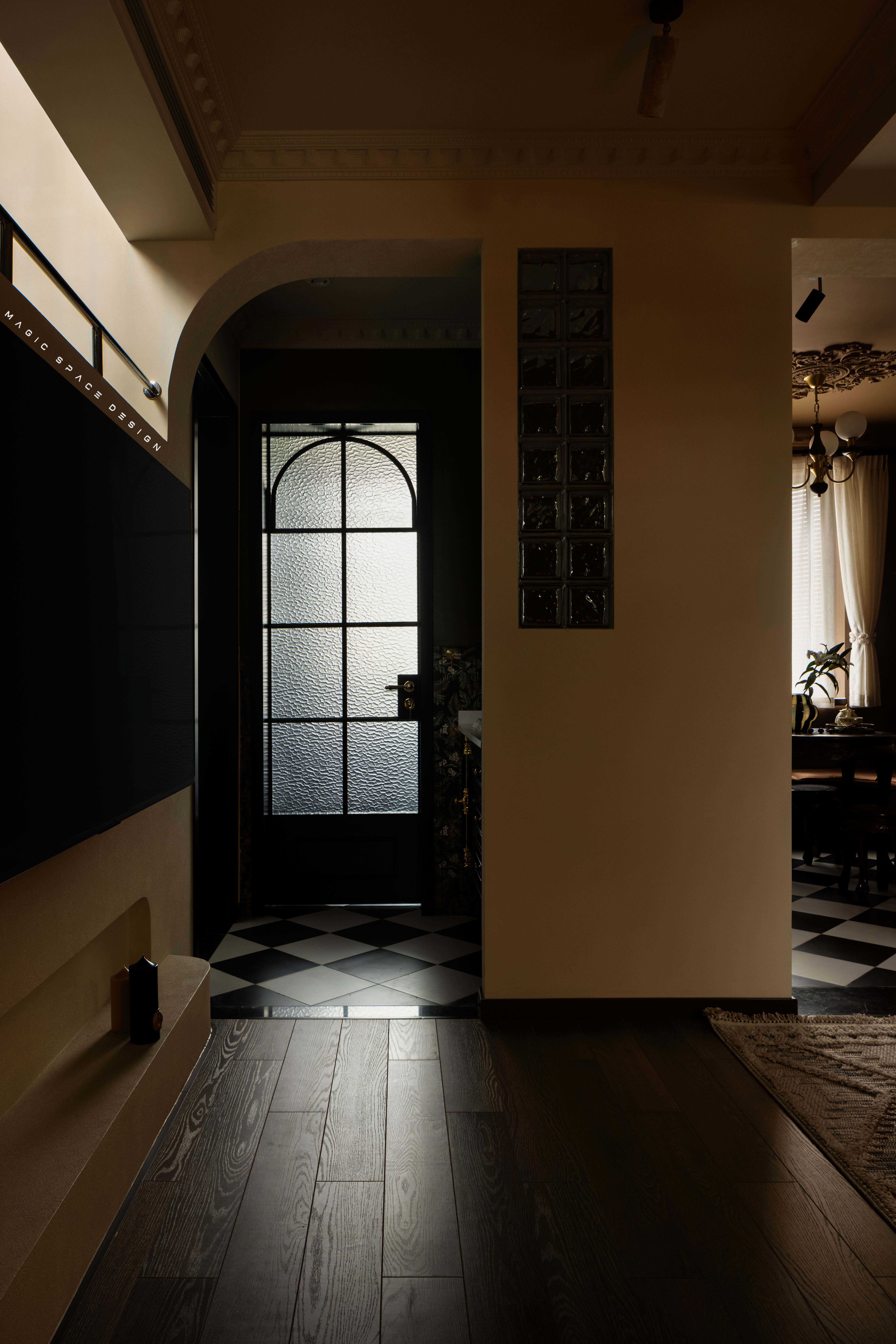 本案背景为旧房的翻新改造,原始户型为老宅顶层复式;主要人口结构为一对年轻新人做婚房使用;客人偏爱有腔调一点的重色,希望整个家庭的氛围有电影的质感,以及有中式的文化韵味。
