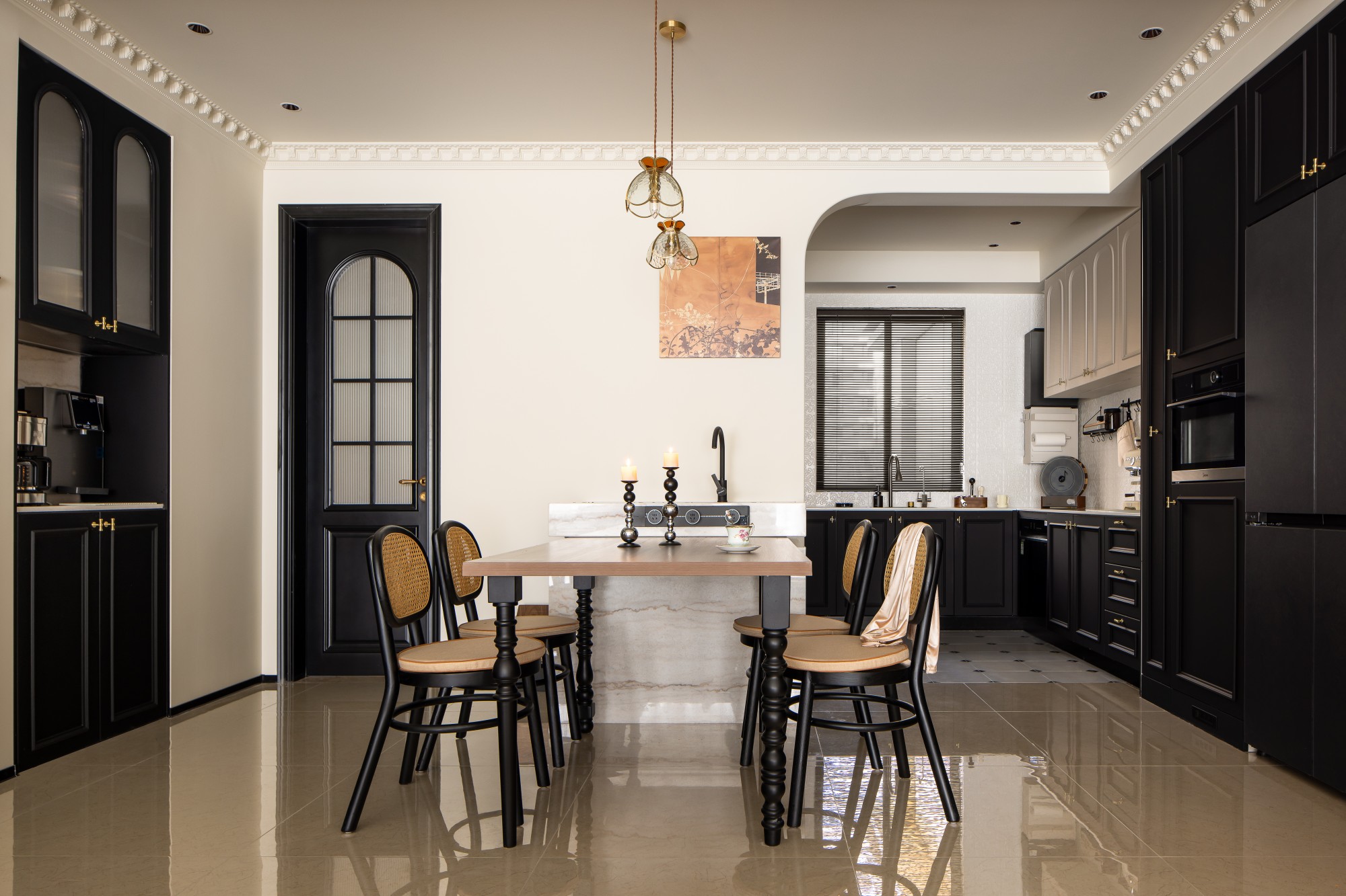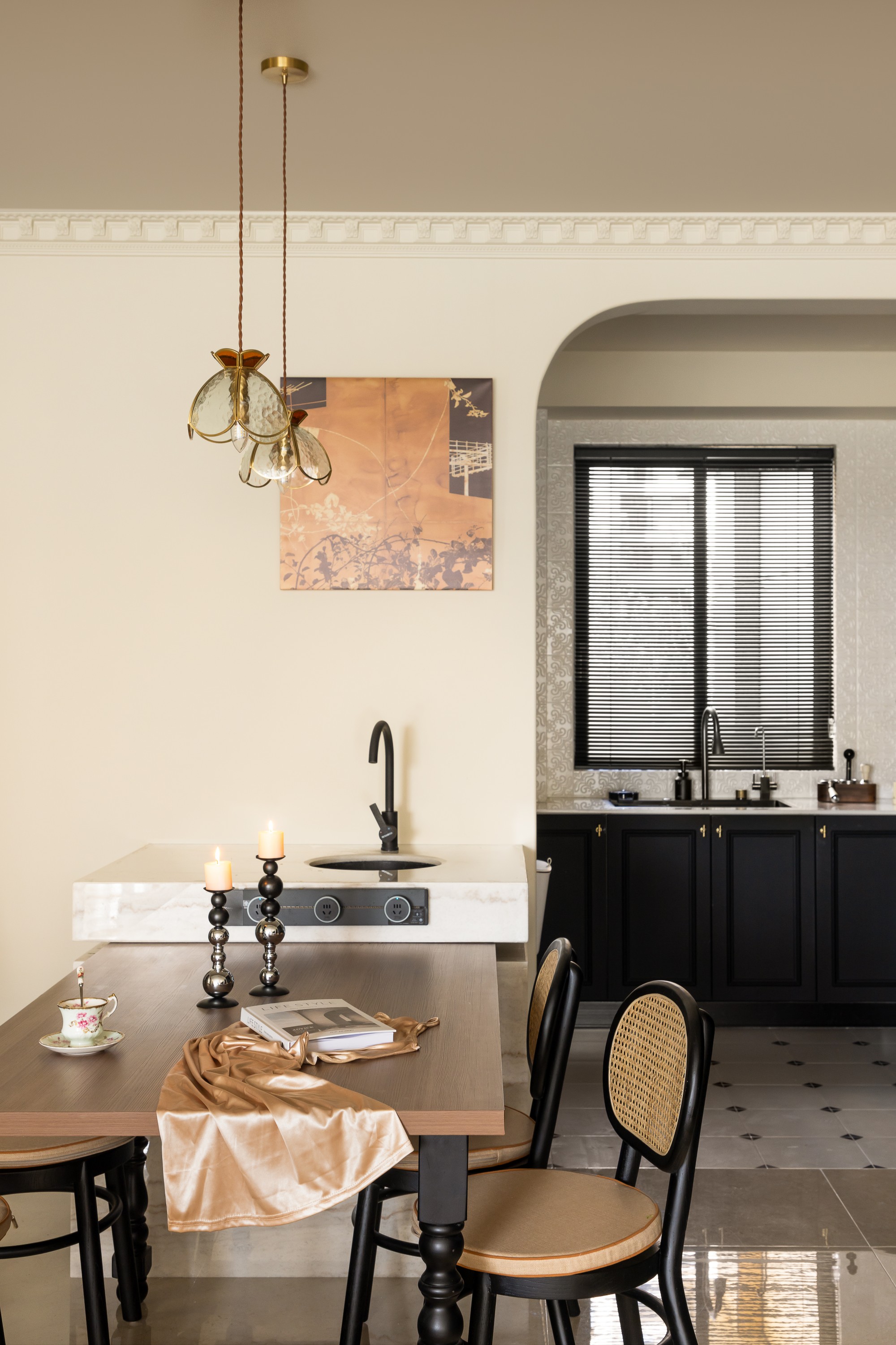 餐厅定制岛台搭配我们专门为业主DIY的餐桌,让整个空间又多了一丝温度。