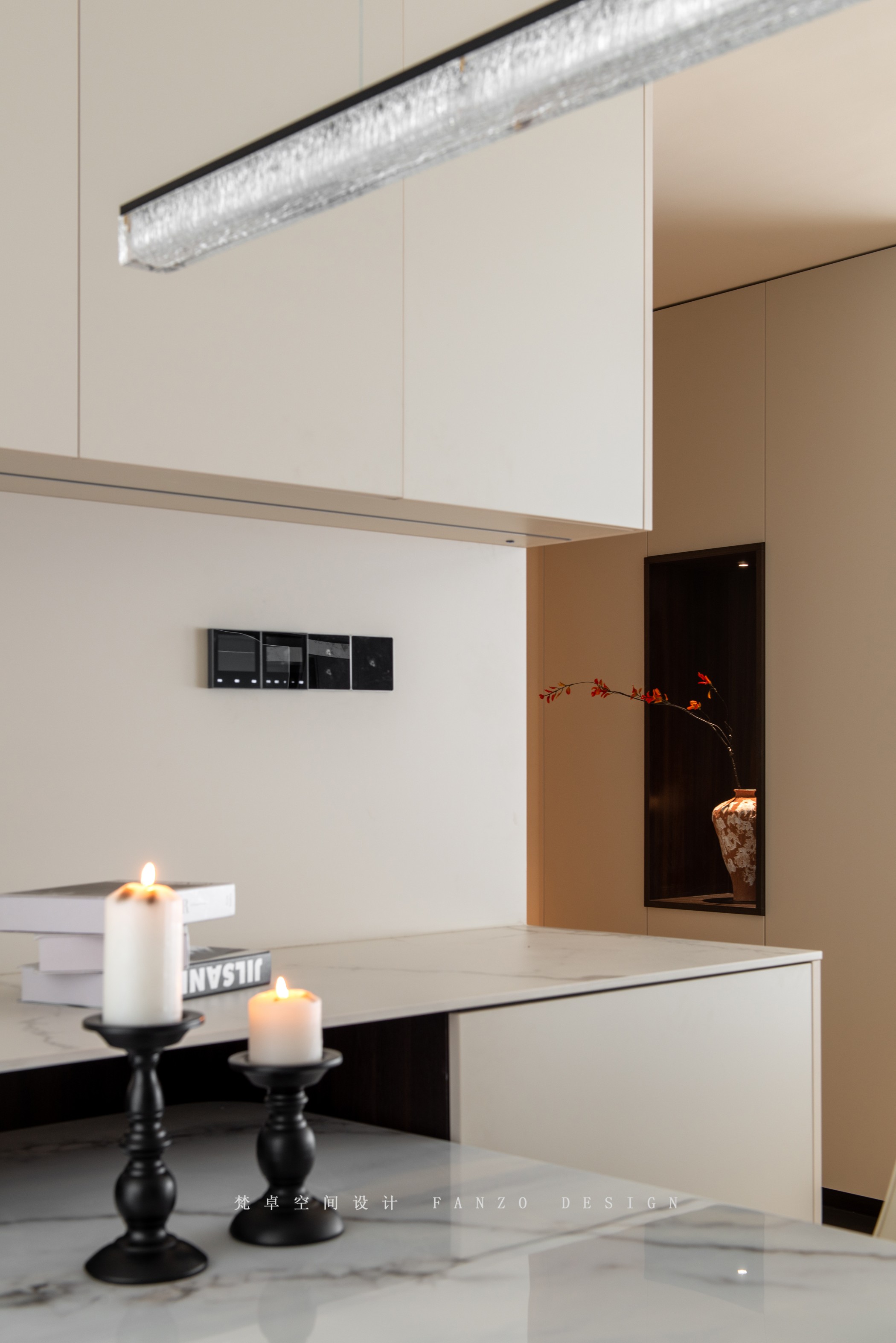 设计选材:选材结合了新中式与意式风格的精华,从客厅到餐厅,从主卧到衣帽间、次卧,每一处都独具匠心。不同风格的混搭和恰当材料的落地,也为这个家,注入了独特魅力。