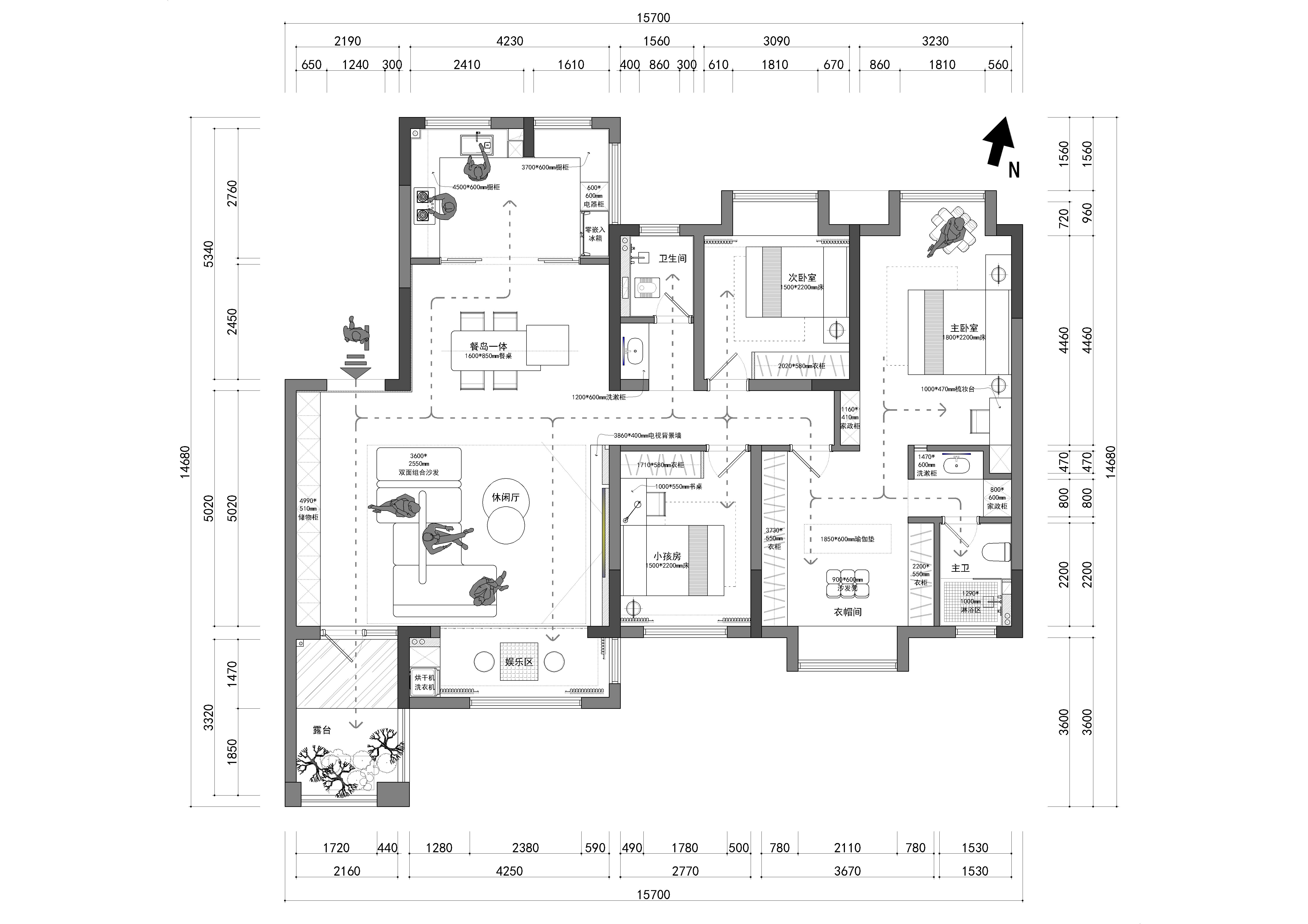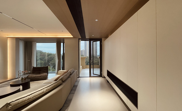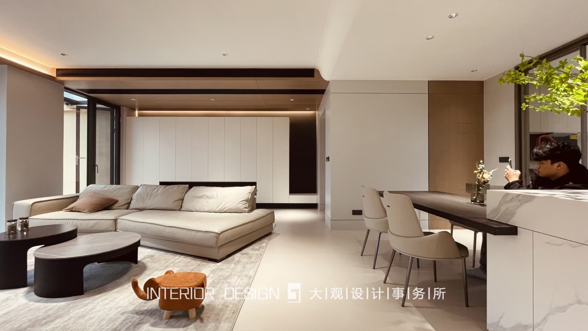 空间意境:基于对业主家庭结构的了解,将临近客厅的一间卧室拆除,让整个场景更富有趣味性,互动性。