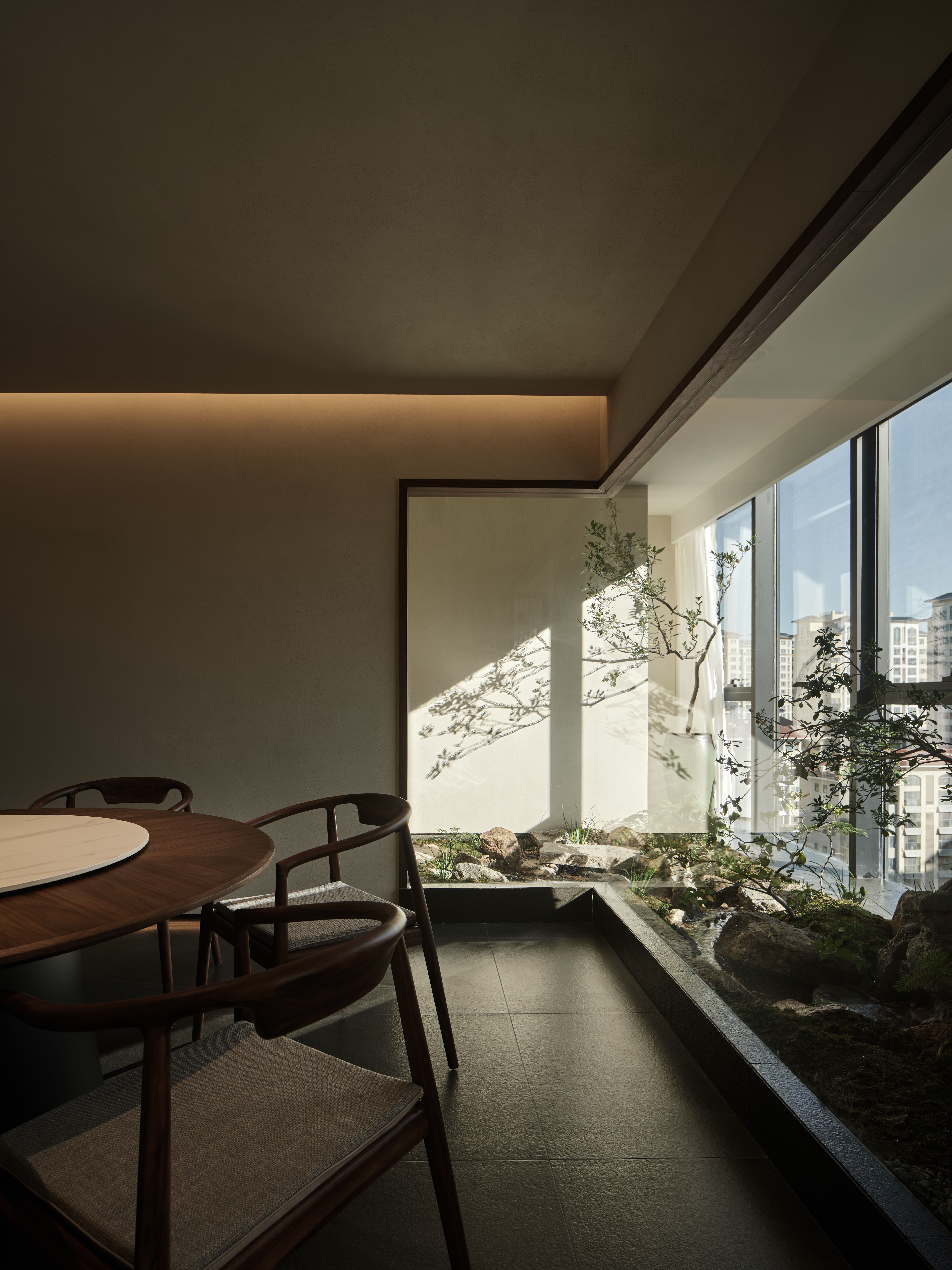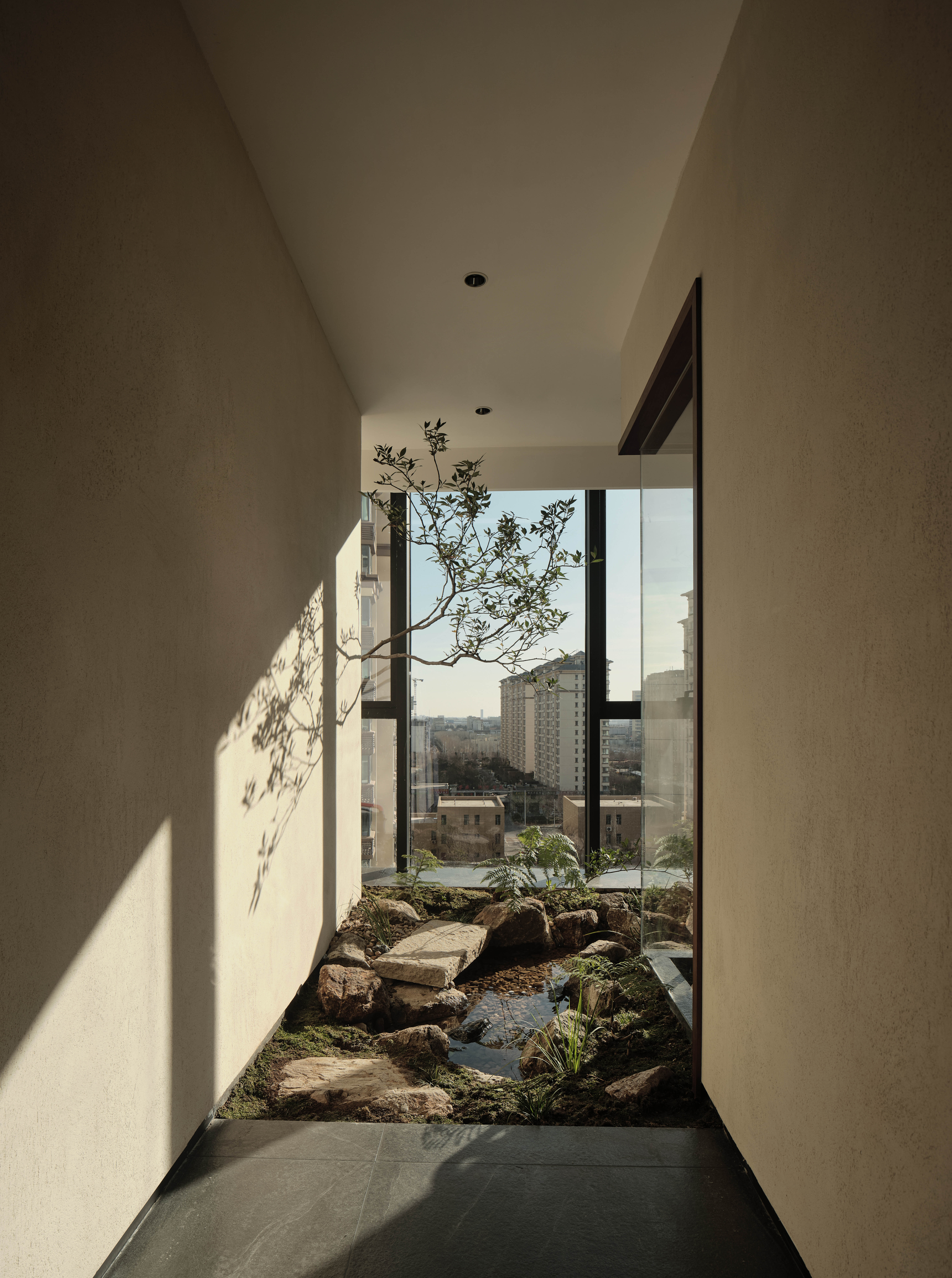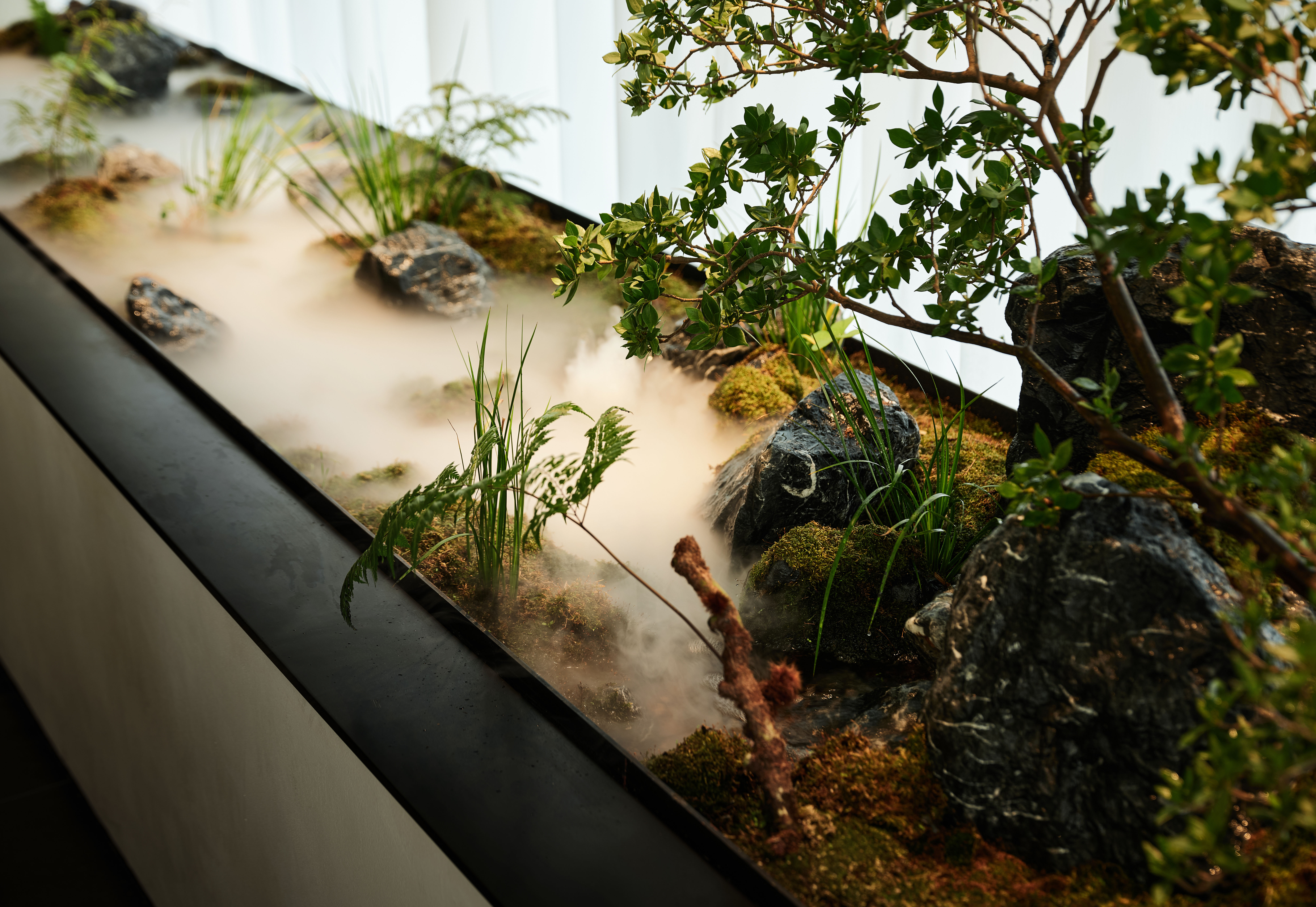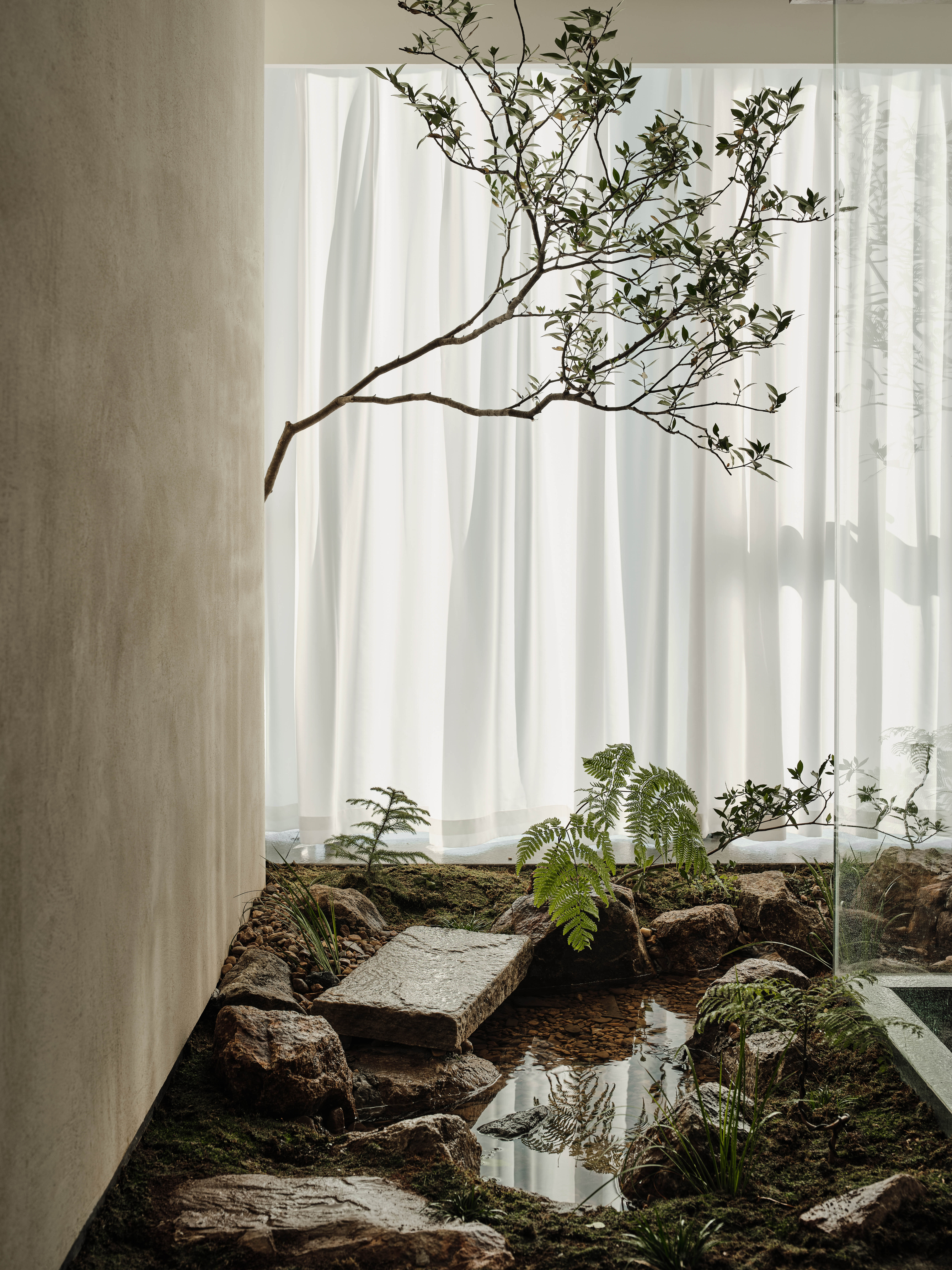 室内景观、溪流造景设计融合了建筑与自然环境的美学,创造出和谐而富有生机的视觉空间。这种设计不仅关注于视觉的美感,还涉及到感官体验和生态平衡。