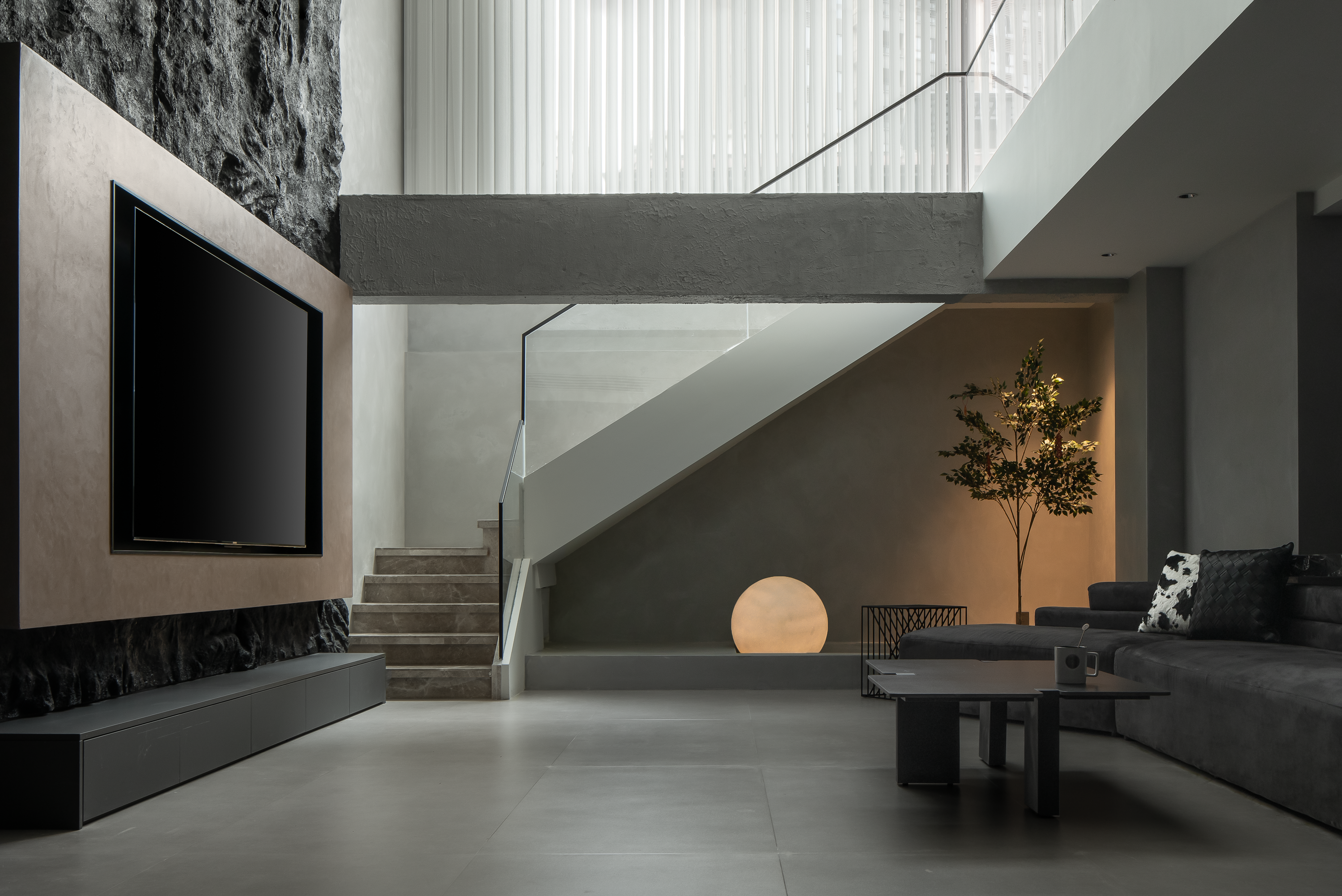 依然是挑空空间的客厅视角,简洁的空间,平静悠远!
