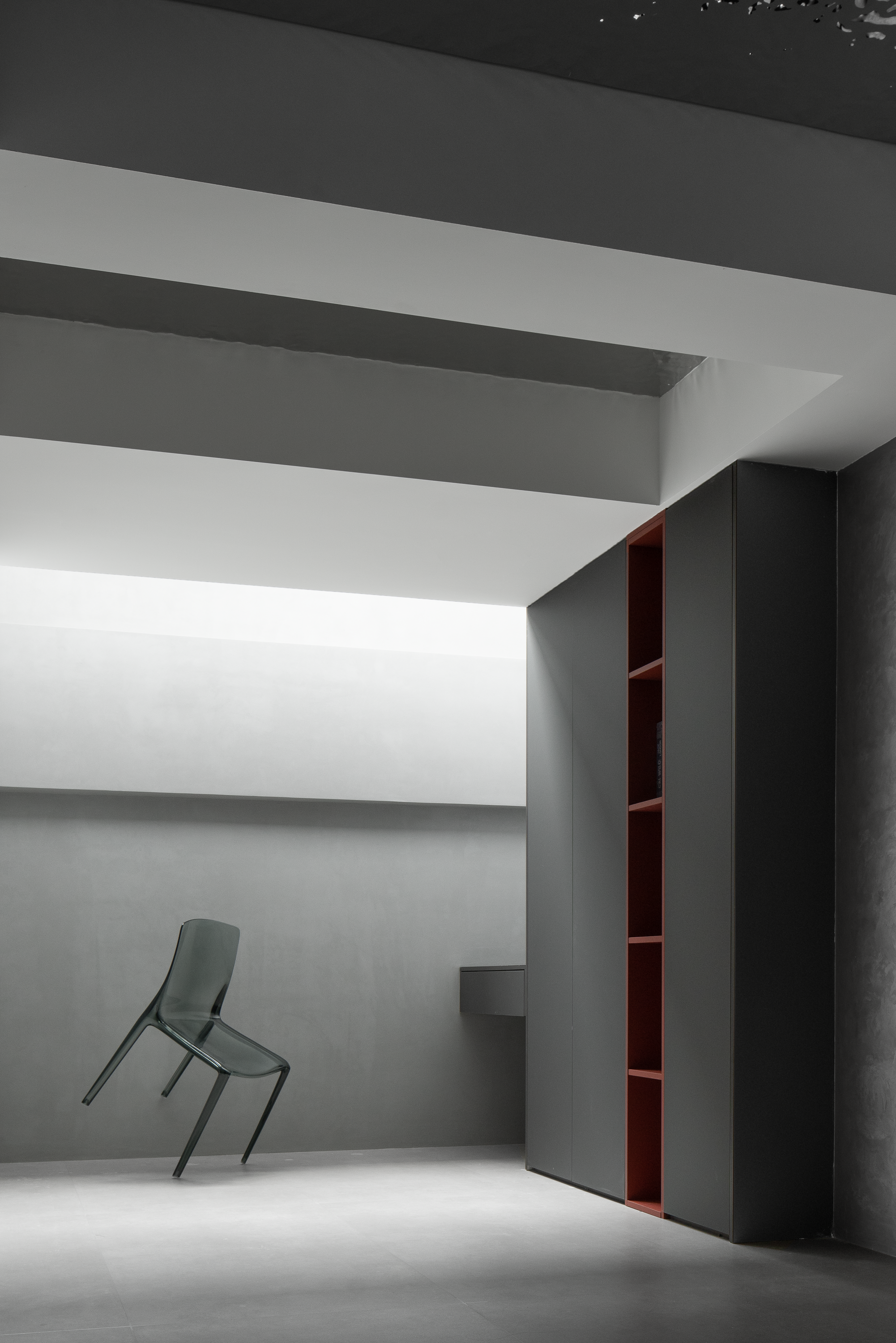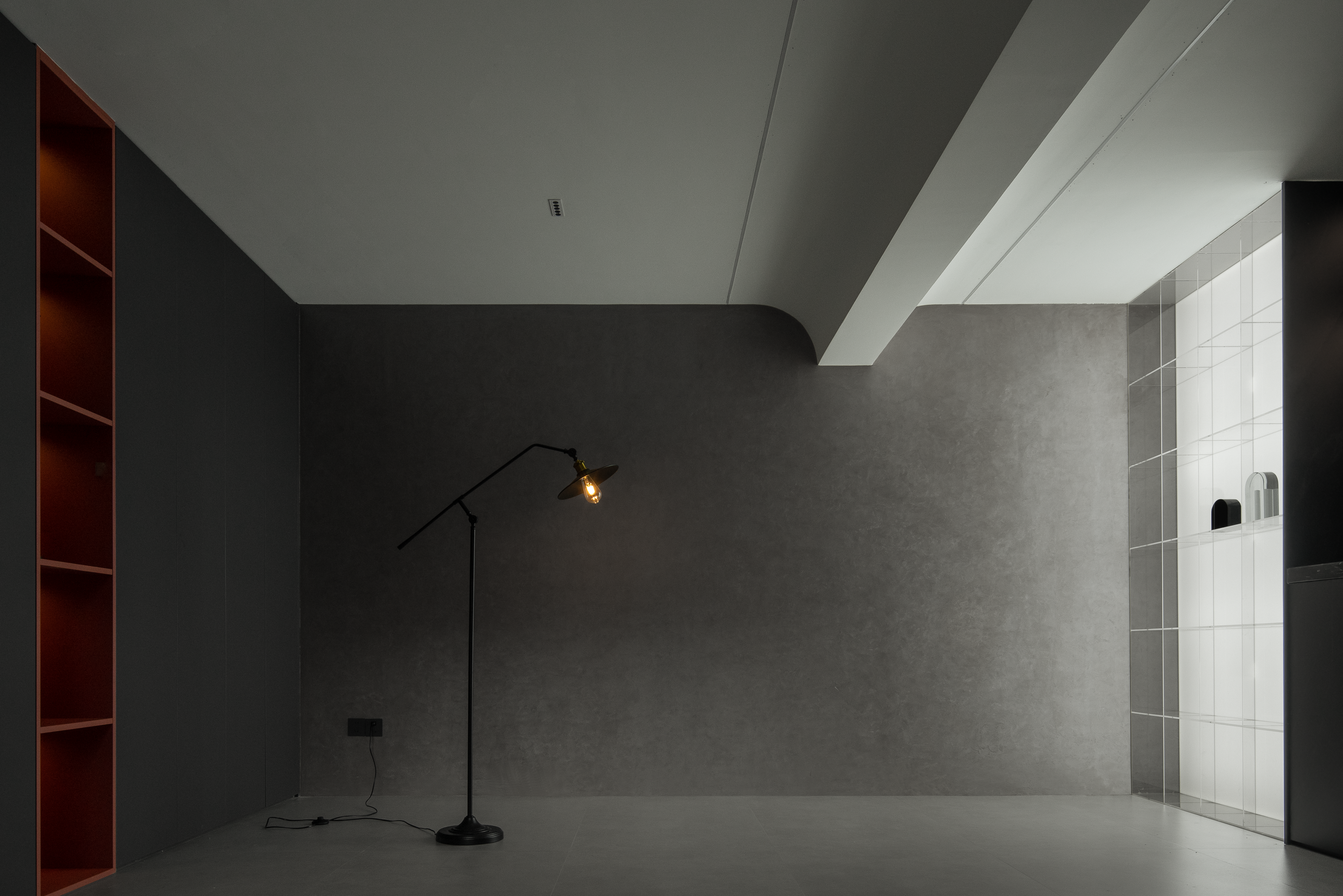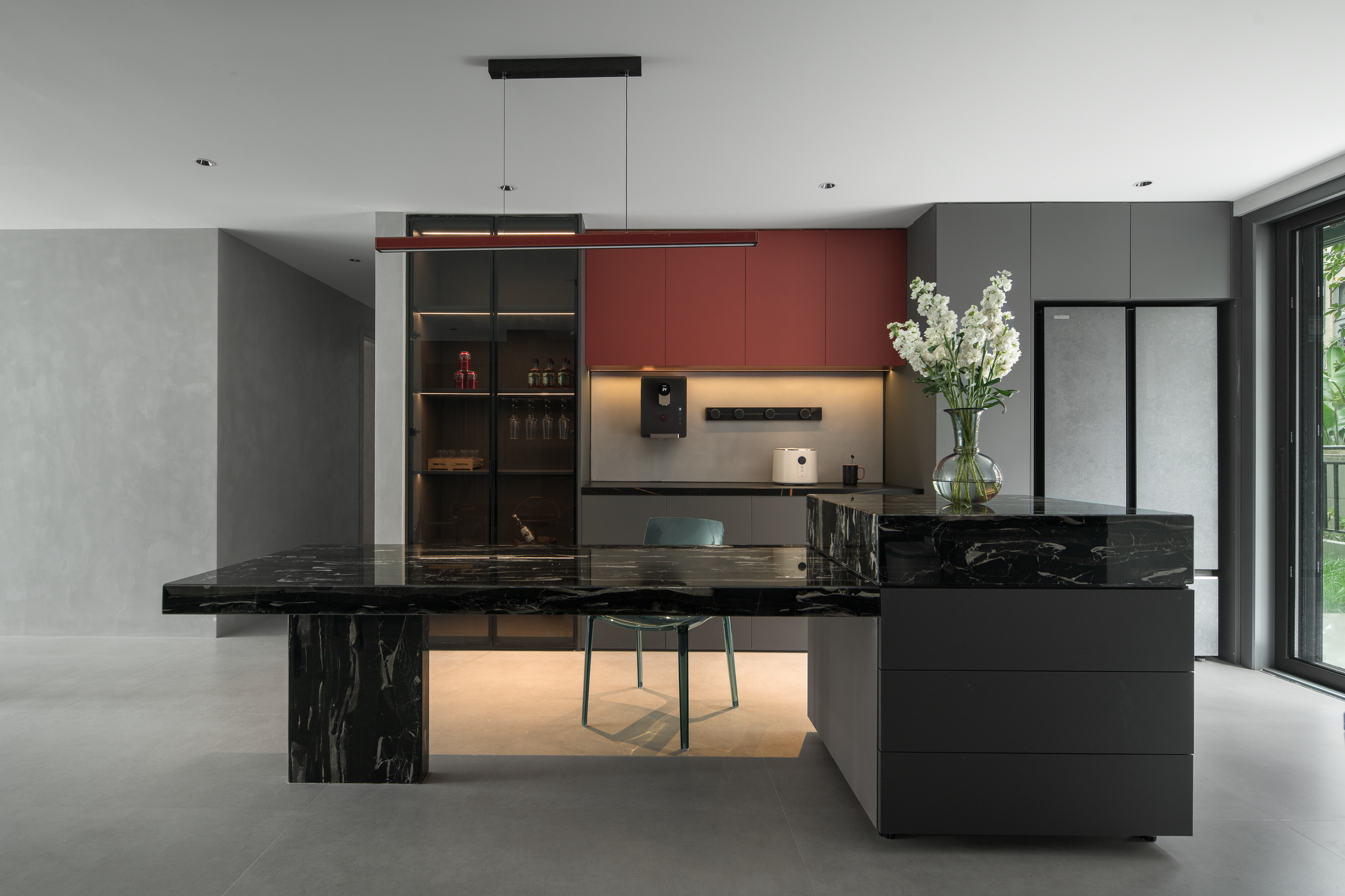 一如既往的整体黑白色的延续。加入的那一点砖红色的点缀,让空间生动起来!