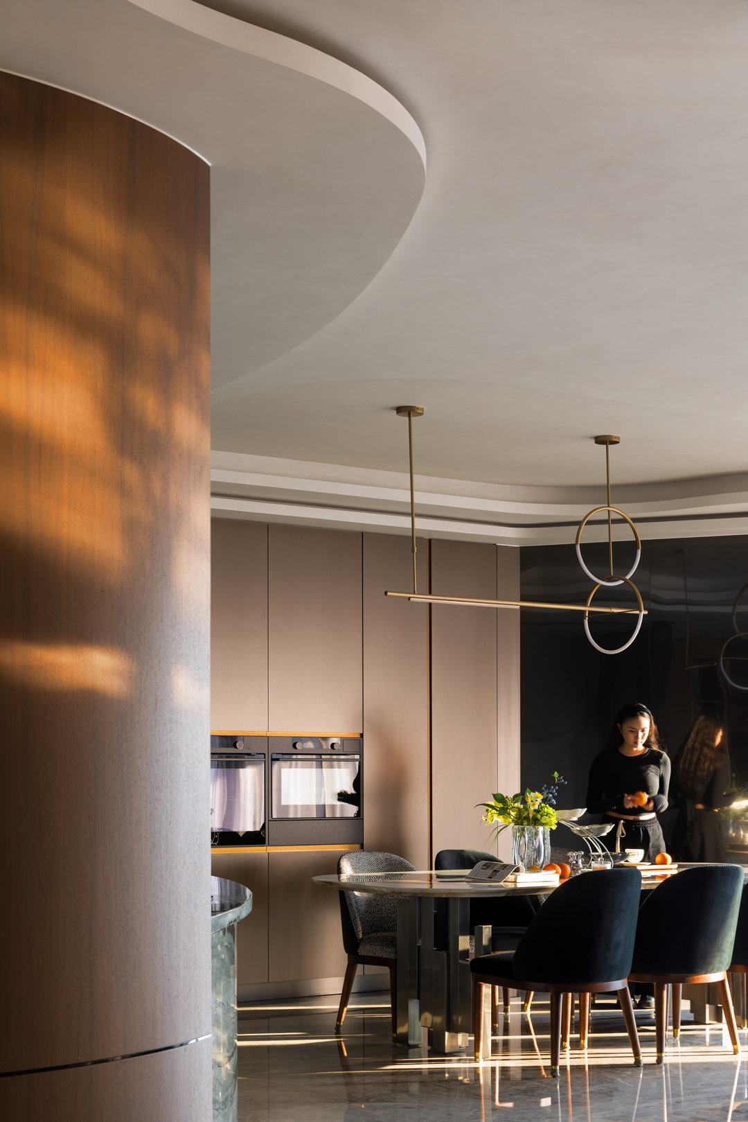 本案设计师以居者所向往的低调雅致的生活态度出发,大胆设色,将华丽的家是和深厚的艺术介入空间内核,与建筑无界相容,与自然助部相伴,申联起生活的场景和片段,突帚业主的生活热摩及生活价值
