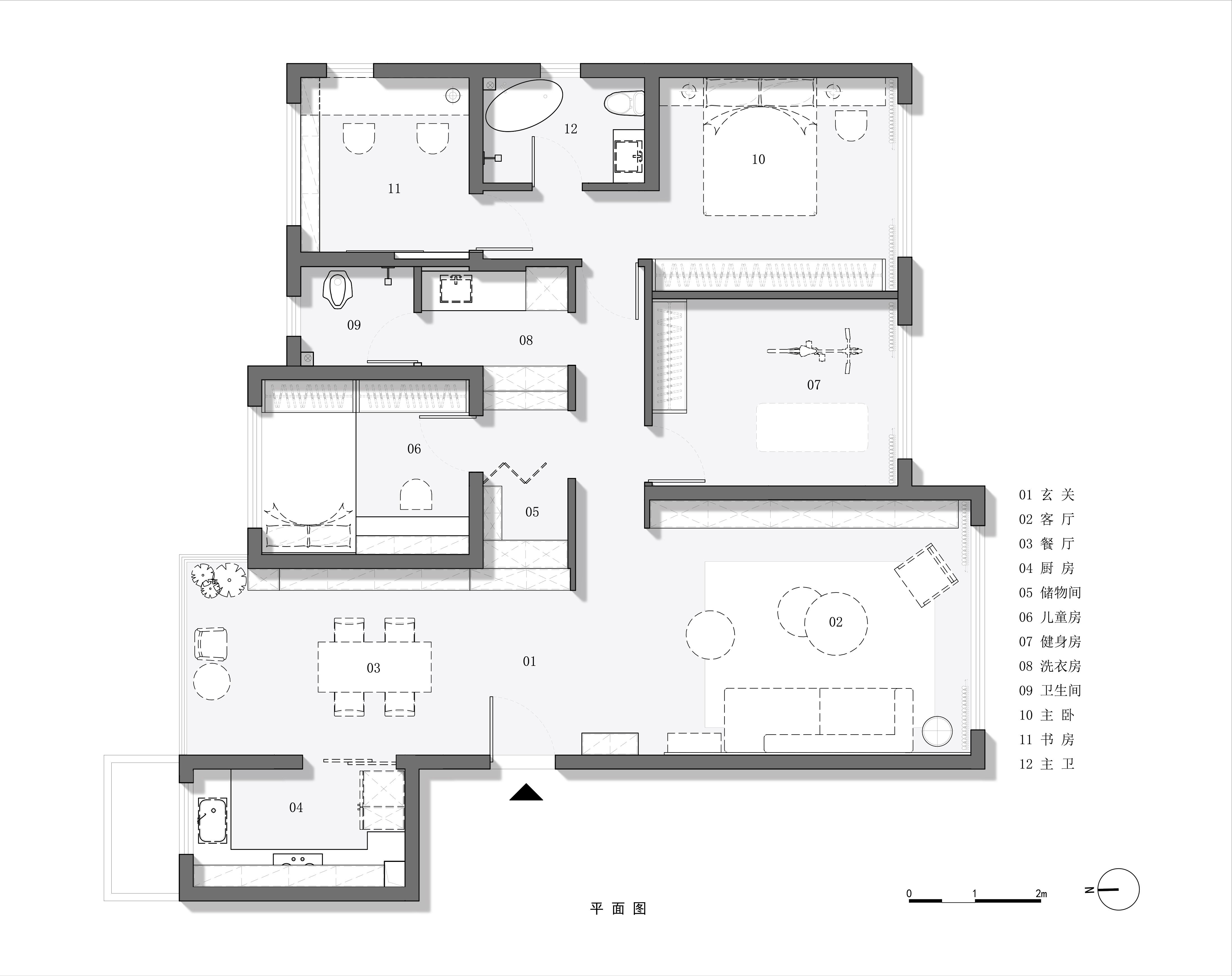 由此形成并增加了玄关、储物间、洗衣房等空间。并使得各功能空间的面积分配更加协调。