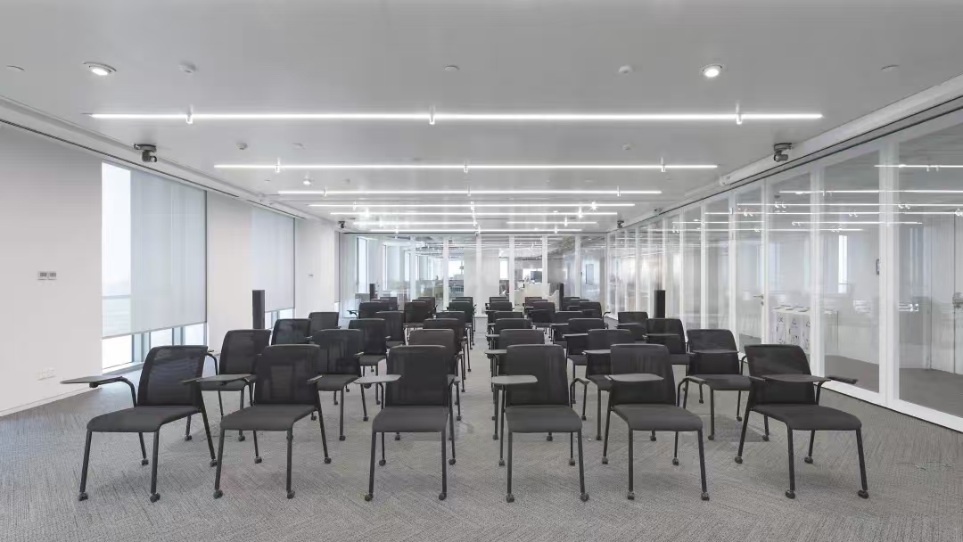 多功能厅内部采用实体活动隔断,可实现多种规模的会议、讨论、培训模式。