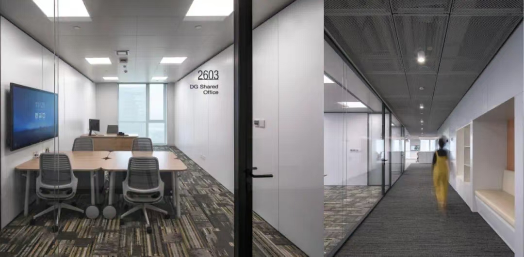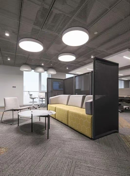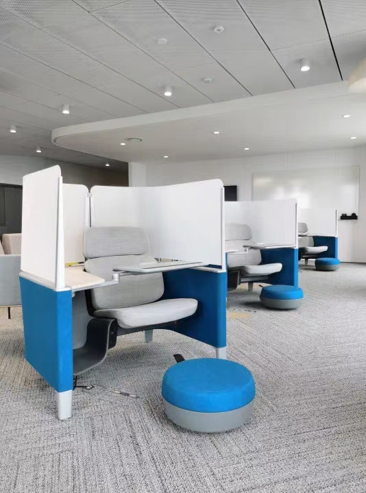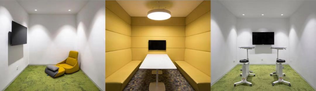 办公氛围逐渐居家化演变,屏风沙发在视觉与噪音上减少了对工位区的干扰创造了办公灰空间。