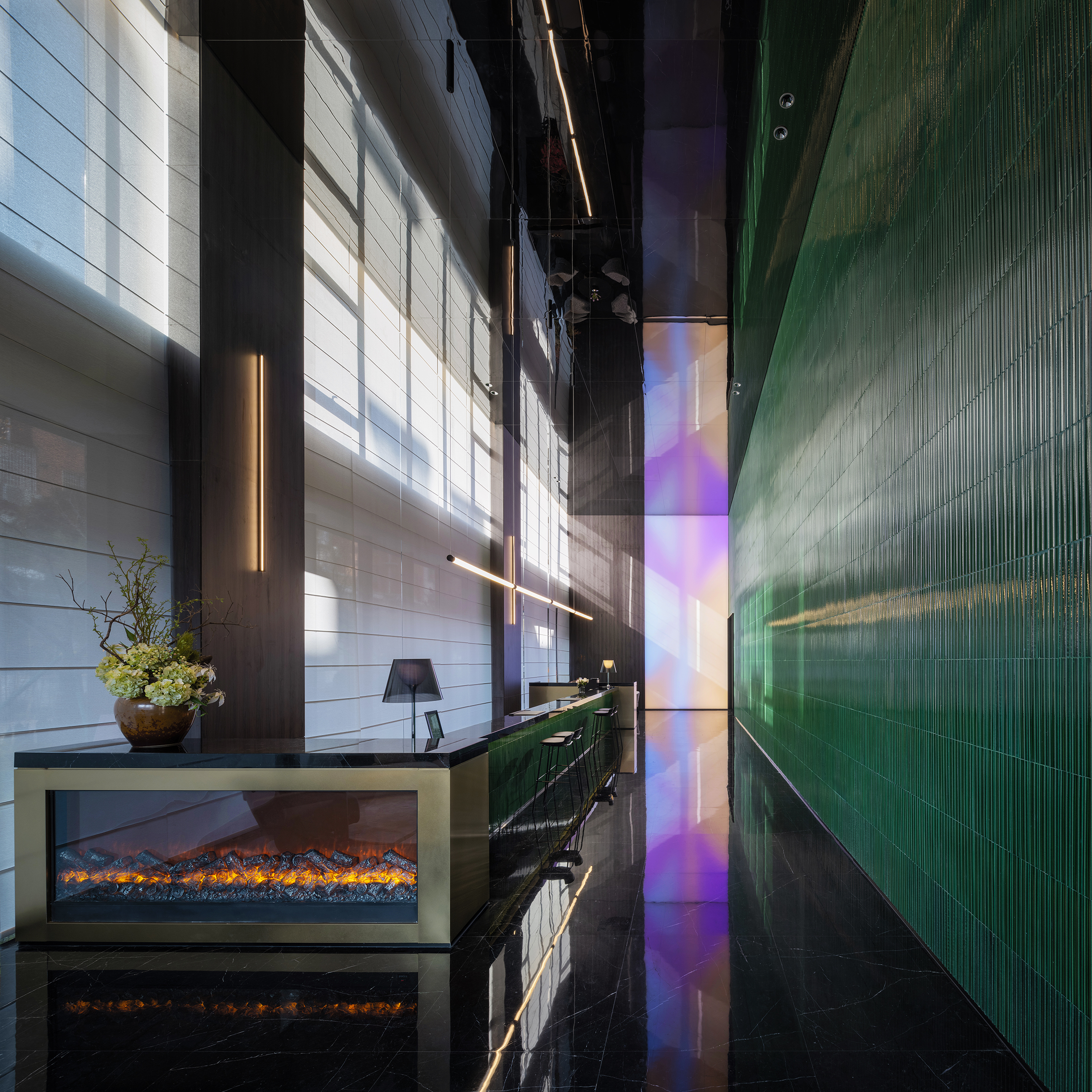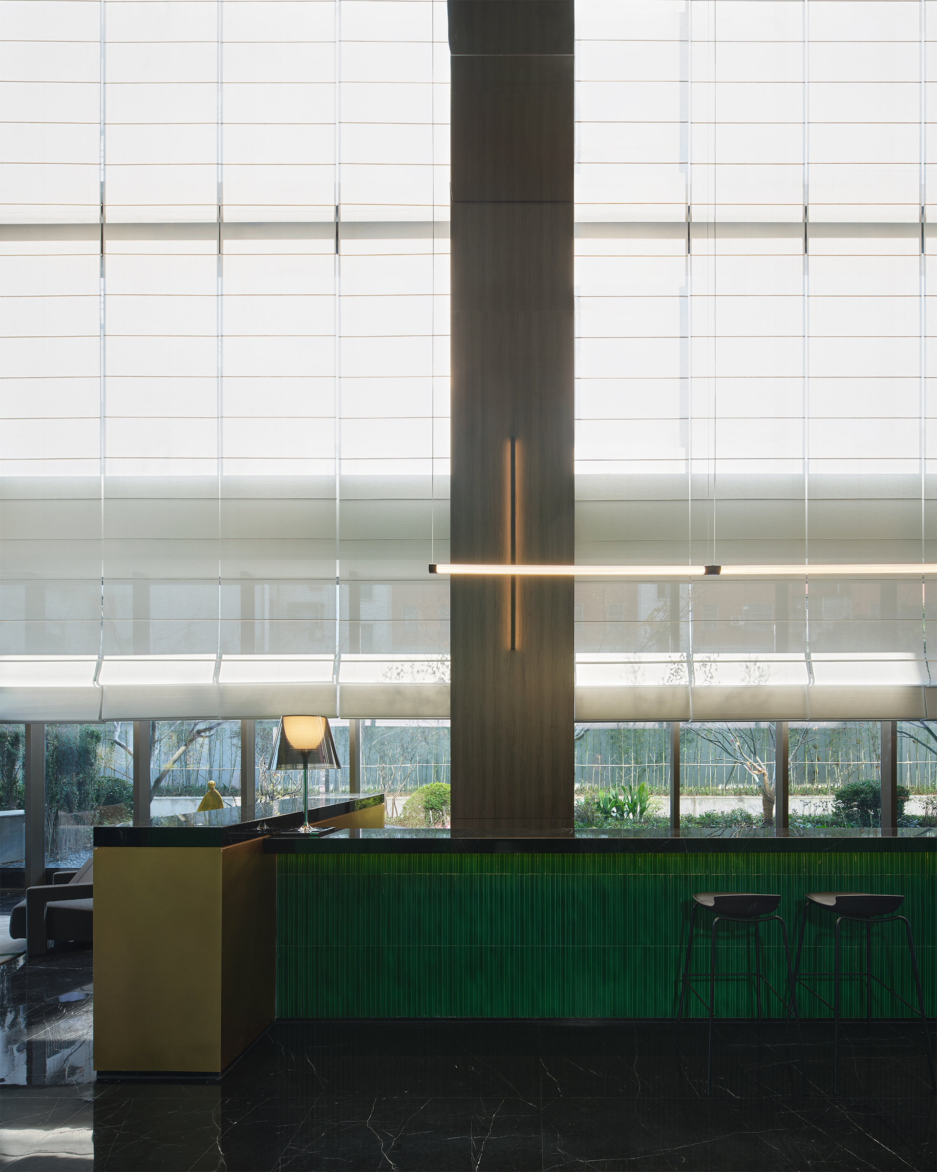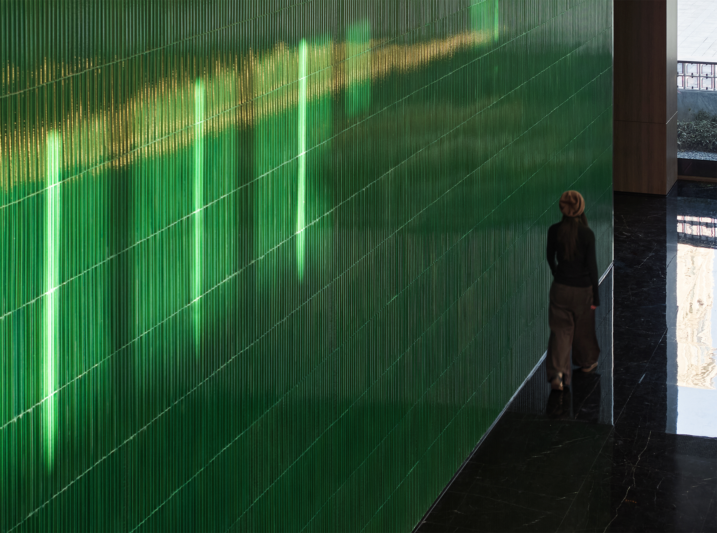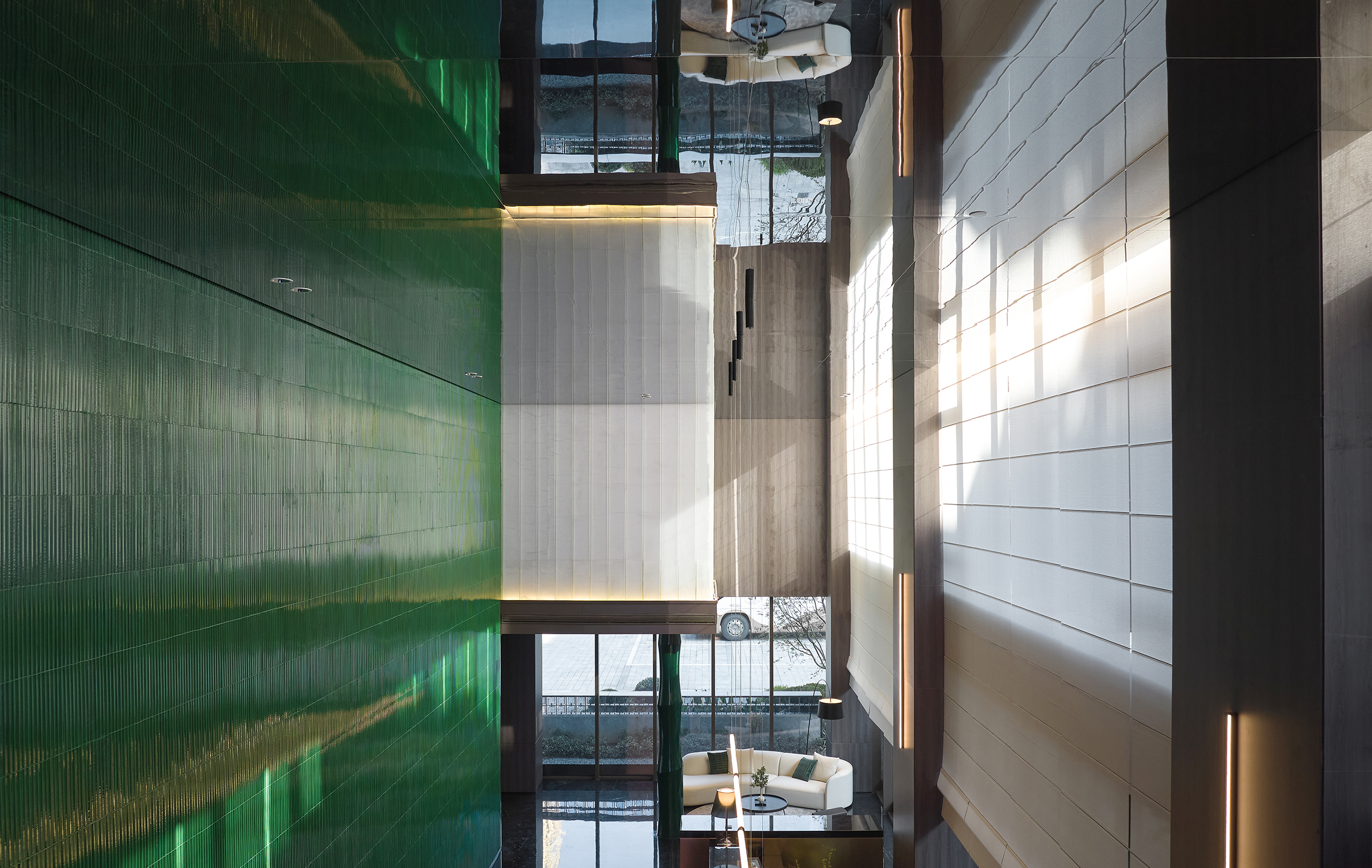 用户体验:安吉雷迪森维嘉酒店的设计深度契合了当地的地域特色与文化底蕴。鉴于项目落地于安吉,我们在空间设计中巧妙地运用了大量绿色瓷砖元素,象征安吉的自然生态,同时融入了“竹”这一雕塑装置,传达出安吉独有的竹韵之美。无论是软装陈设,还是硬装材质与造型设计,都充分呼应了安吉这座城市的独特定位,营造出既现代又富有在地精神的空间体验。