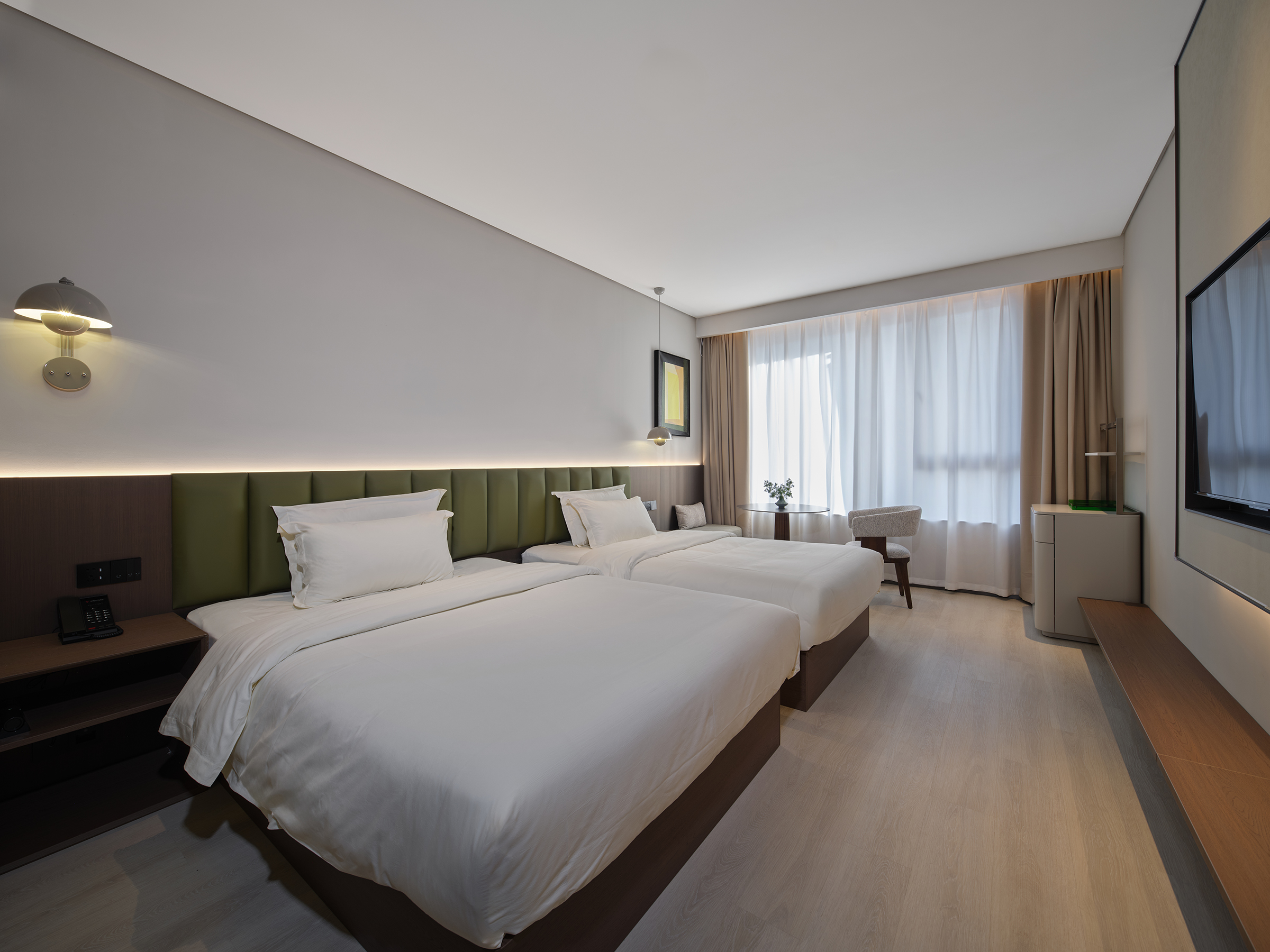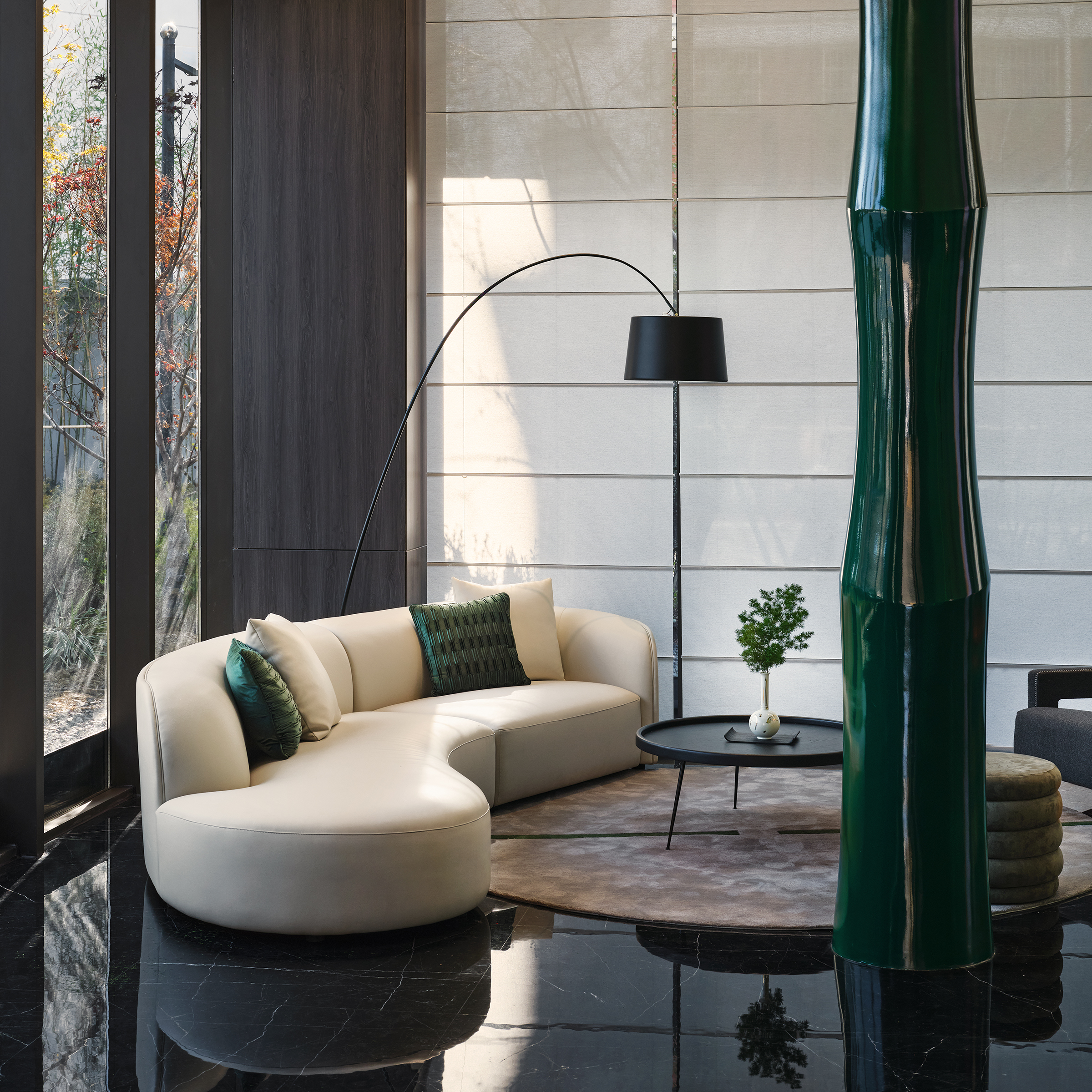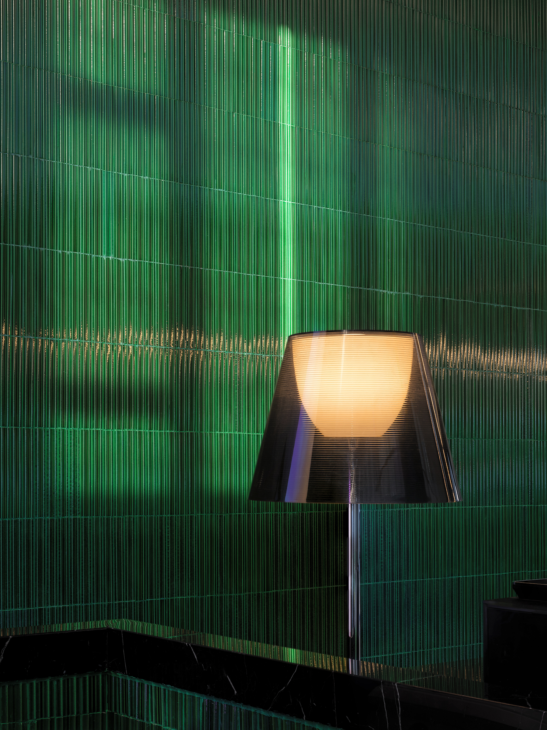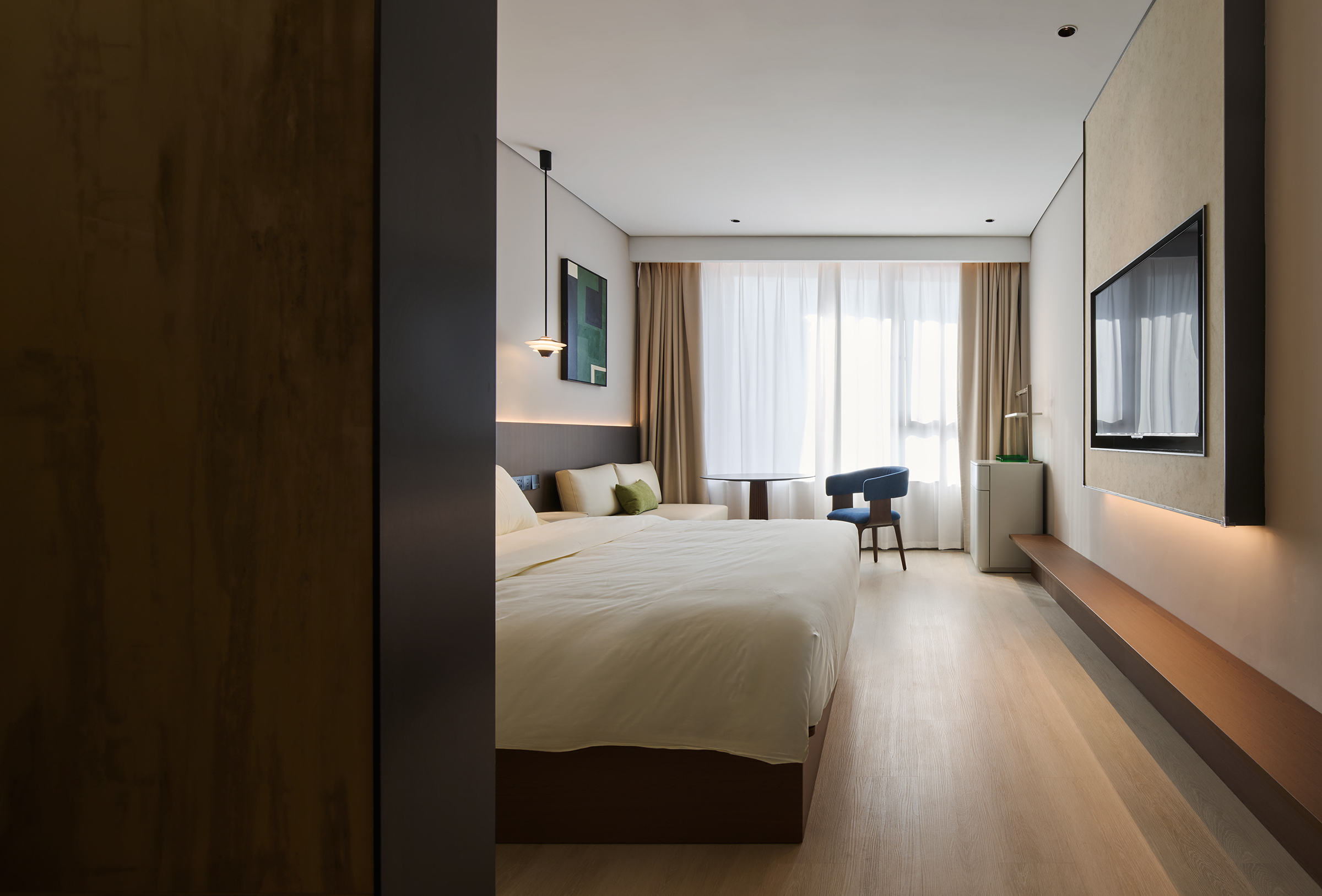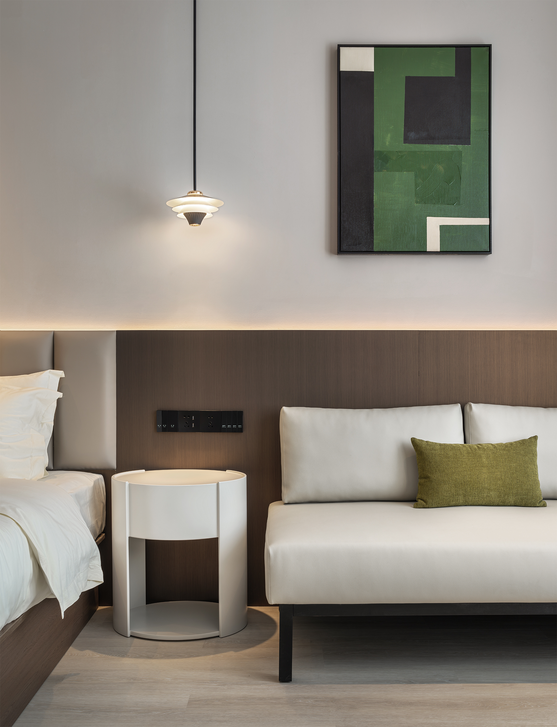 用户体验:安吉雷迪森维嘉酒店的设计深度契合了当地的地域特色与文化底蕴。鉴于项目落地于安吉,我们在空间设计中巧妙地运用了大量绿色瓷砖元素,象征安吉的自然生态,同时融入了“竹”这一雕塑装置,传达出安吉独有的竹韵之美。无论是软装陈设,还是硬装材质与造型设计,都充分呼应了安吉这座城市的独特定位,营造出既现代又富有在地精神的空间体验。