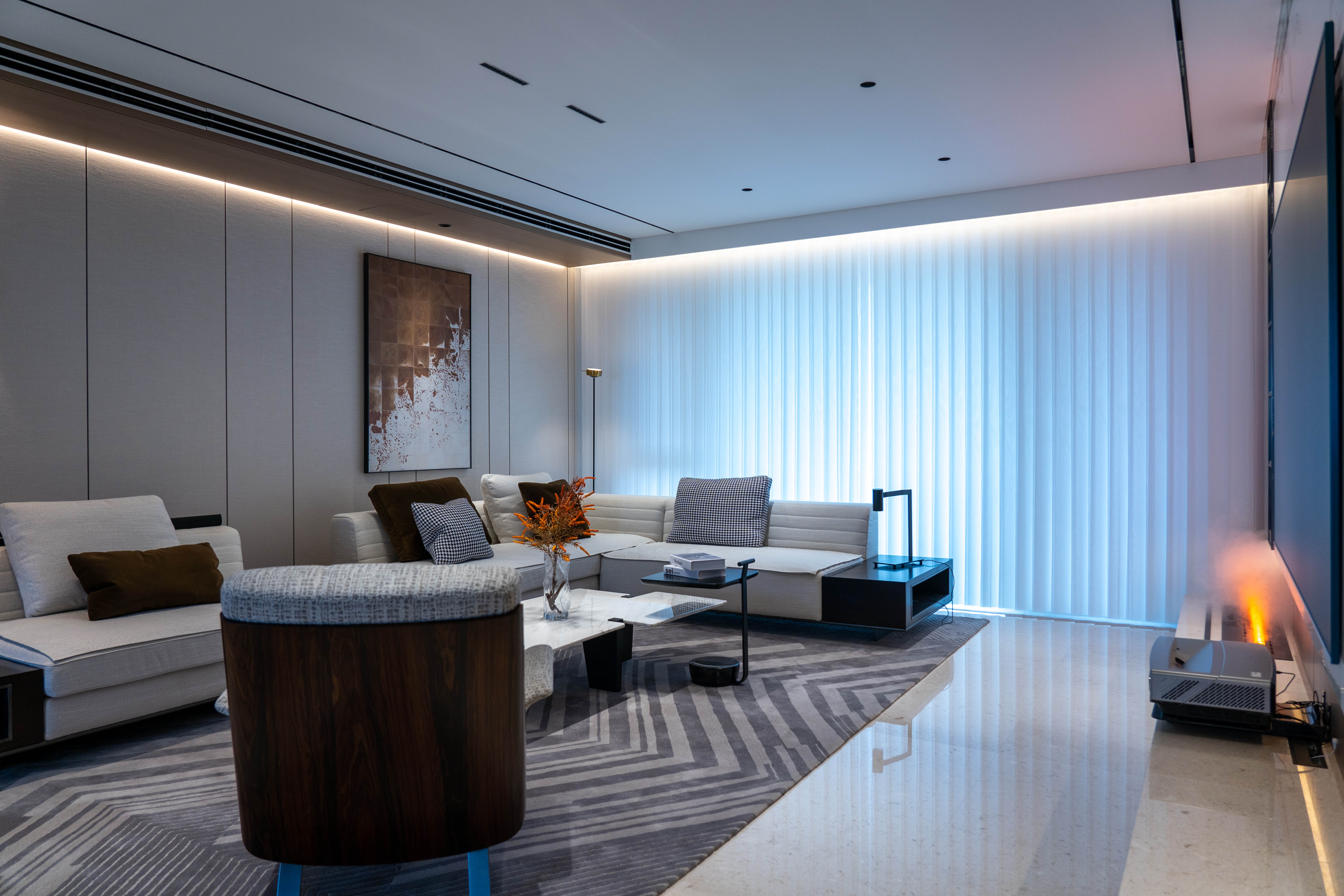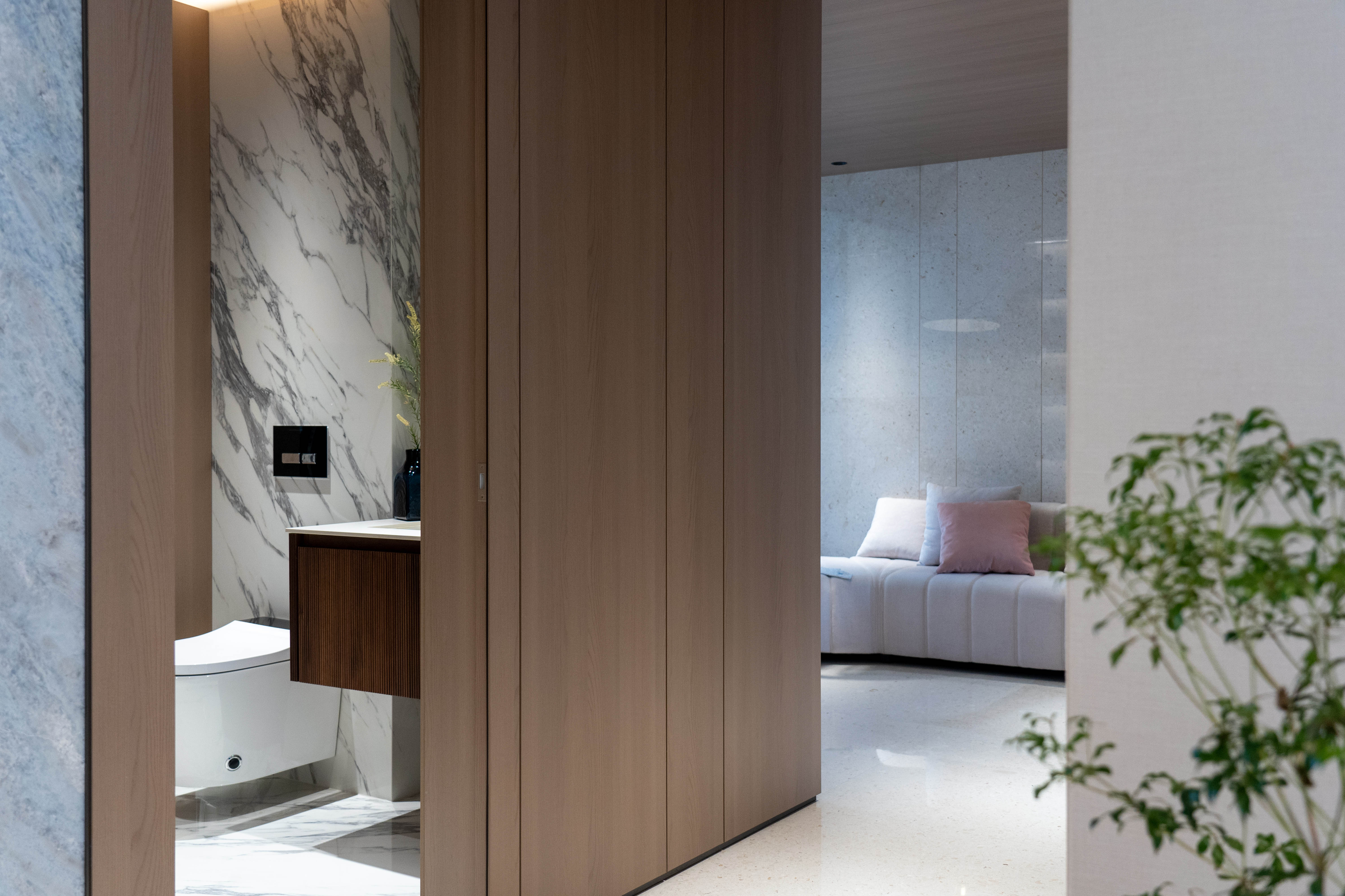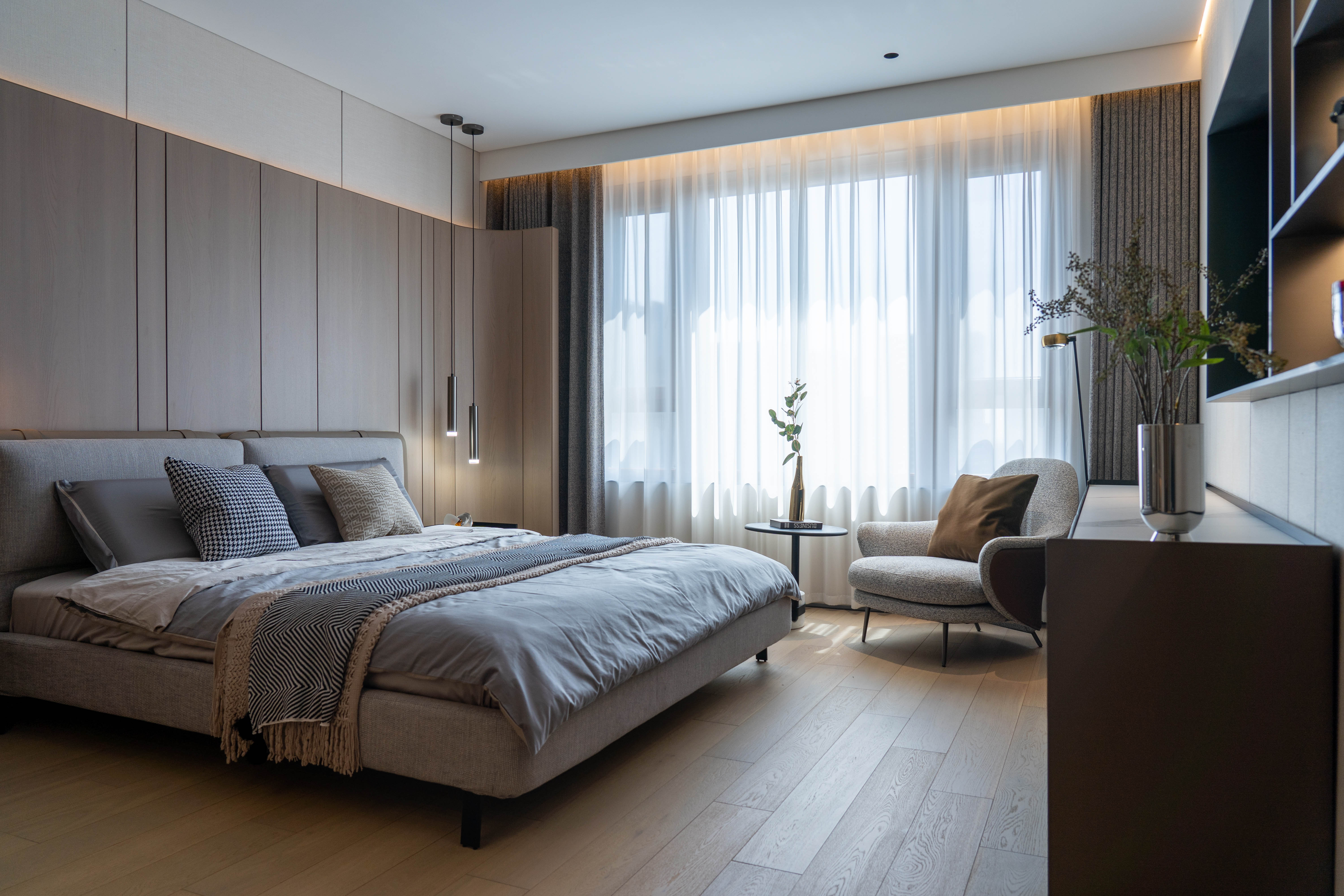 以温暖的色调为主,如米色、暖灰和柔和的木质色彩,营造出温馨宜人的居住氛围。