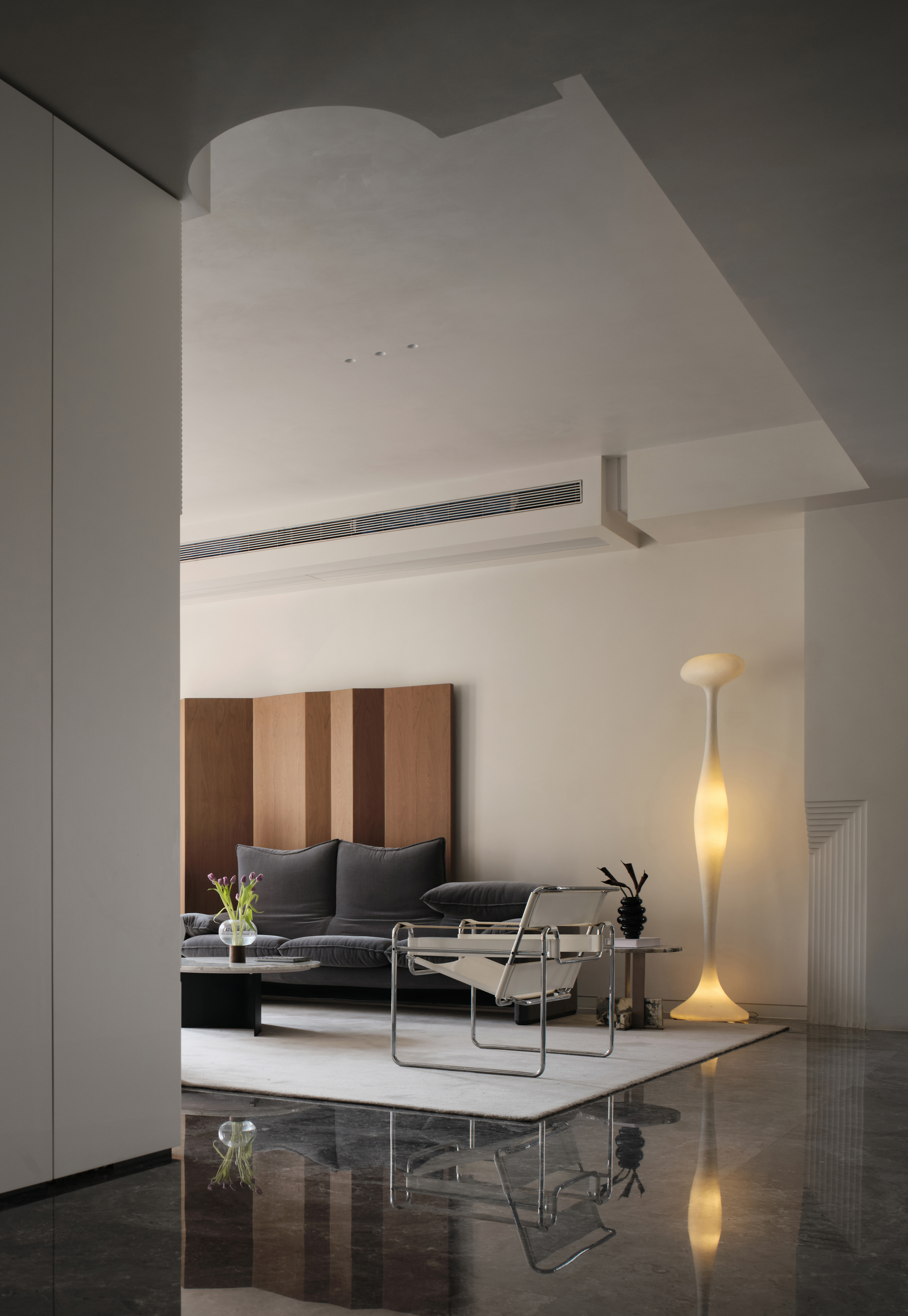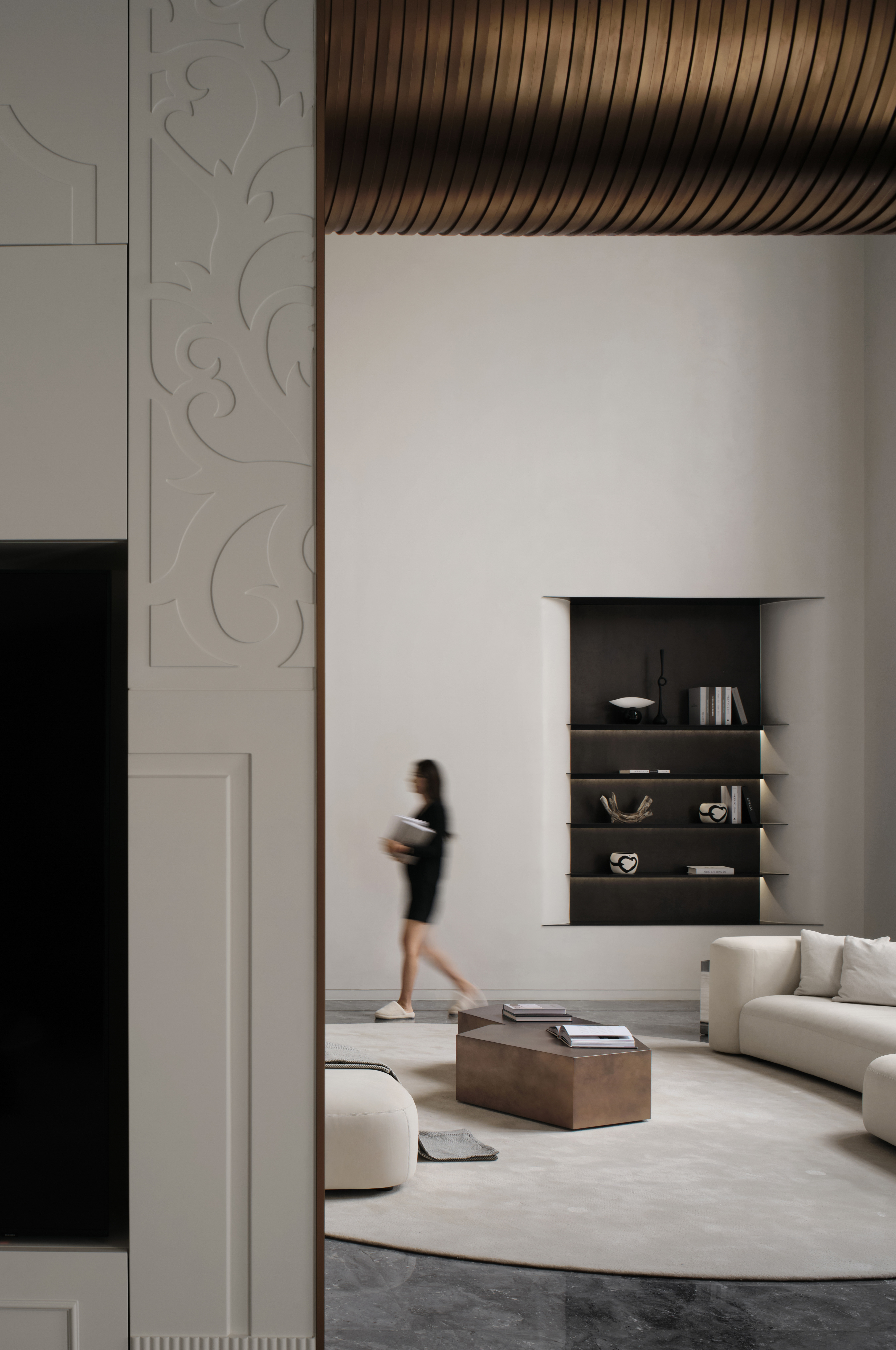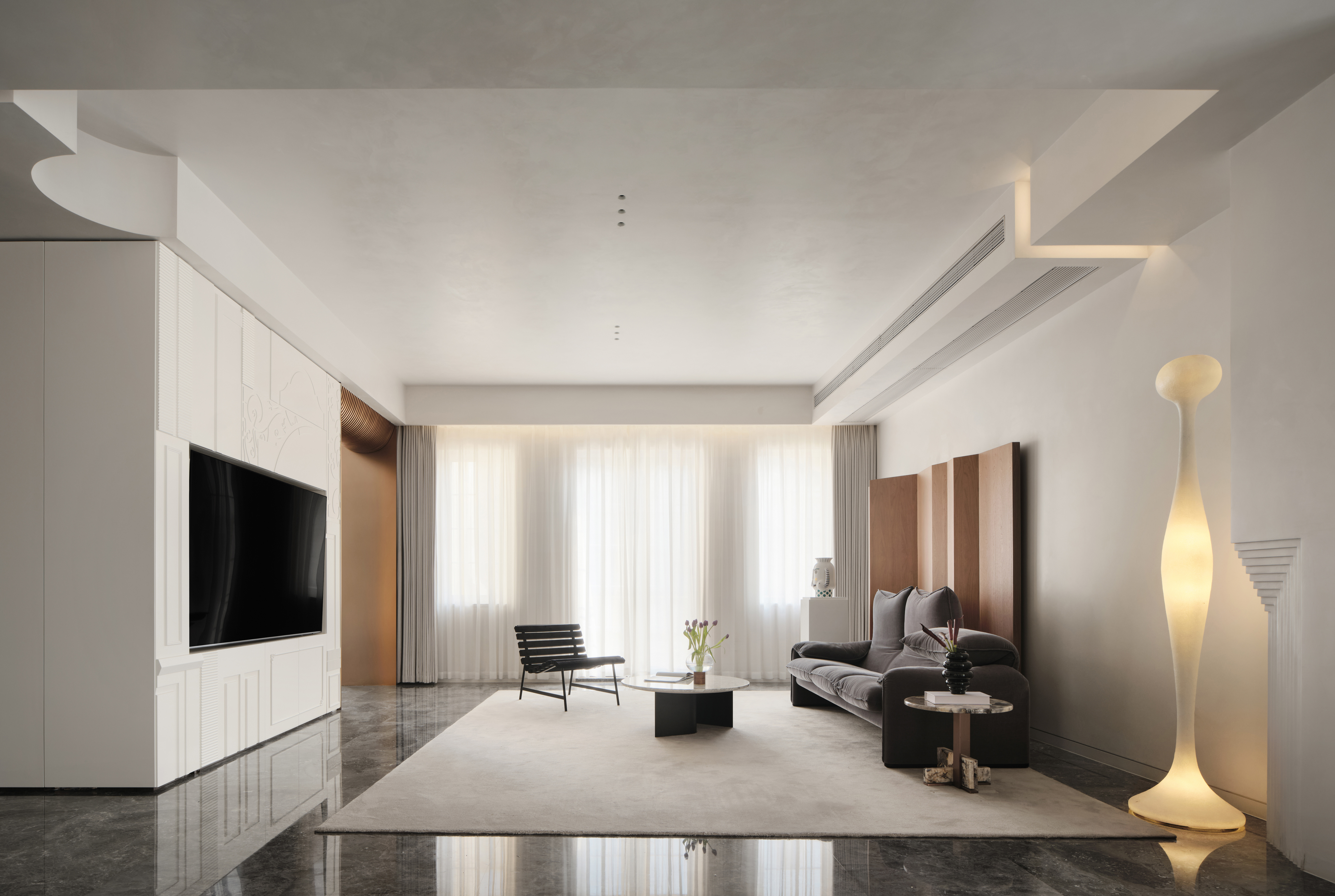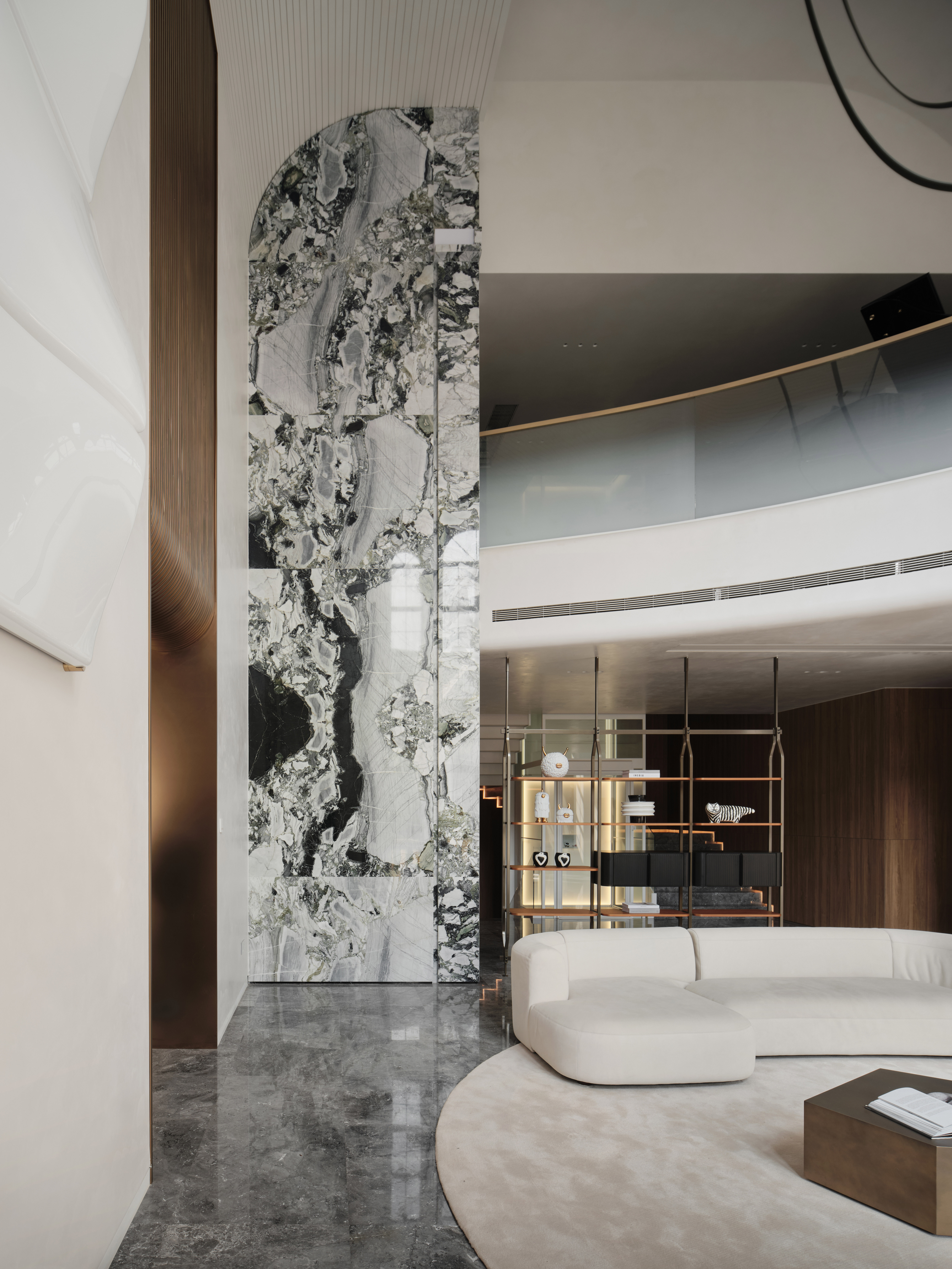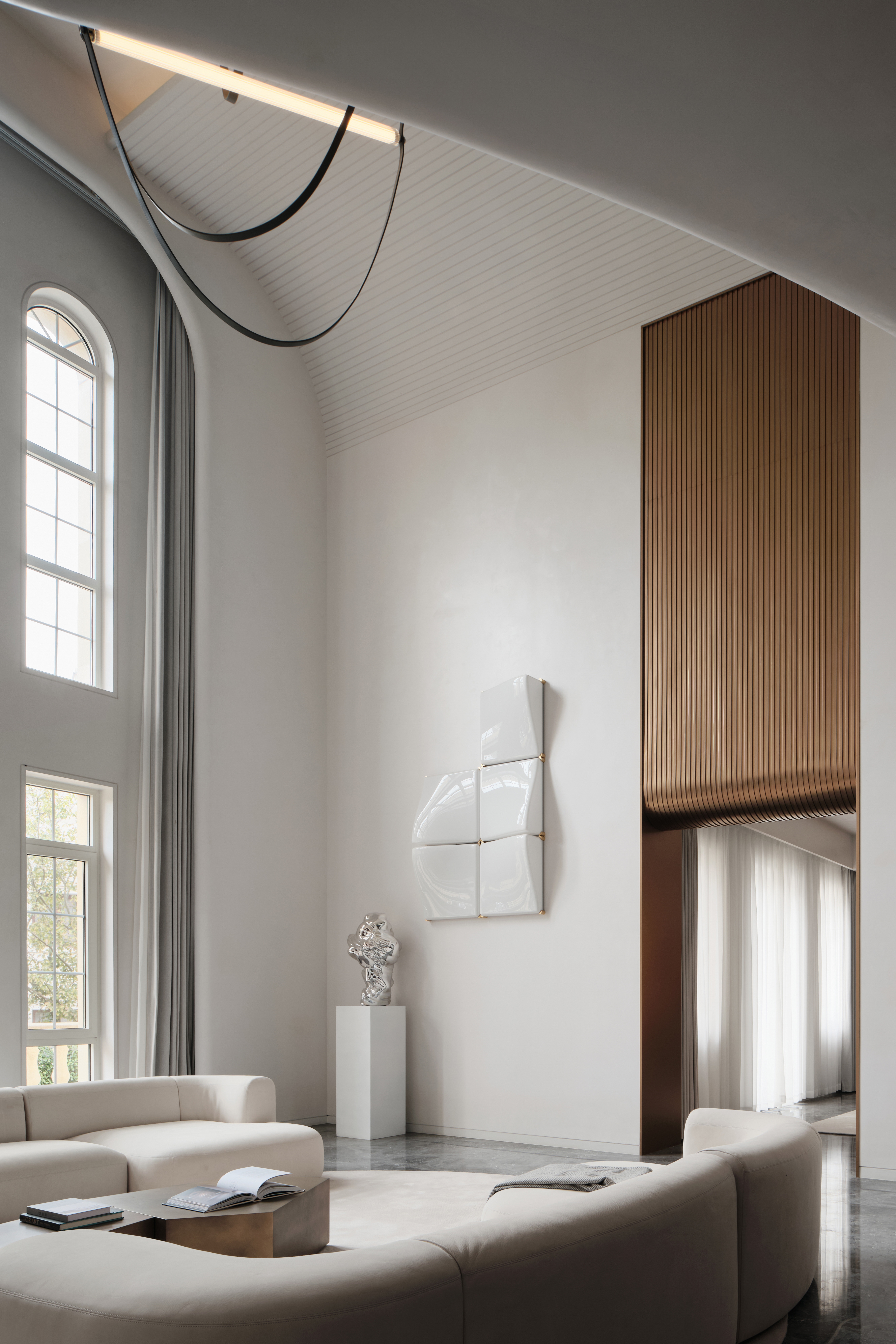 空间意境:曲、直线条勾勒空间轮廓,开放式挑高弧形顶面