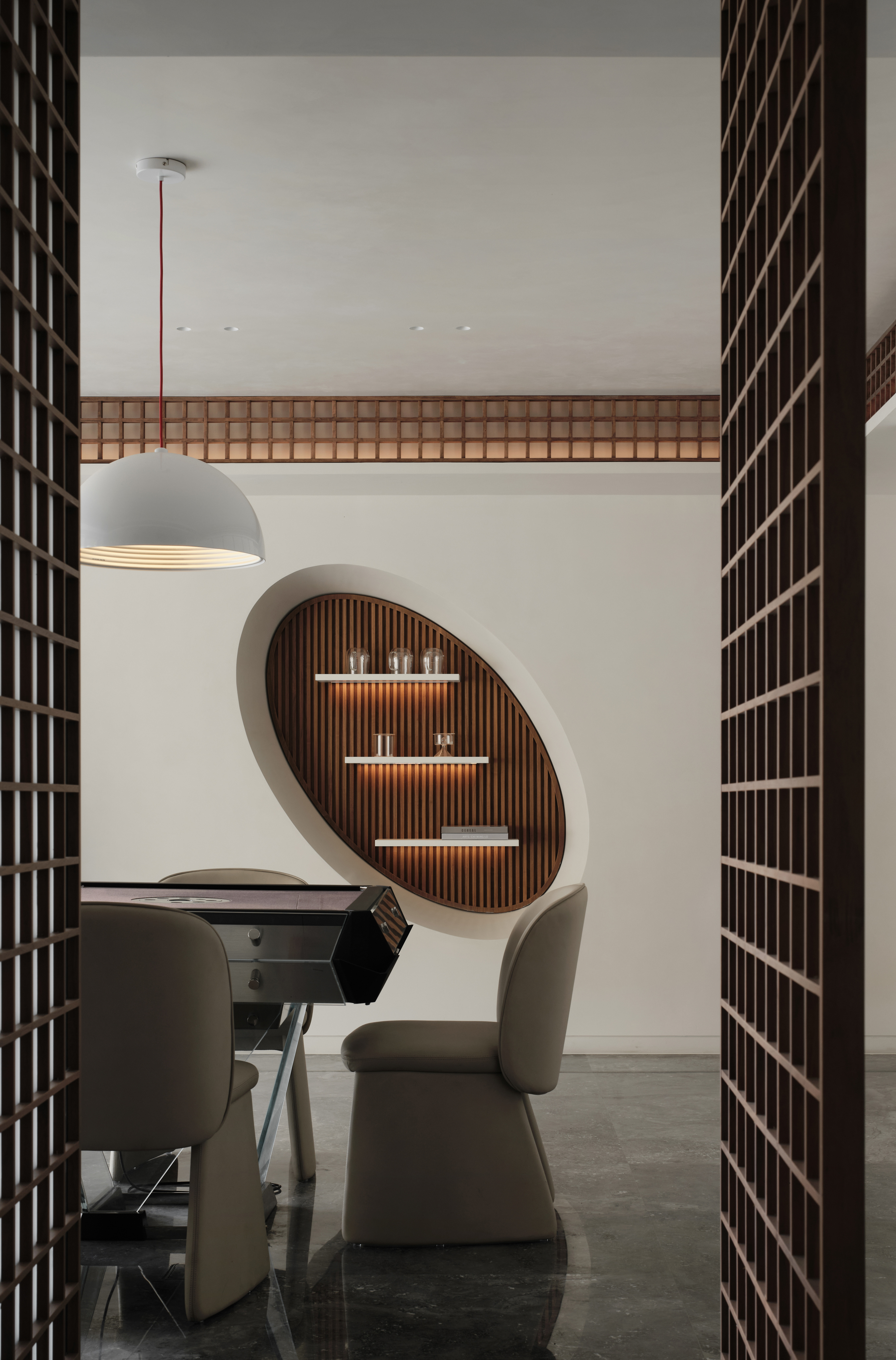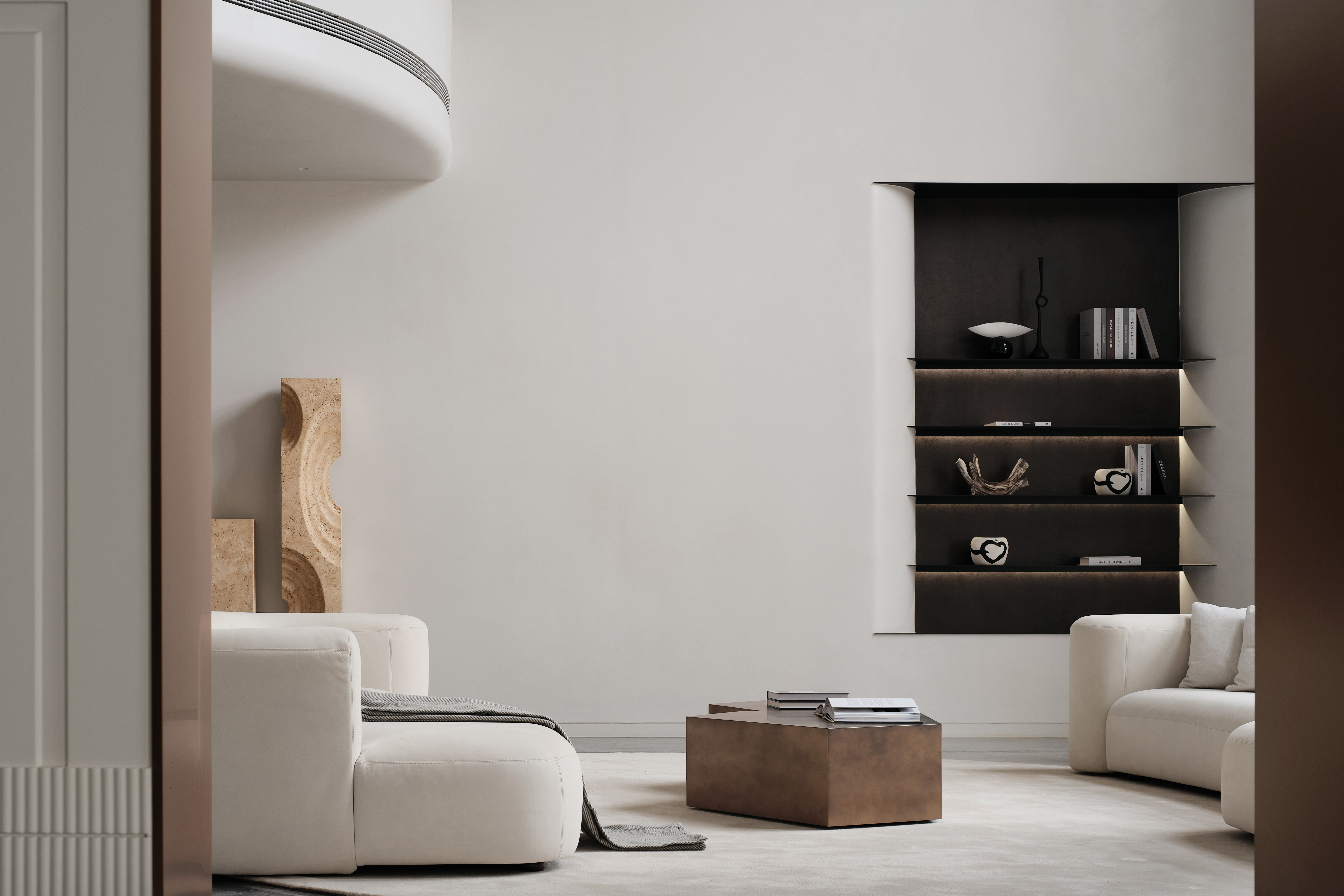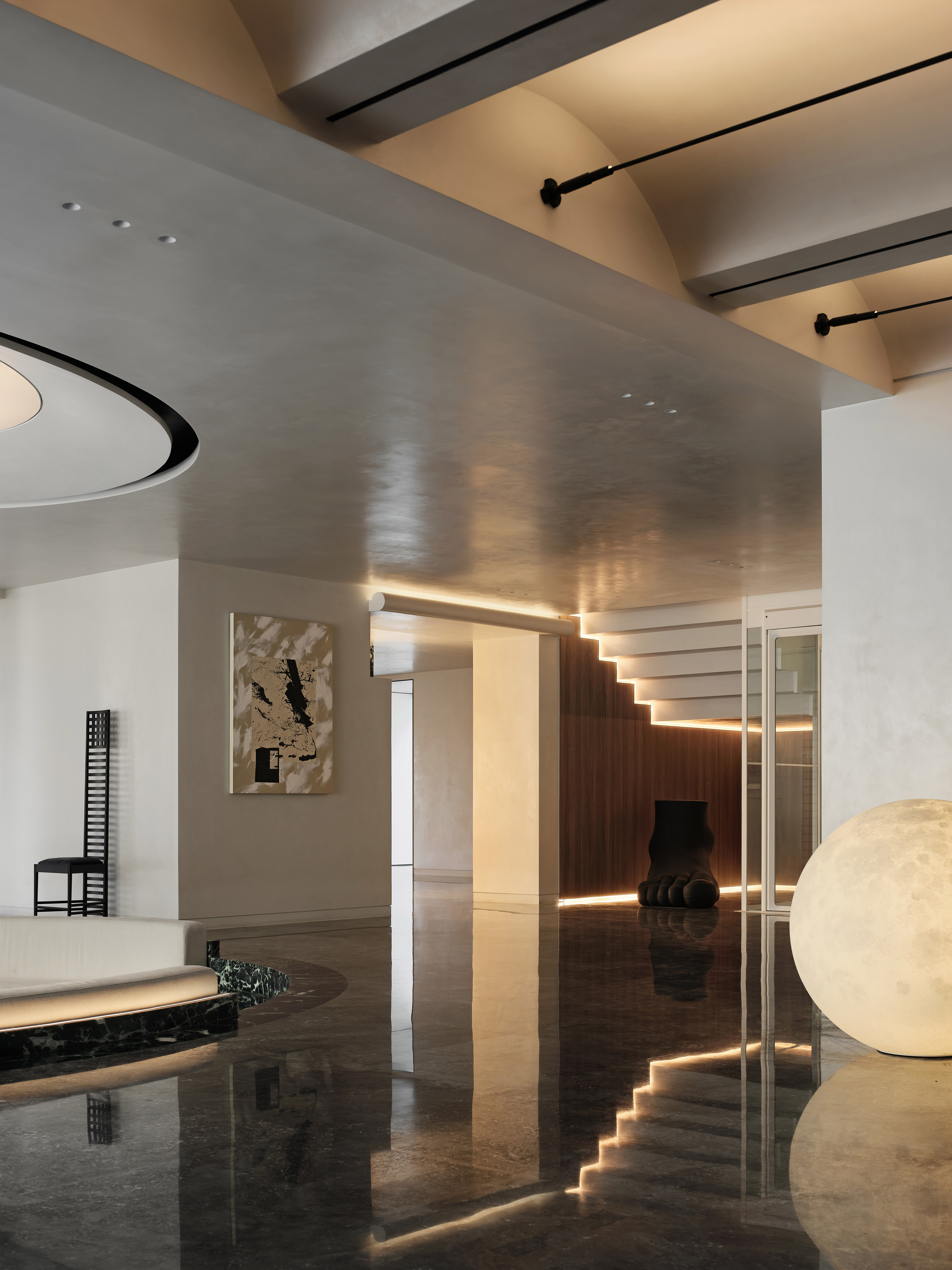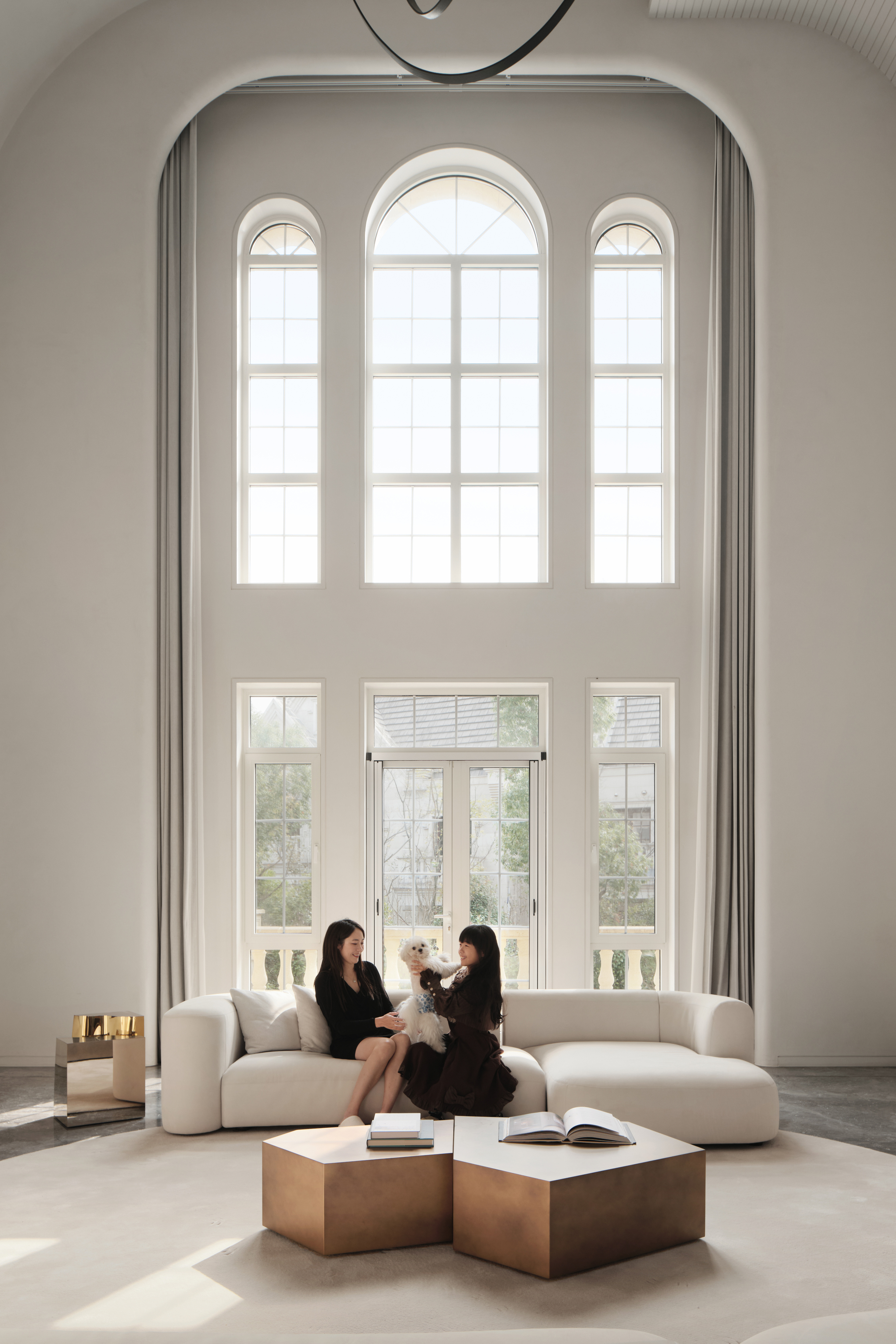 空间意境:曲、直线条勾勒空间轮廓,开放式挑高弧形顶面