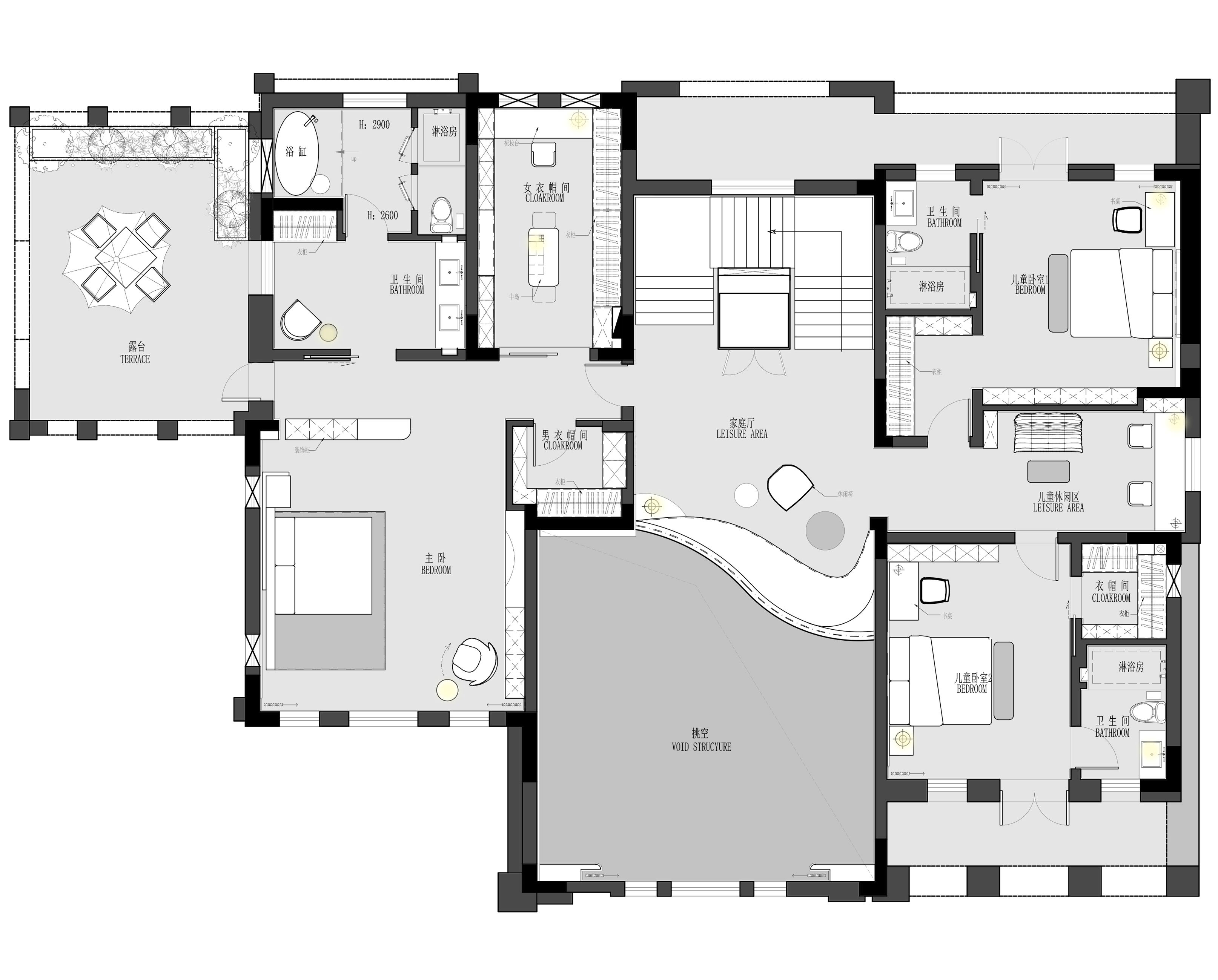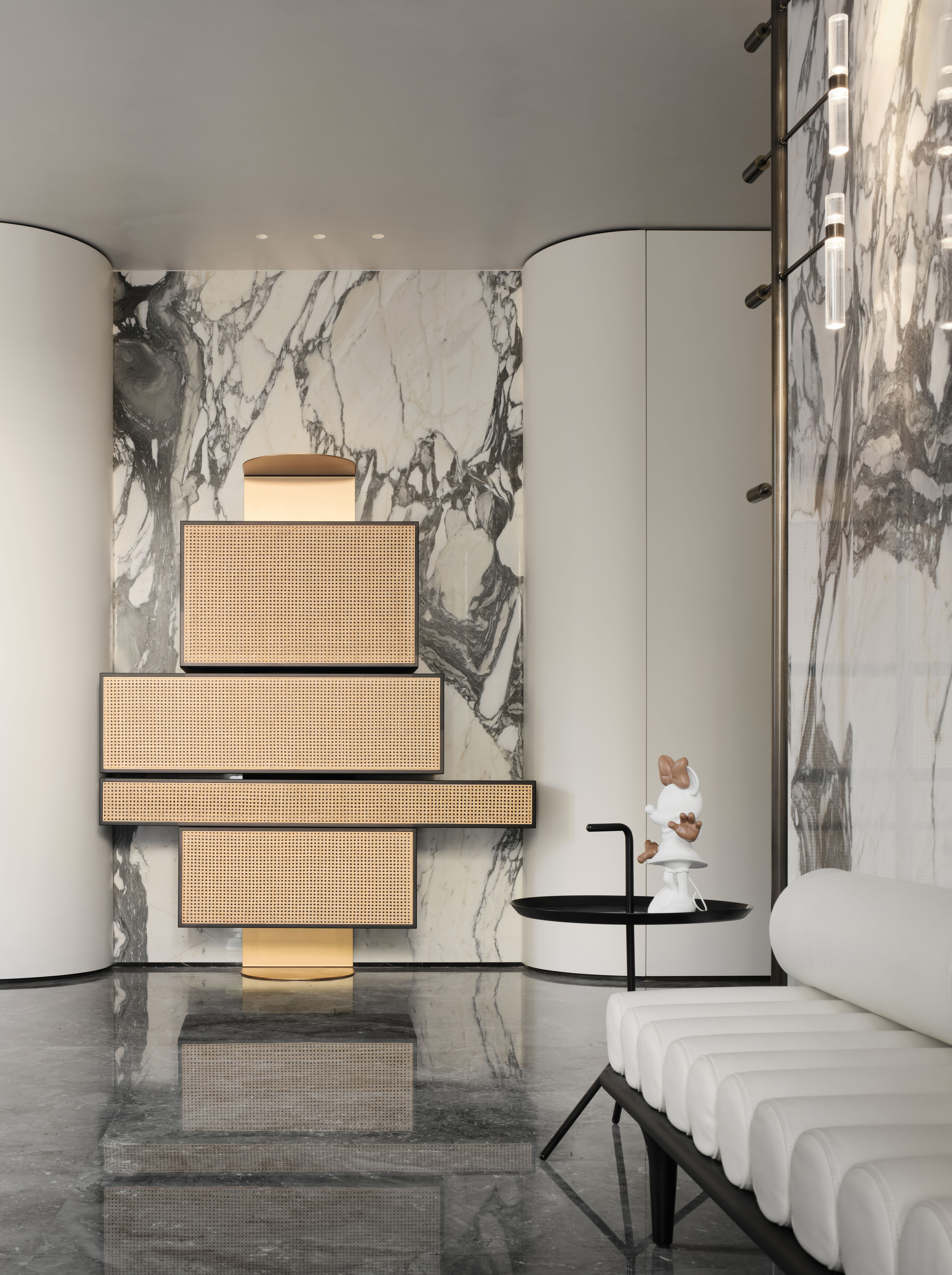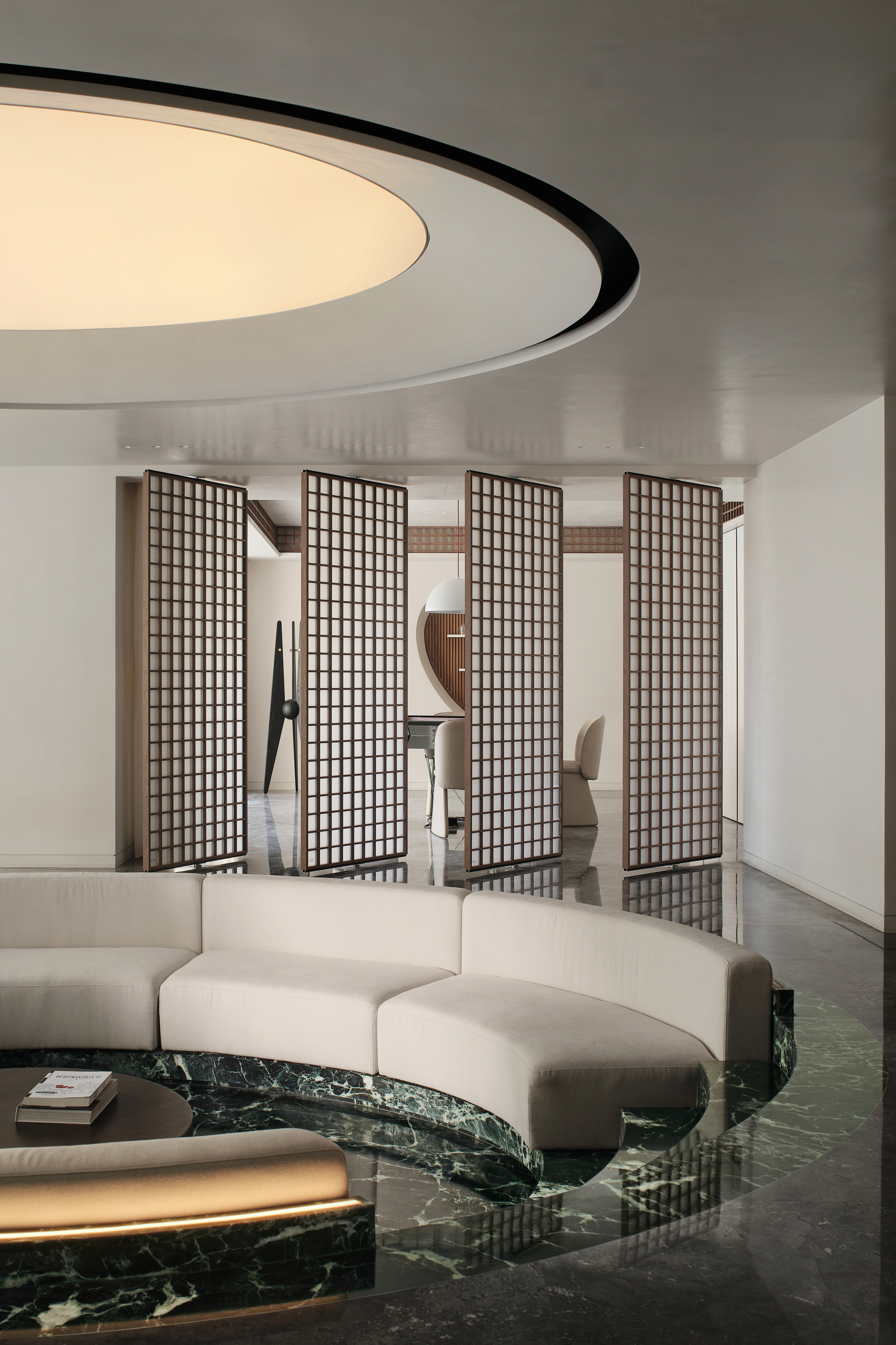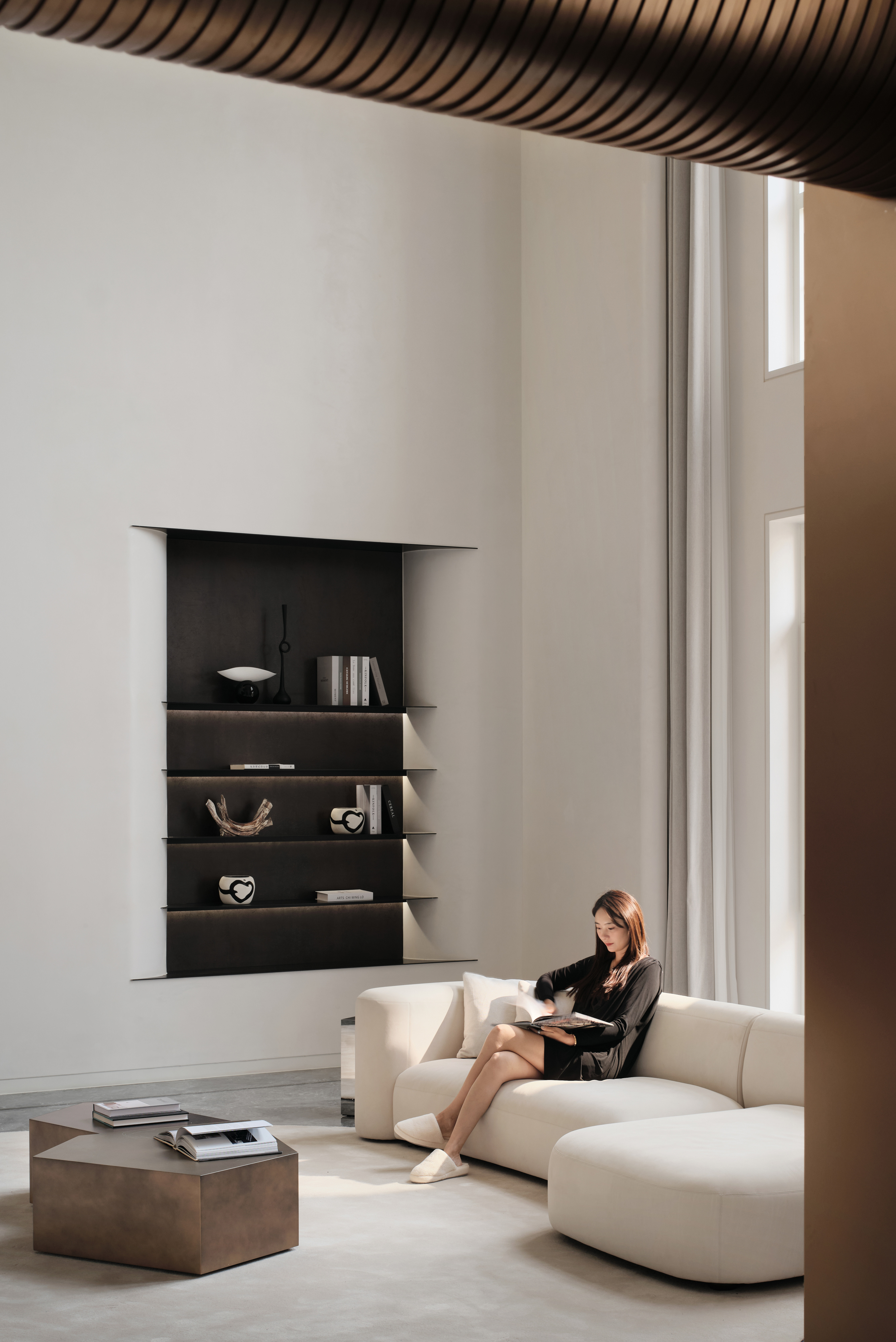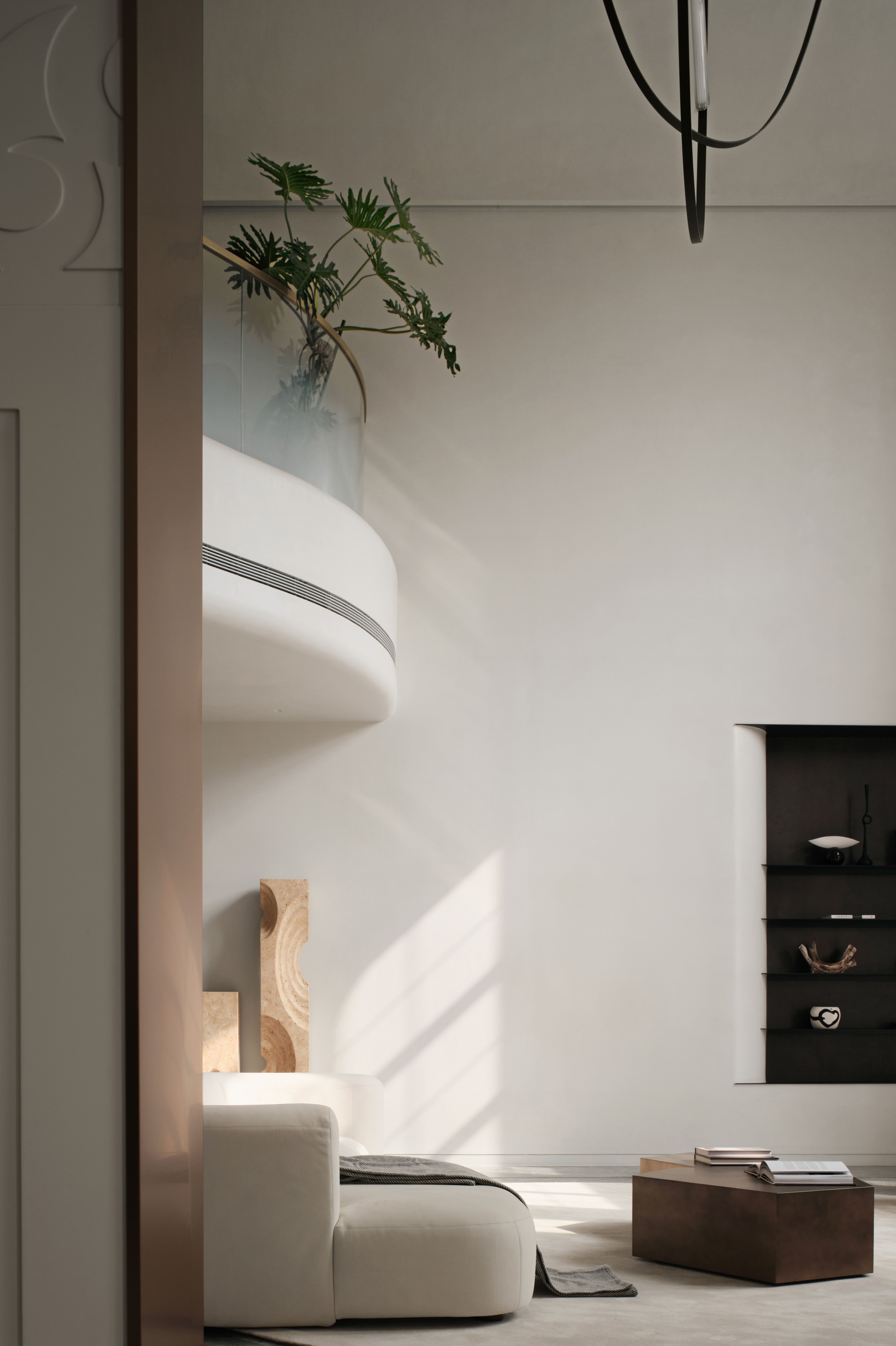 空间意境:曲、直线条勾勒空间轮廓,开放式挑高弧形顶面