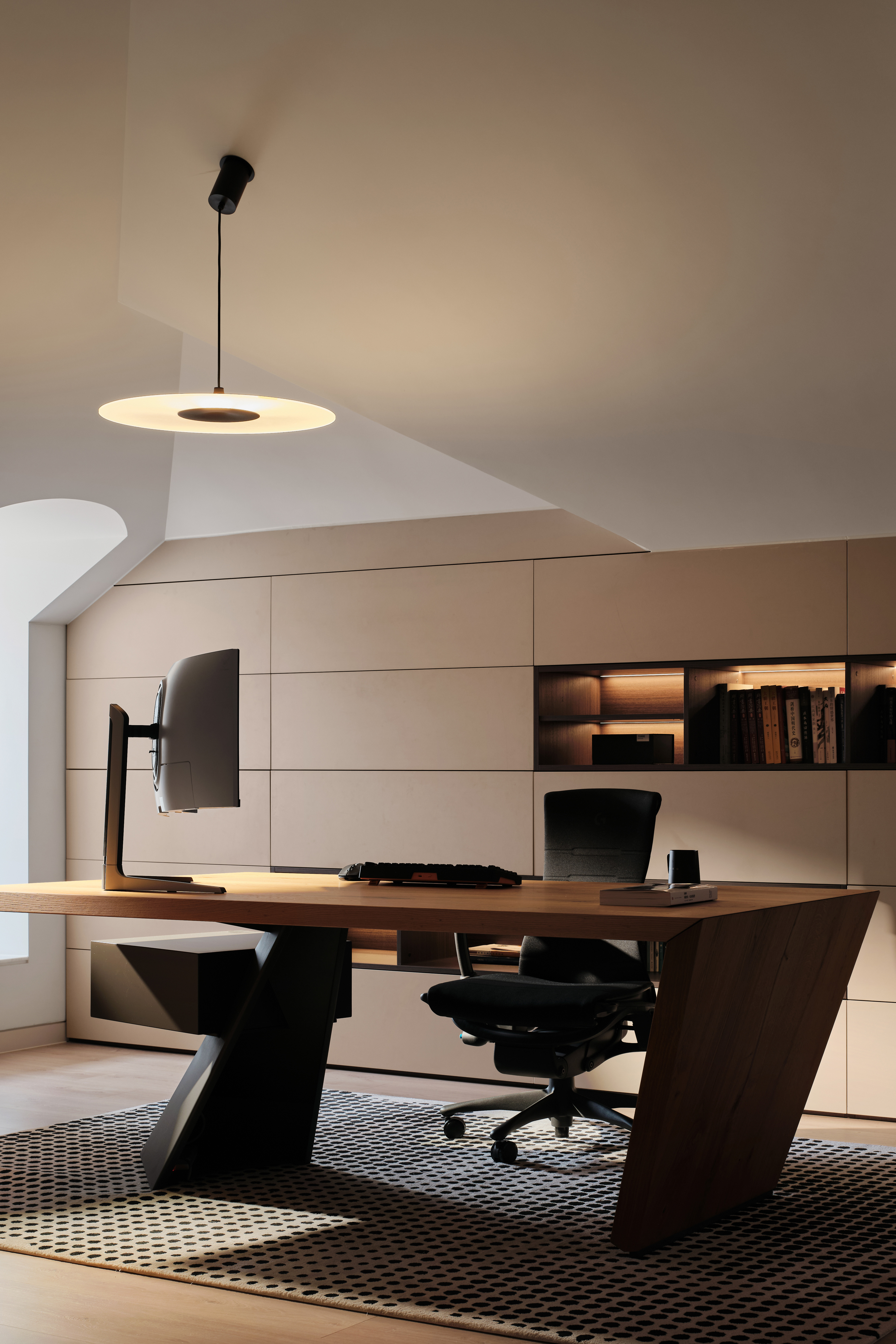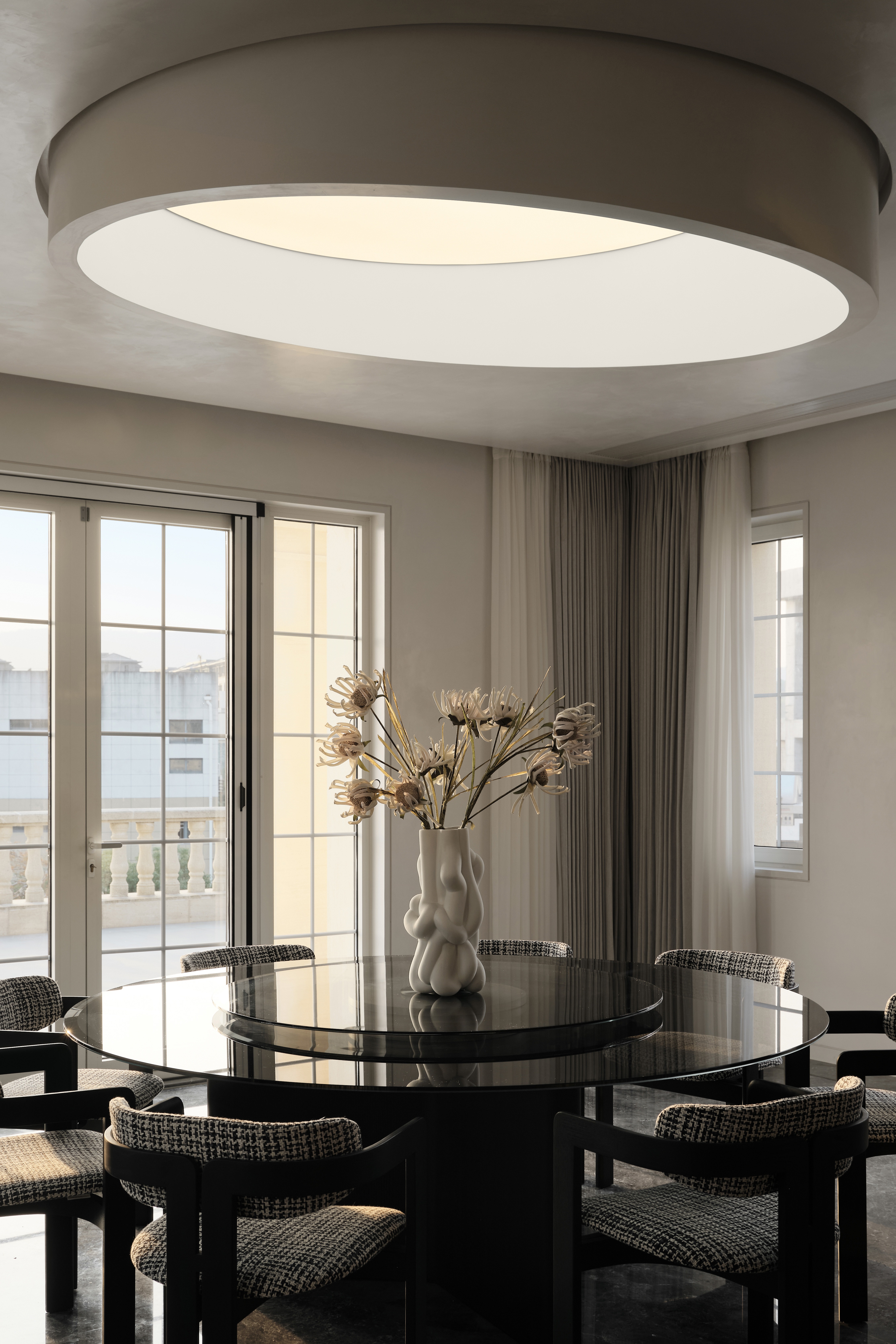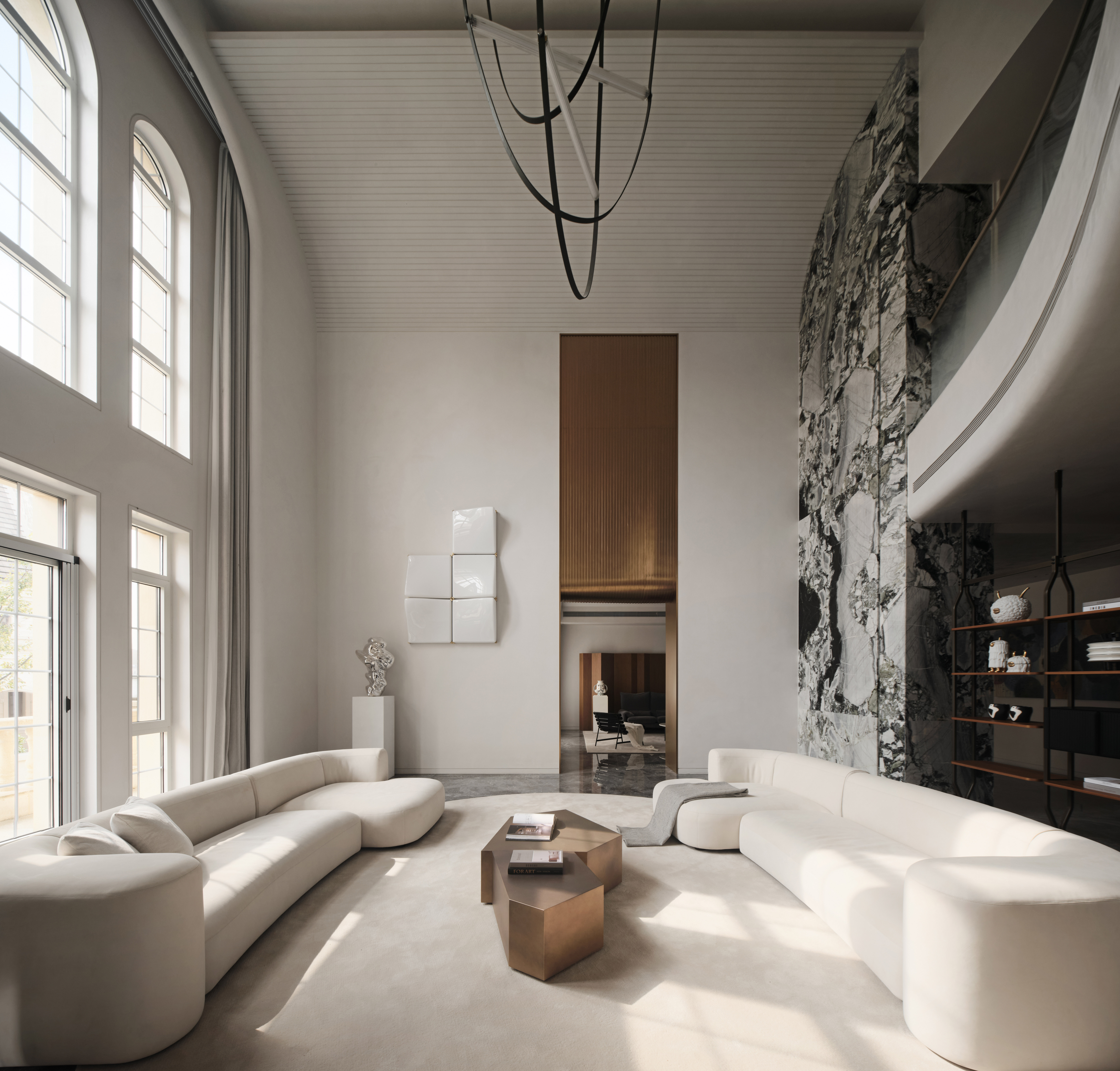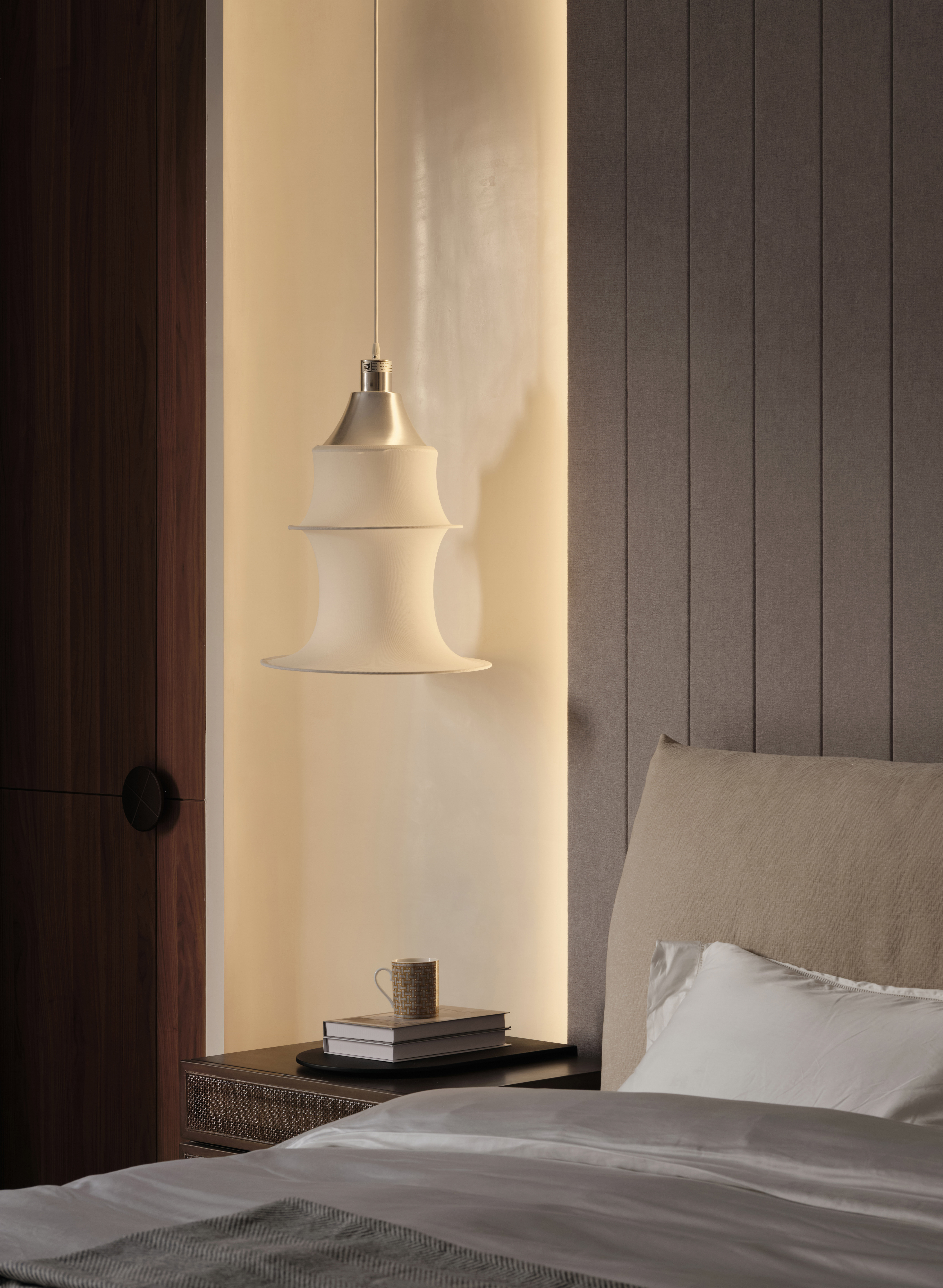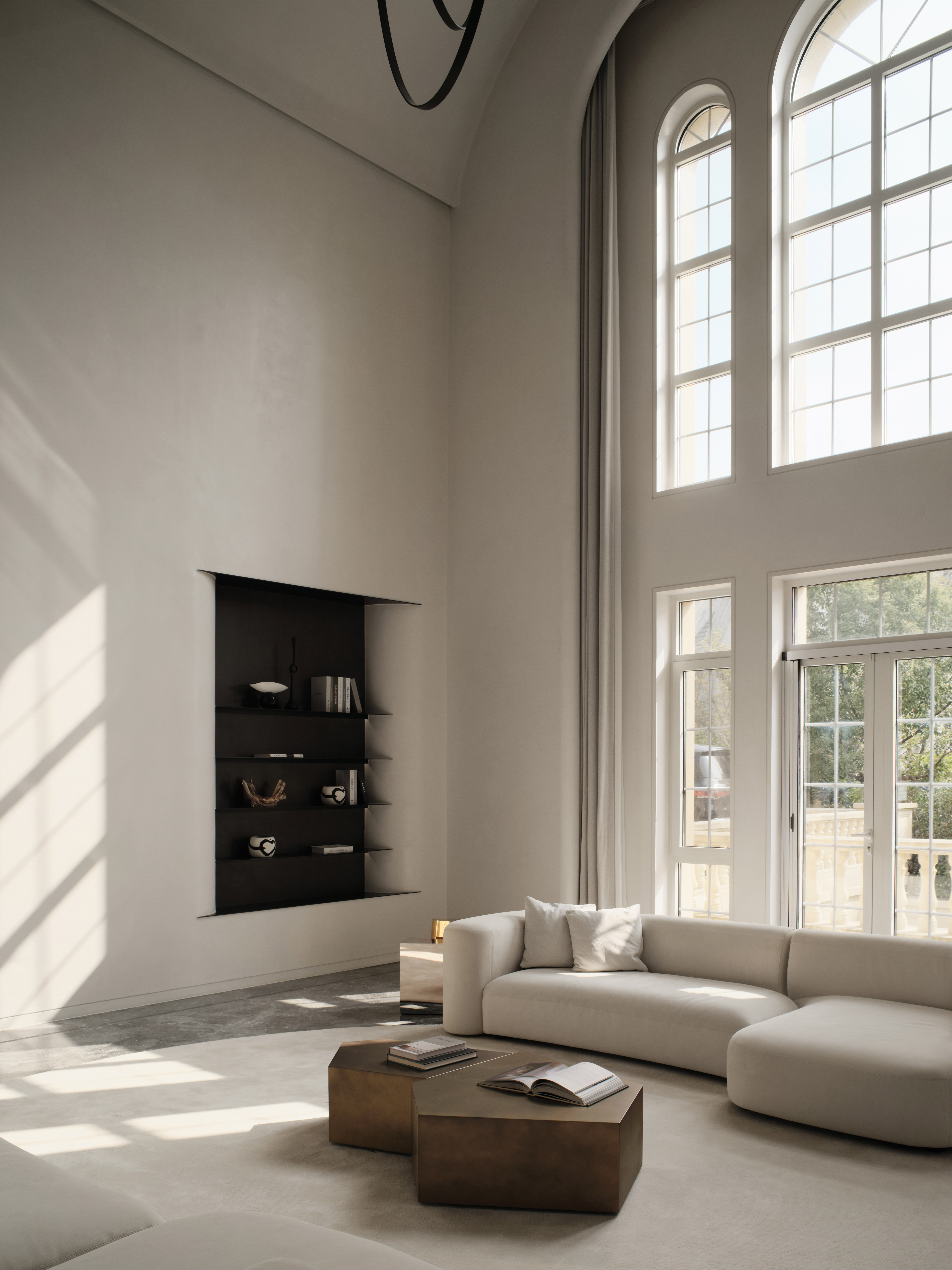 空间意境:曲、直线条勾勒空间轮廓,开放式挑高弧形顶面