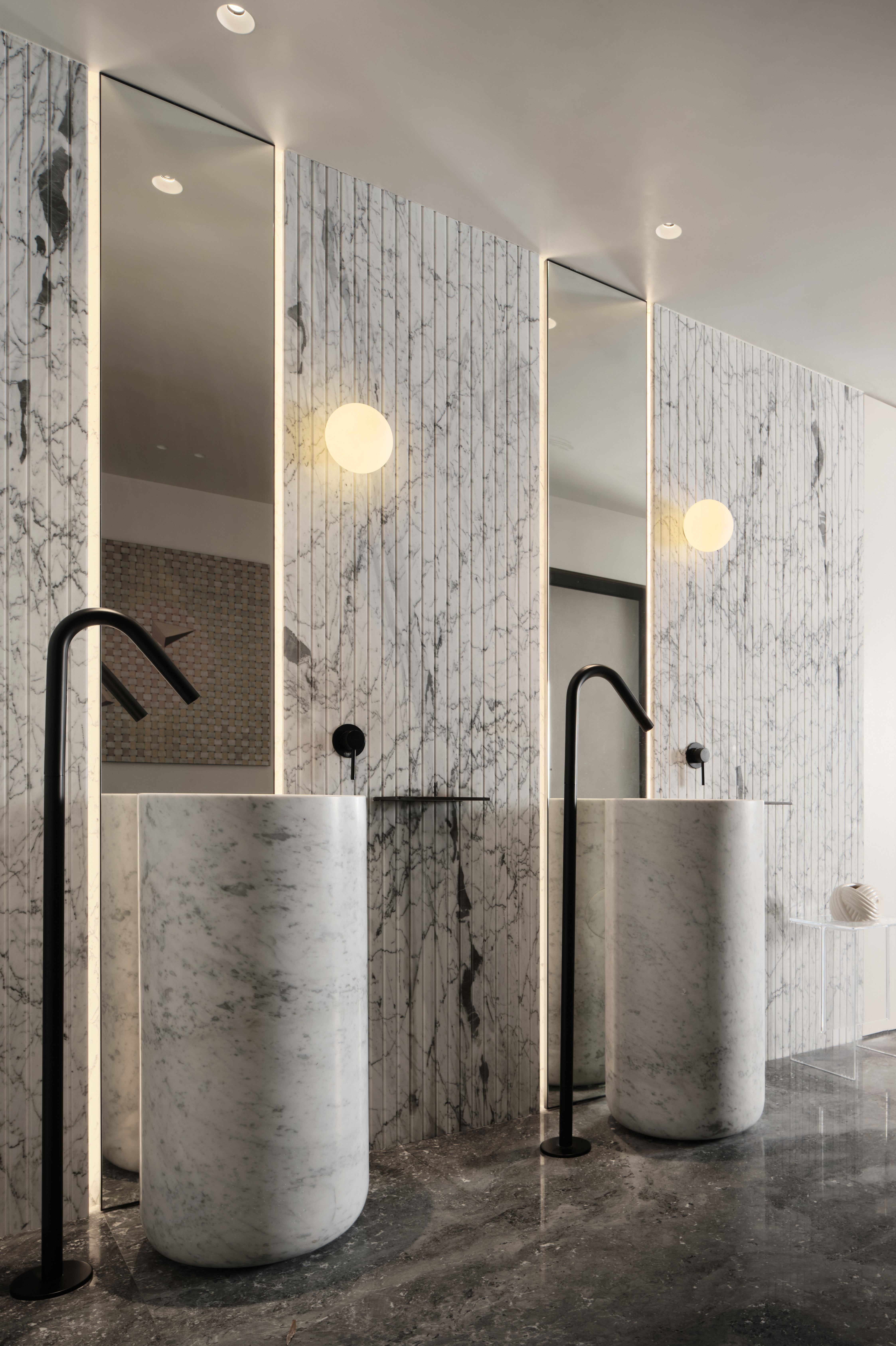 设计选材:墙面设计以艺术涂料为主,必要区域点缀石材及金属板,木饰面等装饰,降低整体造价的同时打造现代简约的设计氛围