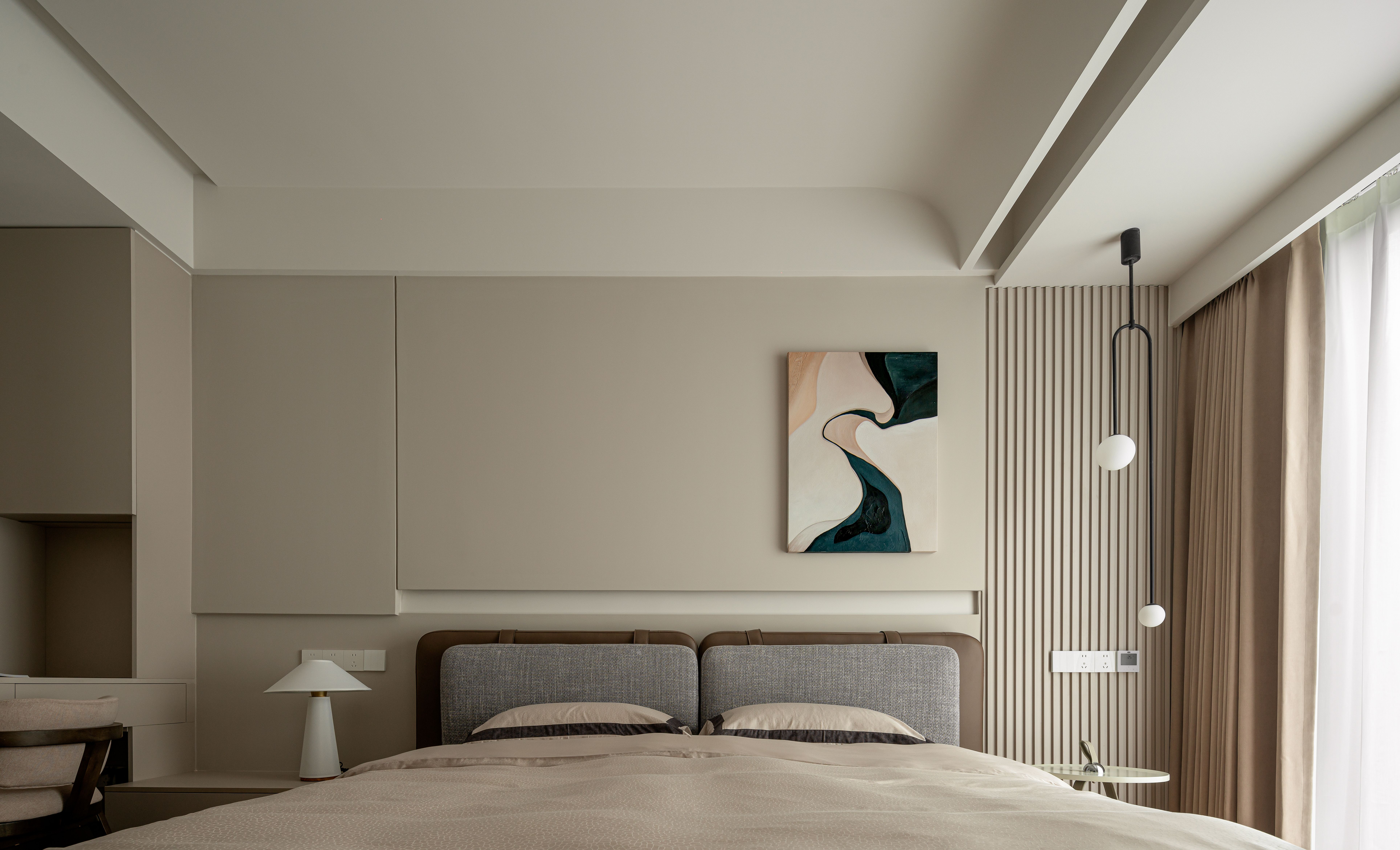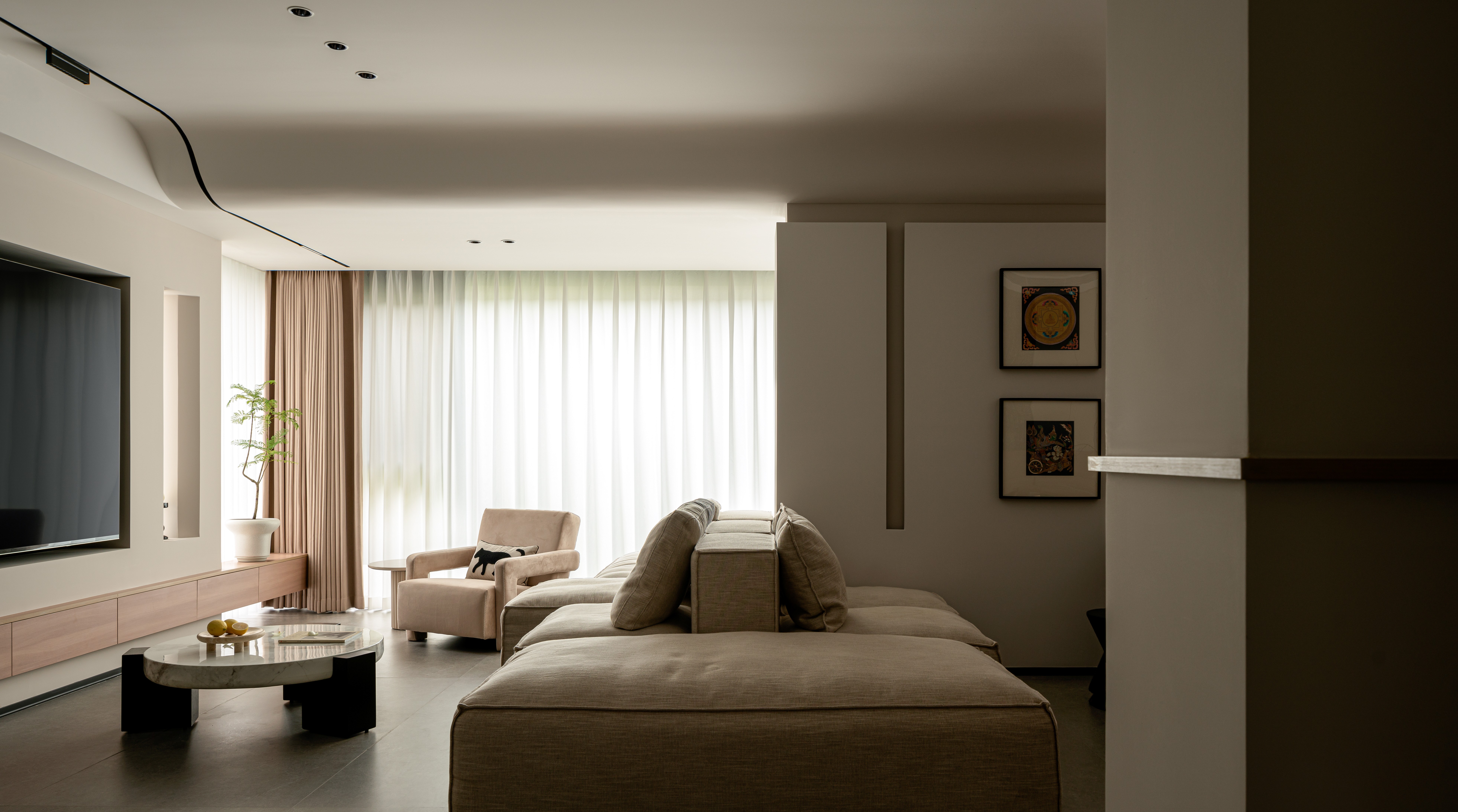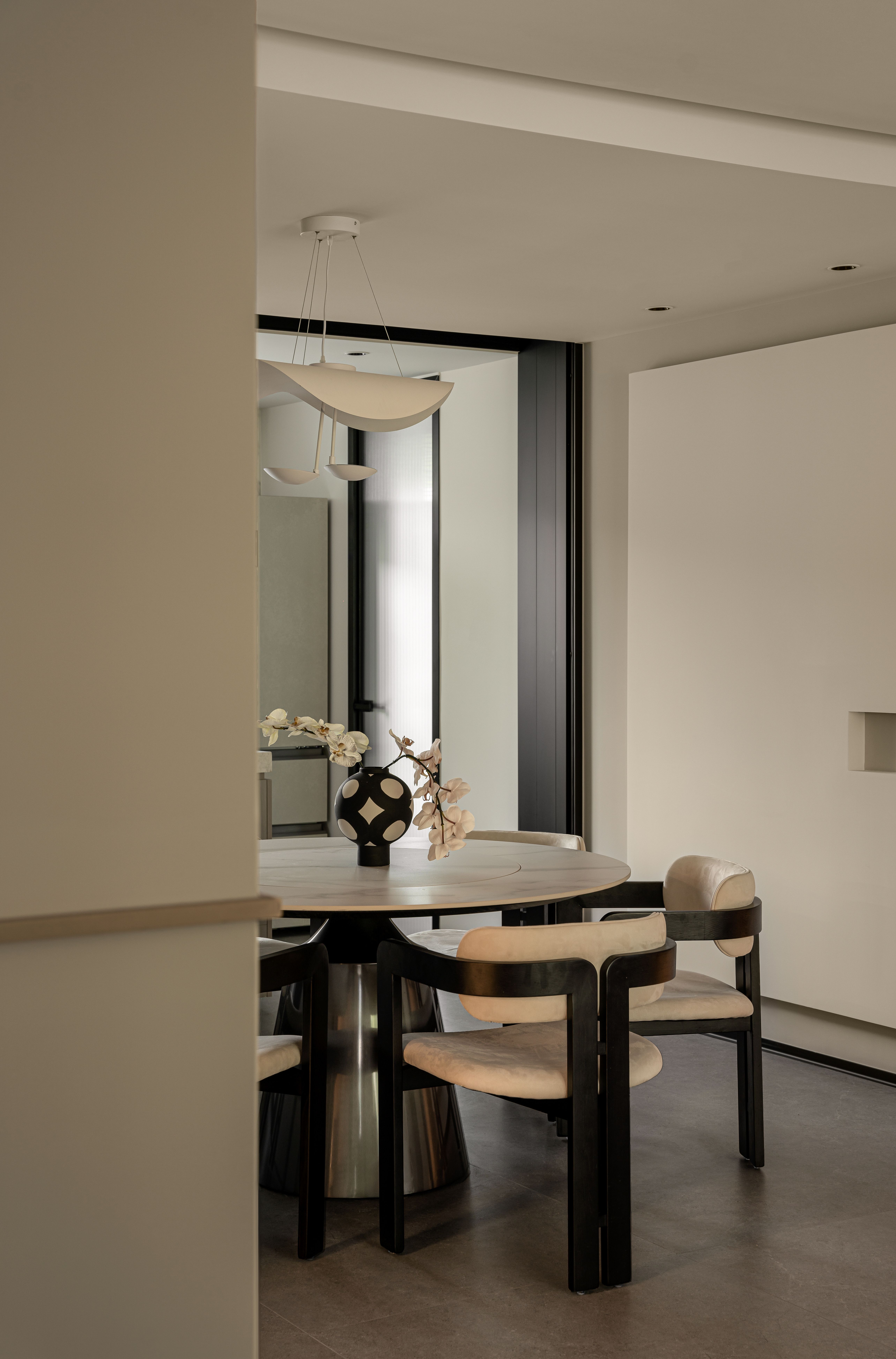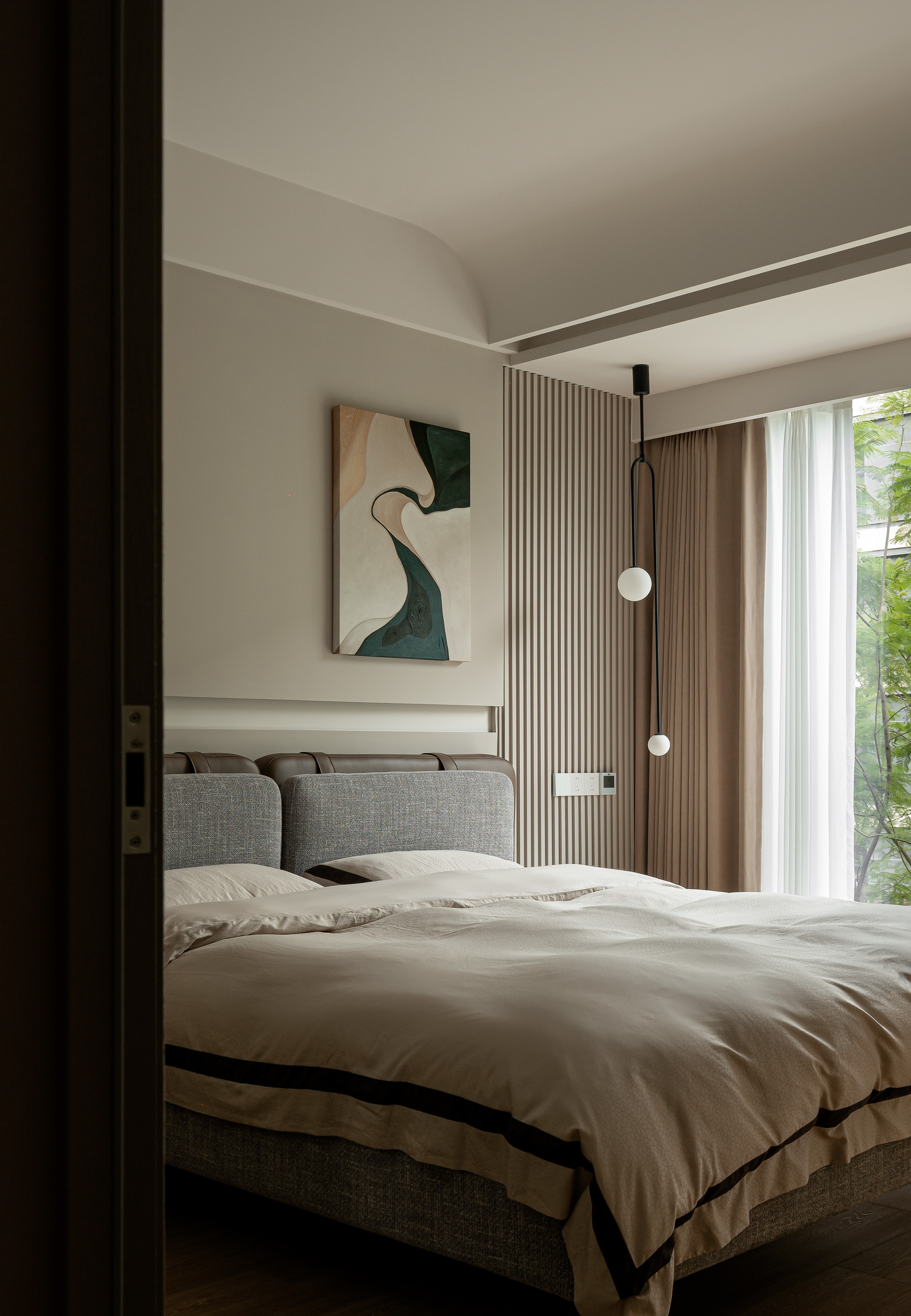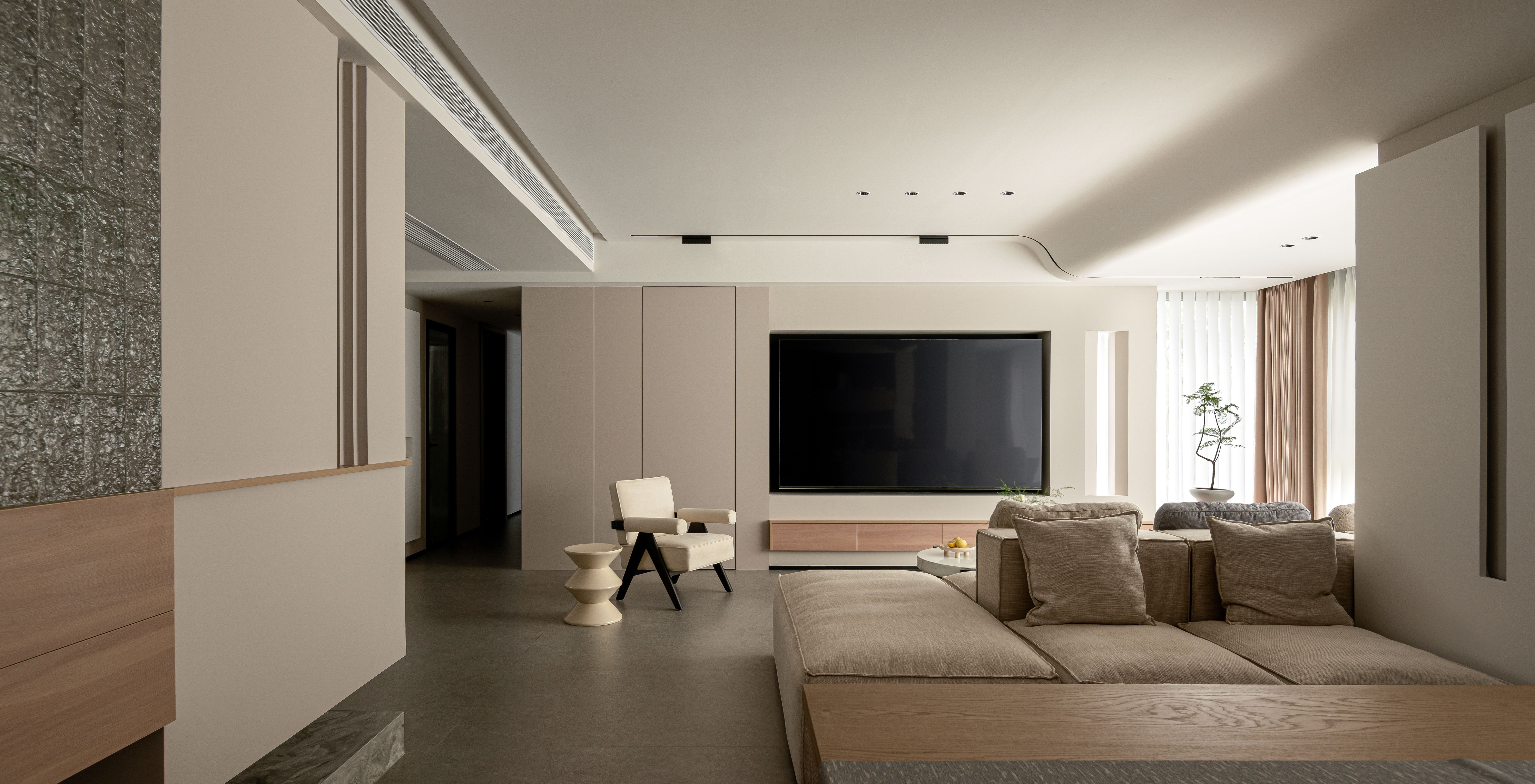 空间融入了景观阳台、书房、茶室、客厅、餐厅开放式一体化设计,让各个空间更加自由开阔。不同空间可以相互交流,让空间可以适应不同生活场景的关系变化,使空间满足功能化的同时更能实现情绪上的共鸣,能引导业主更好的生活方式。风格环境上主要以极简自然为主结合窗外的景观与光线进行一些引导,使其与室内与室外相互呼应,在融入一些东方的元素,让业主喜欢的东西方文化相融合,形成独具业主自身文化气息的家