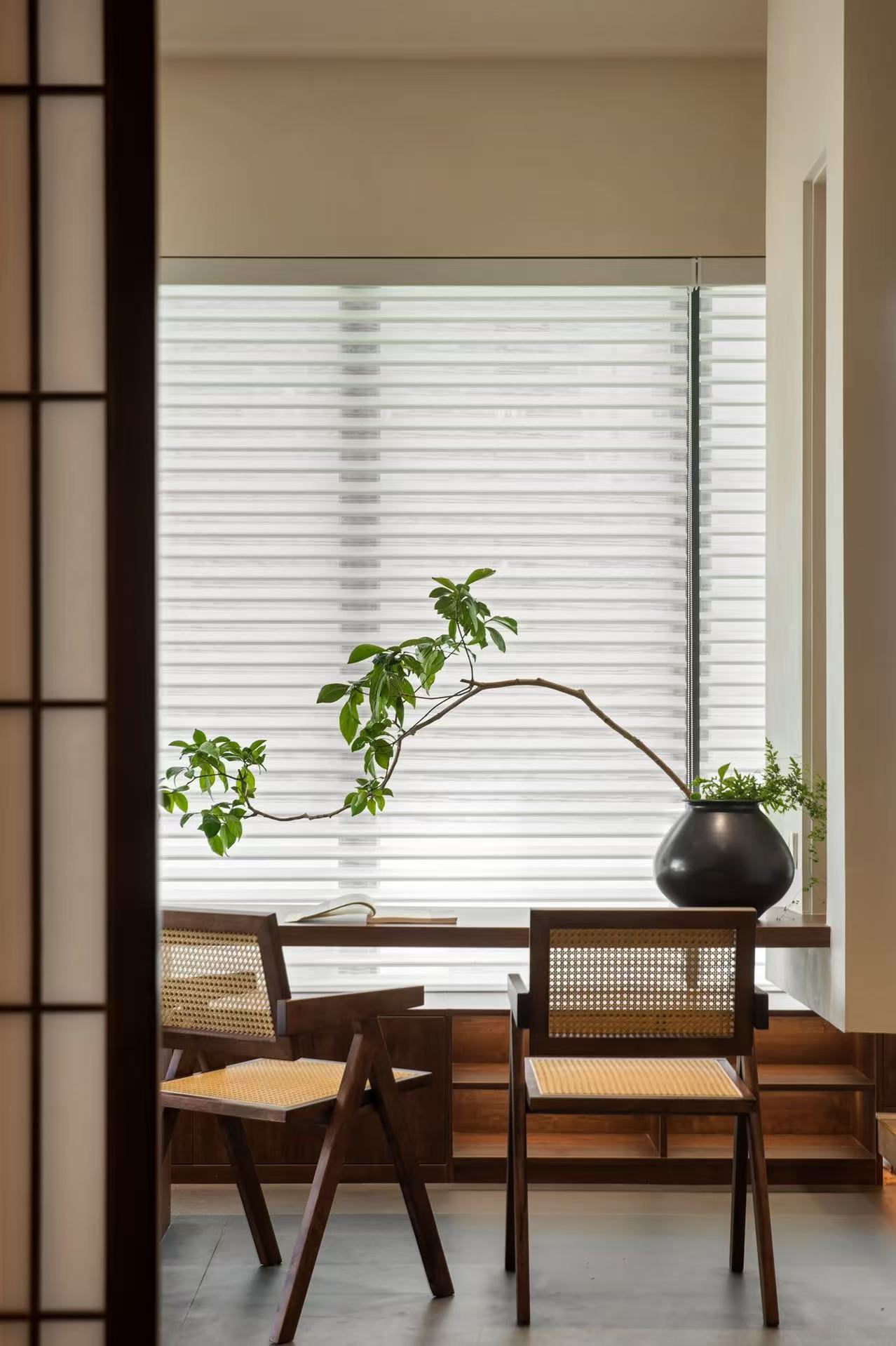 在装饰细节方面,精心挑选了具有禅意的元素。如大厅角落摆放的~~造型其静谧祥和的神态为整个空间奠定了空灵的基调;几株形态优雅的大型绿植,如散尾葵、龟背竹等,不仅增添了生机与活力,更寓意着生命的顽强与不息;墙壁上~~