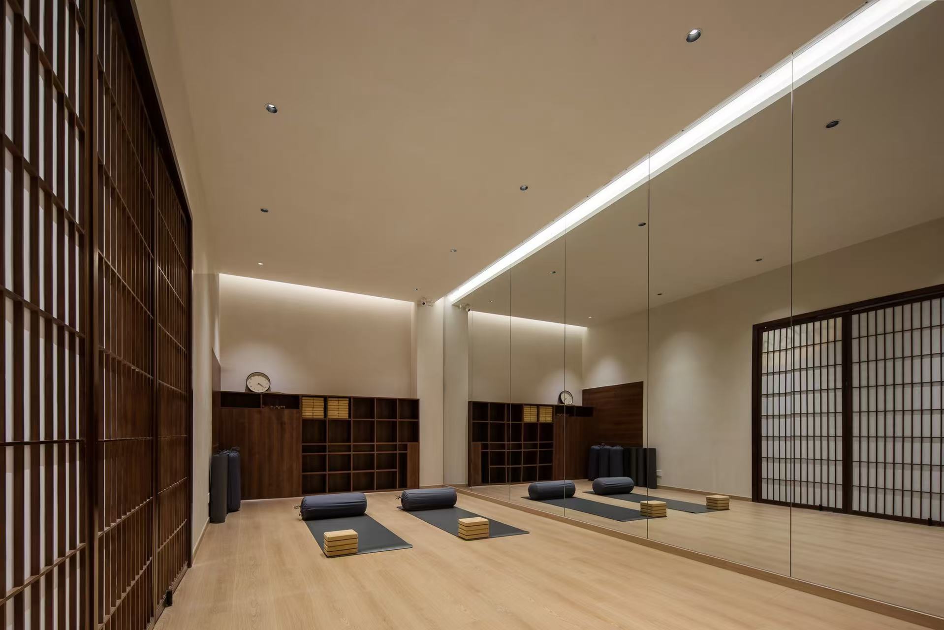空间布局:空间布局上,秉持着开阔与通透的原则。练习大厅挑高设计,减少隔断,使空间更显大气,让习练者在其中能够自由伸展身心,毫无局促之感。