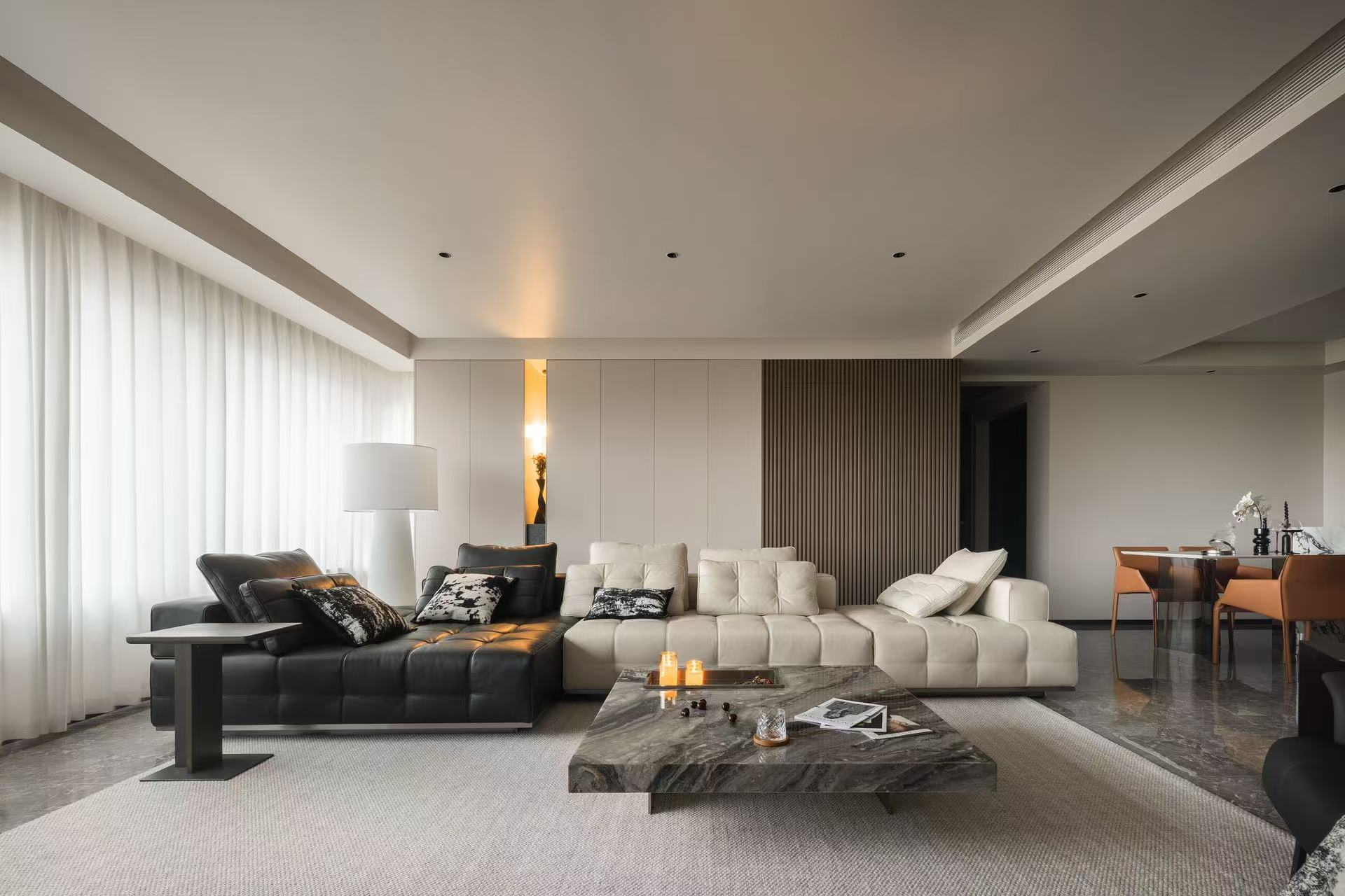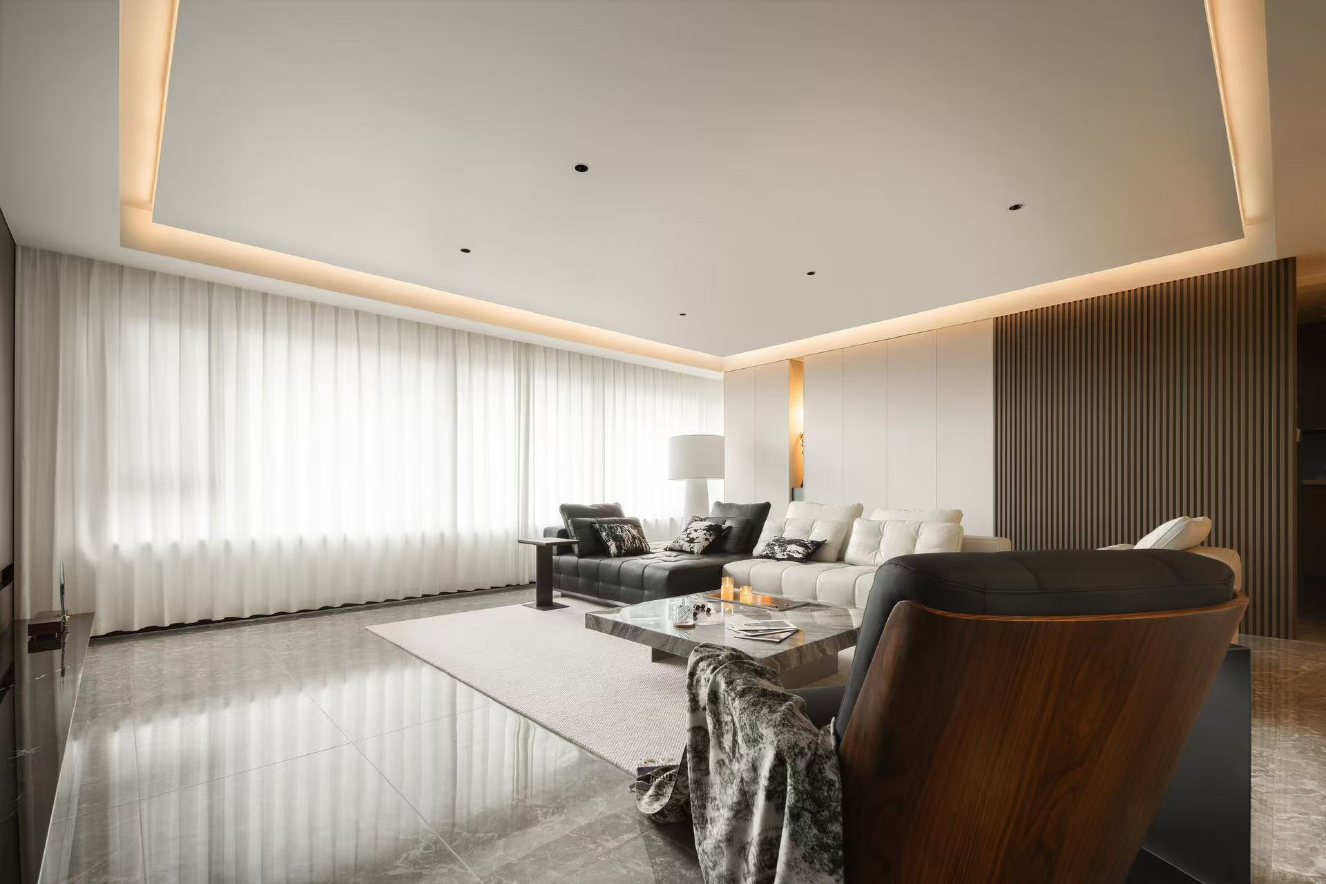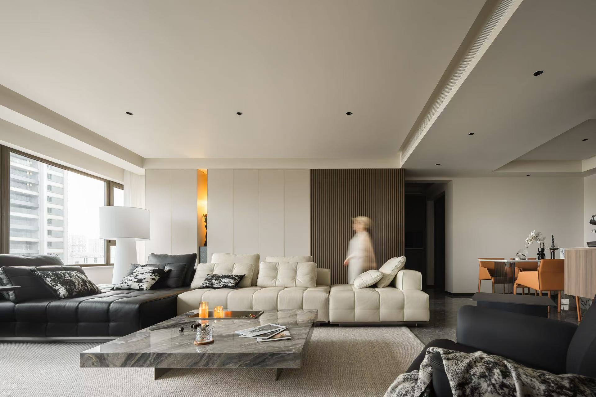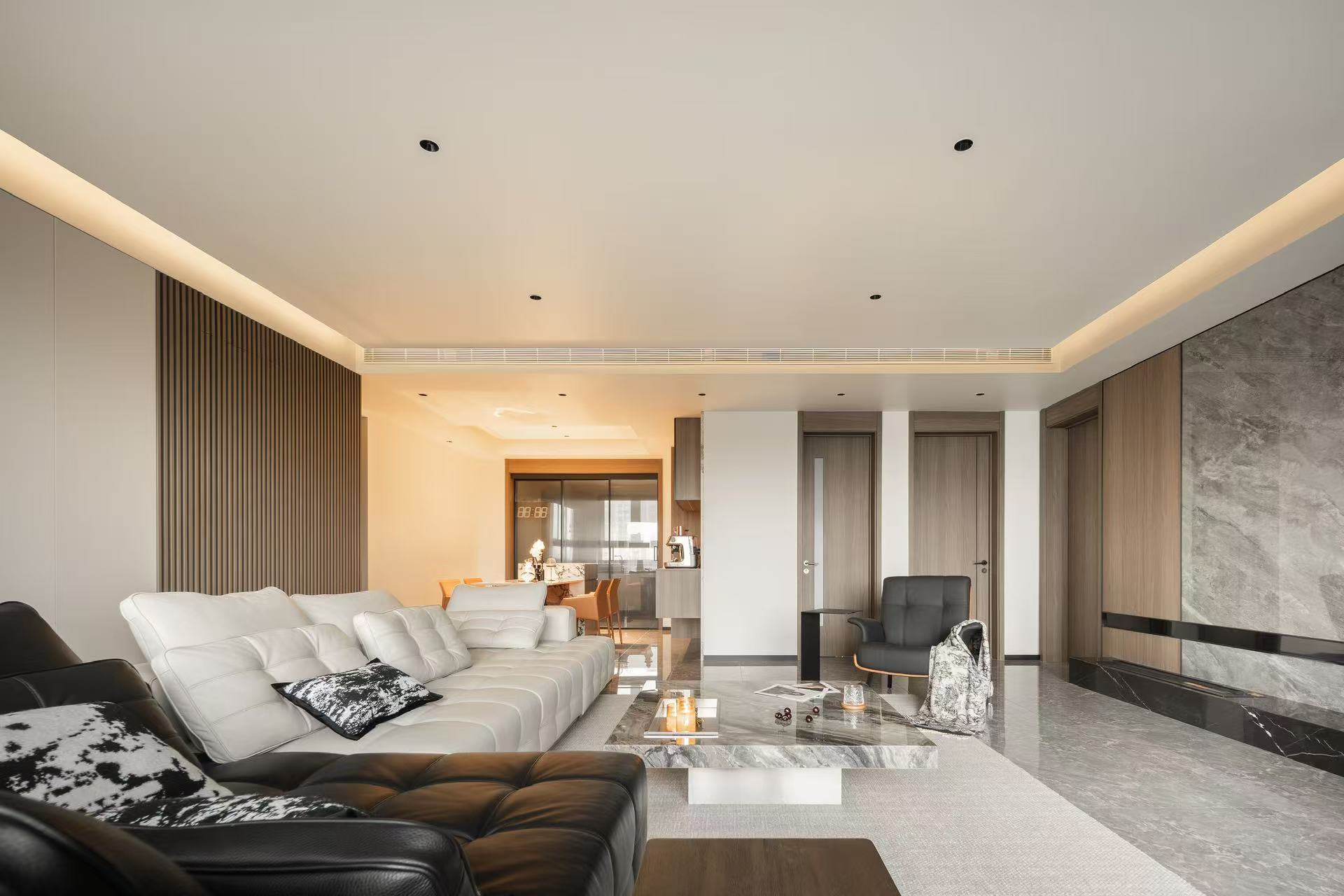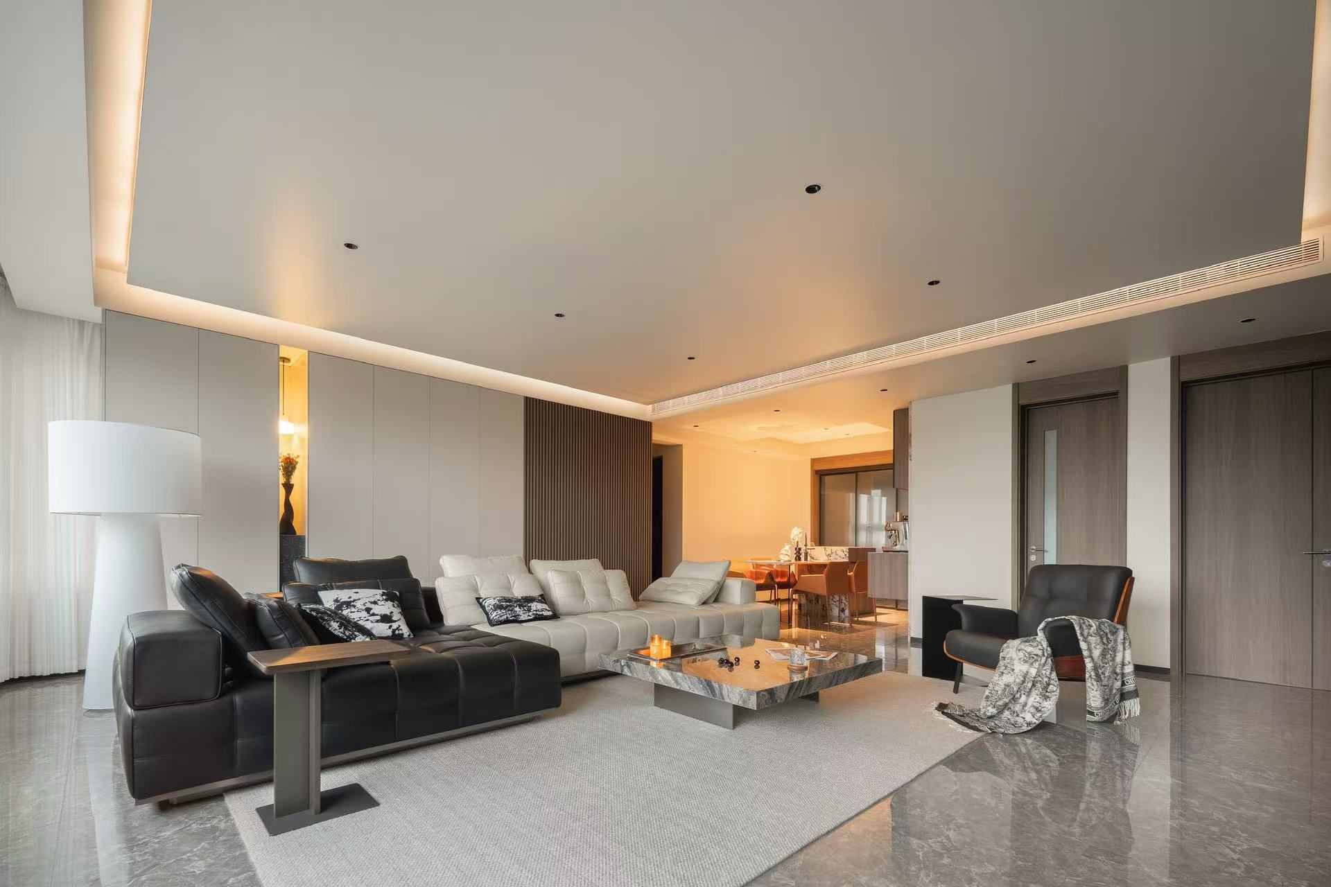 客厅整体采用多动线设计,以保证空间感。