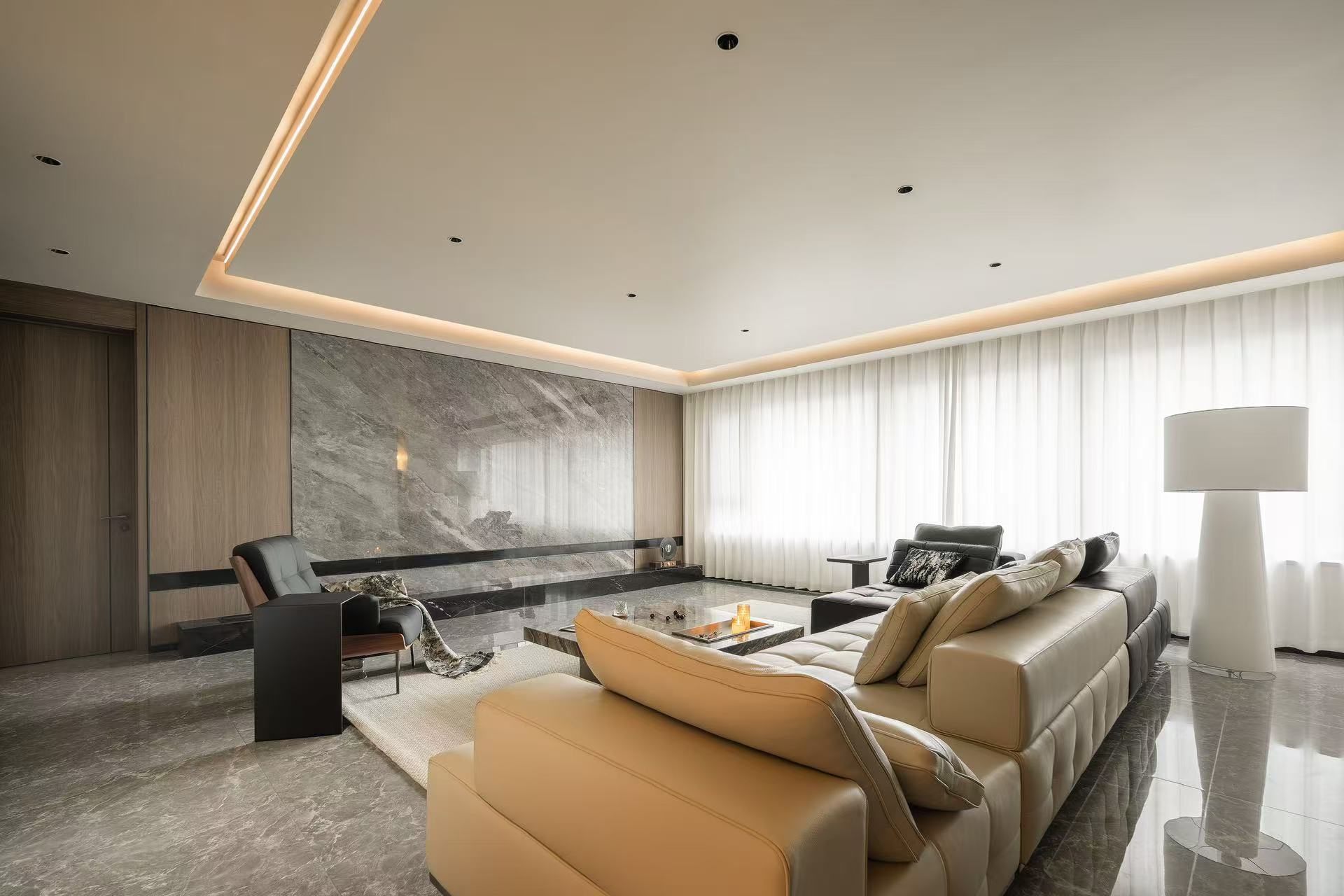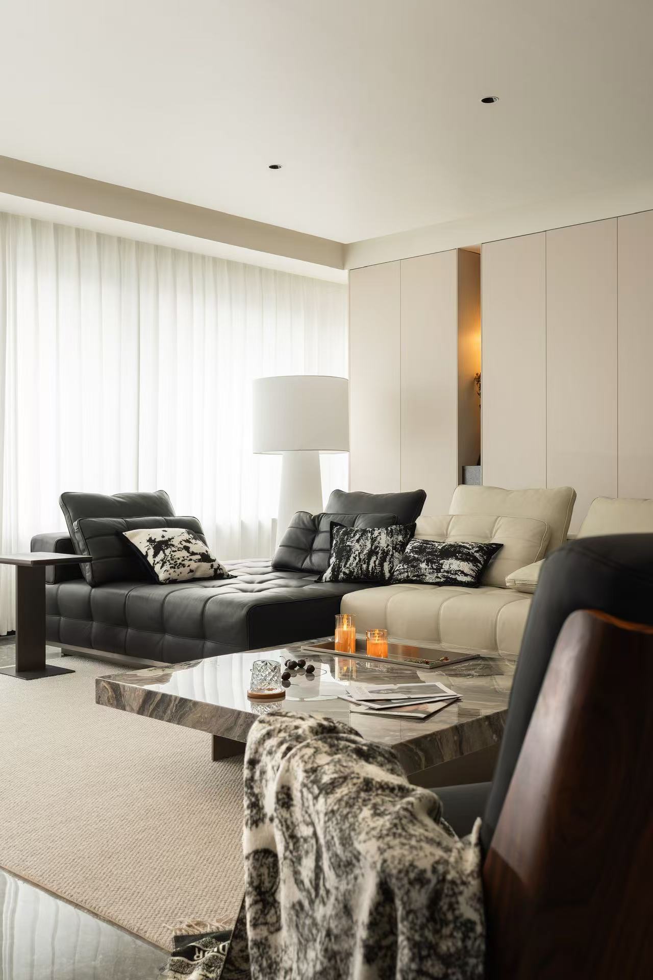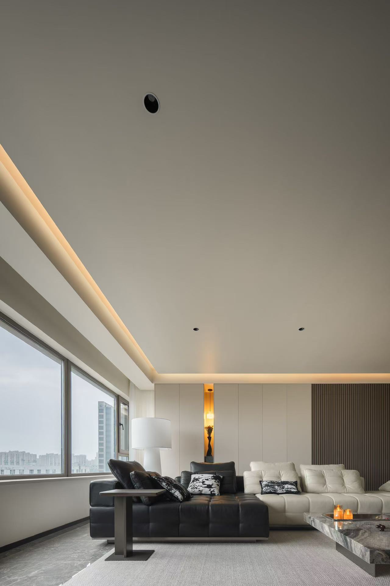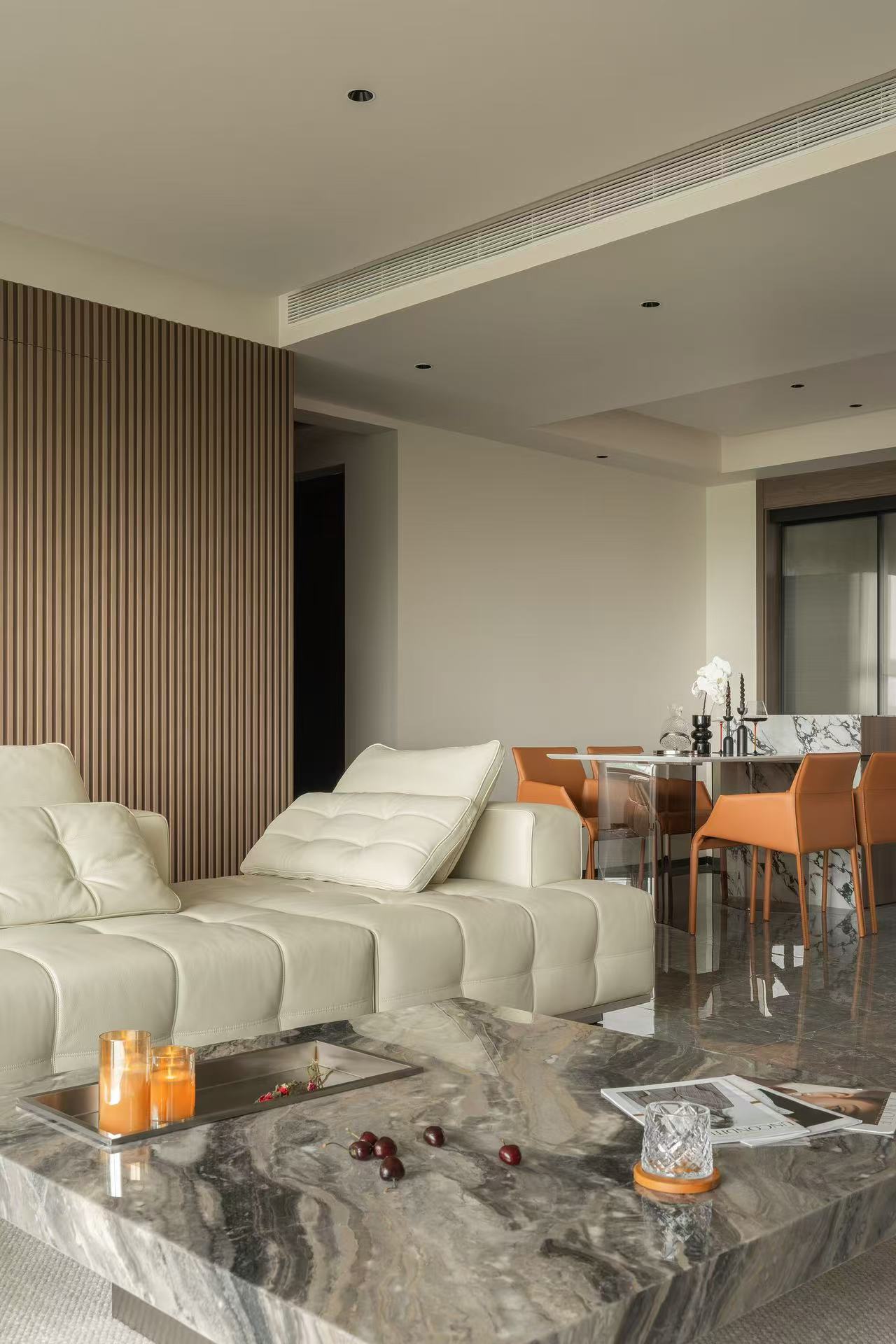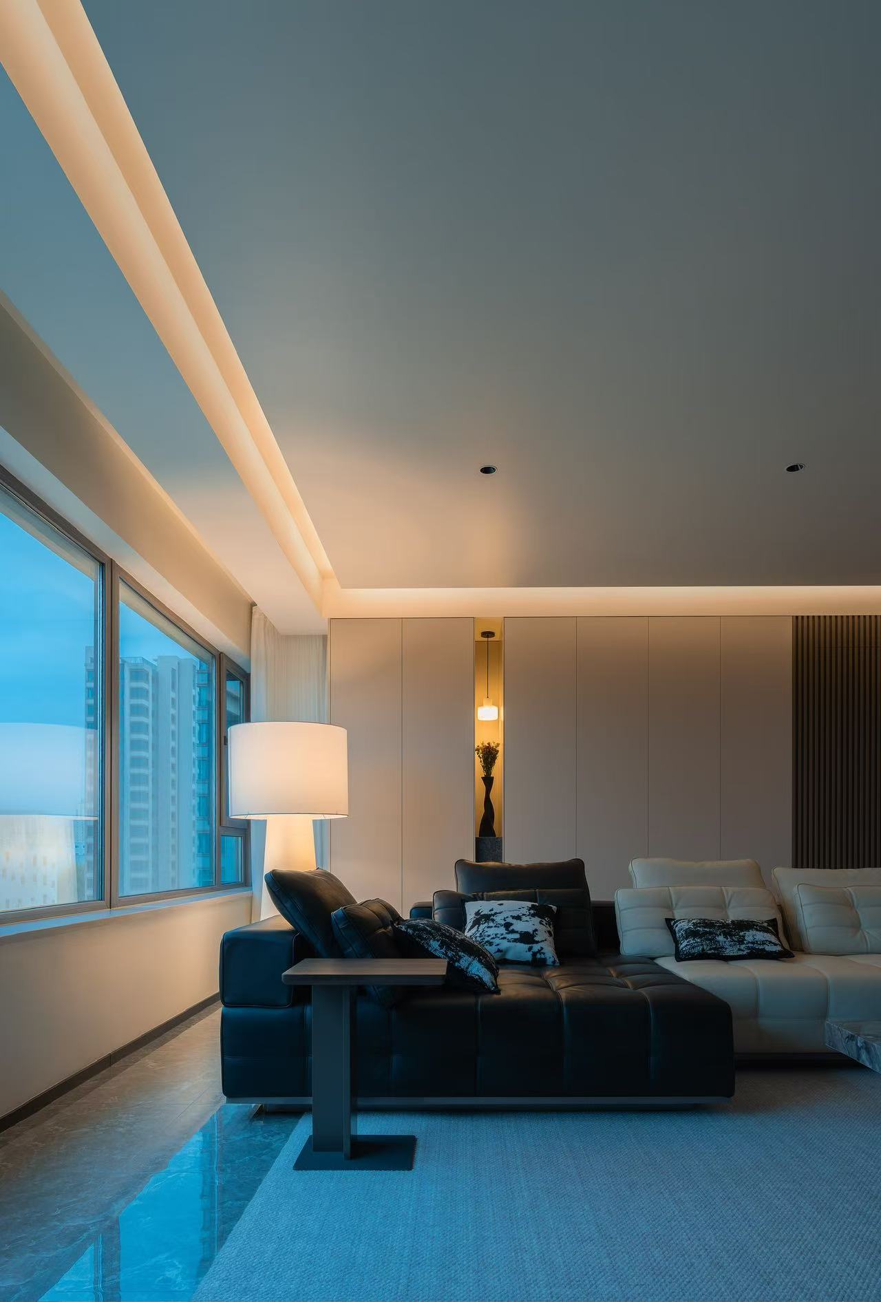 客厅整体采用多动线设计,以保证空间感。