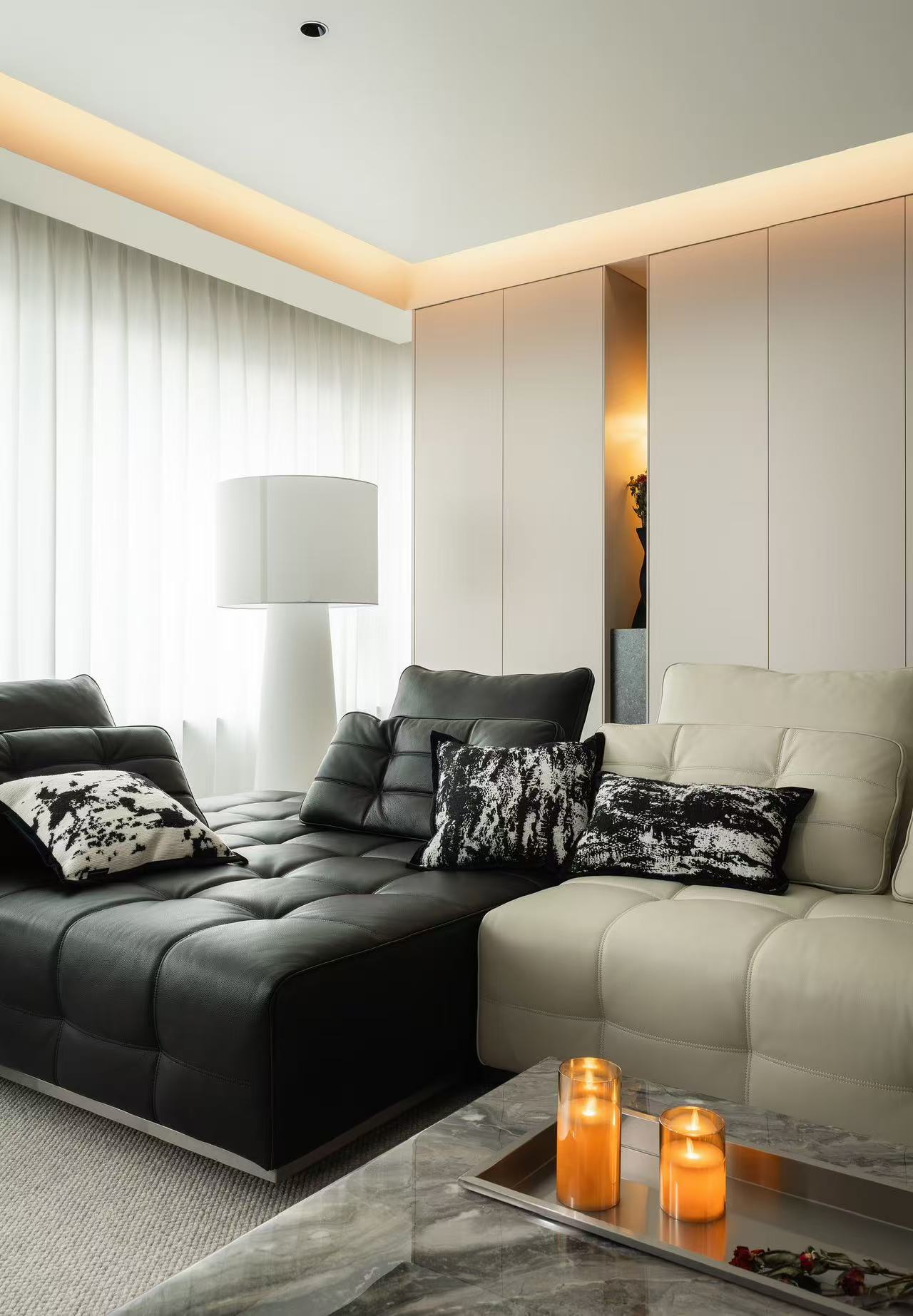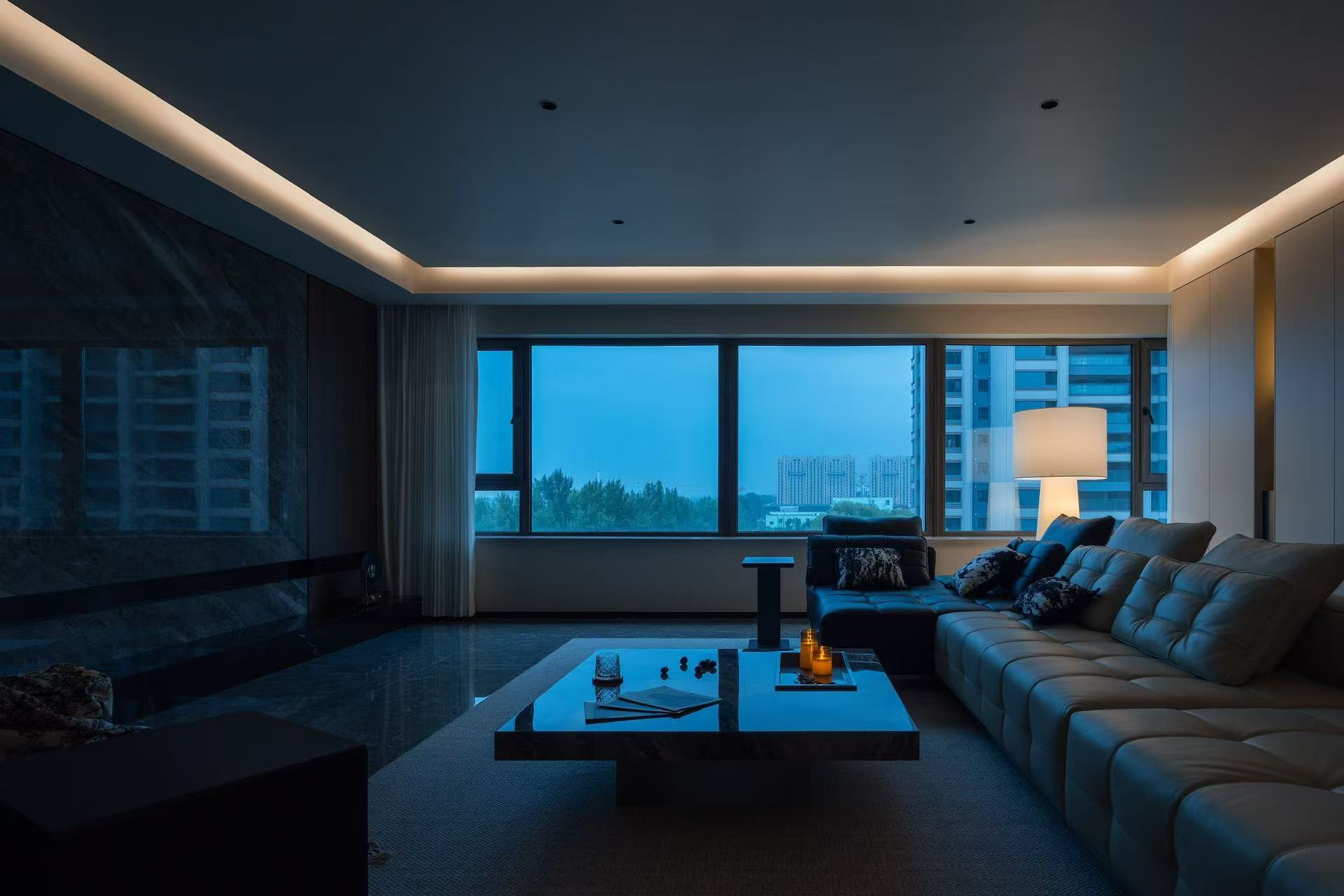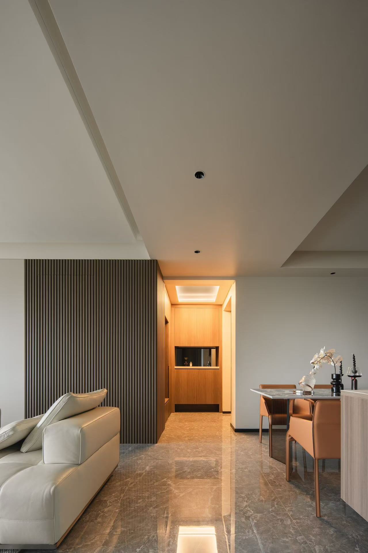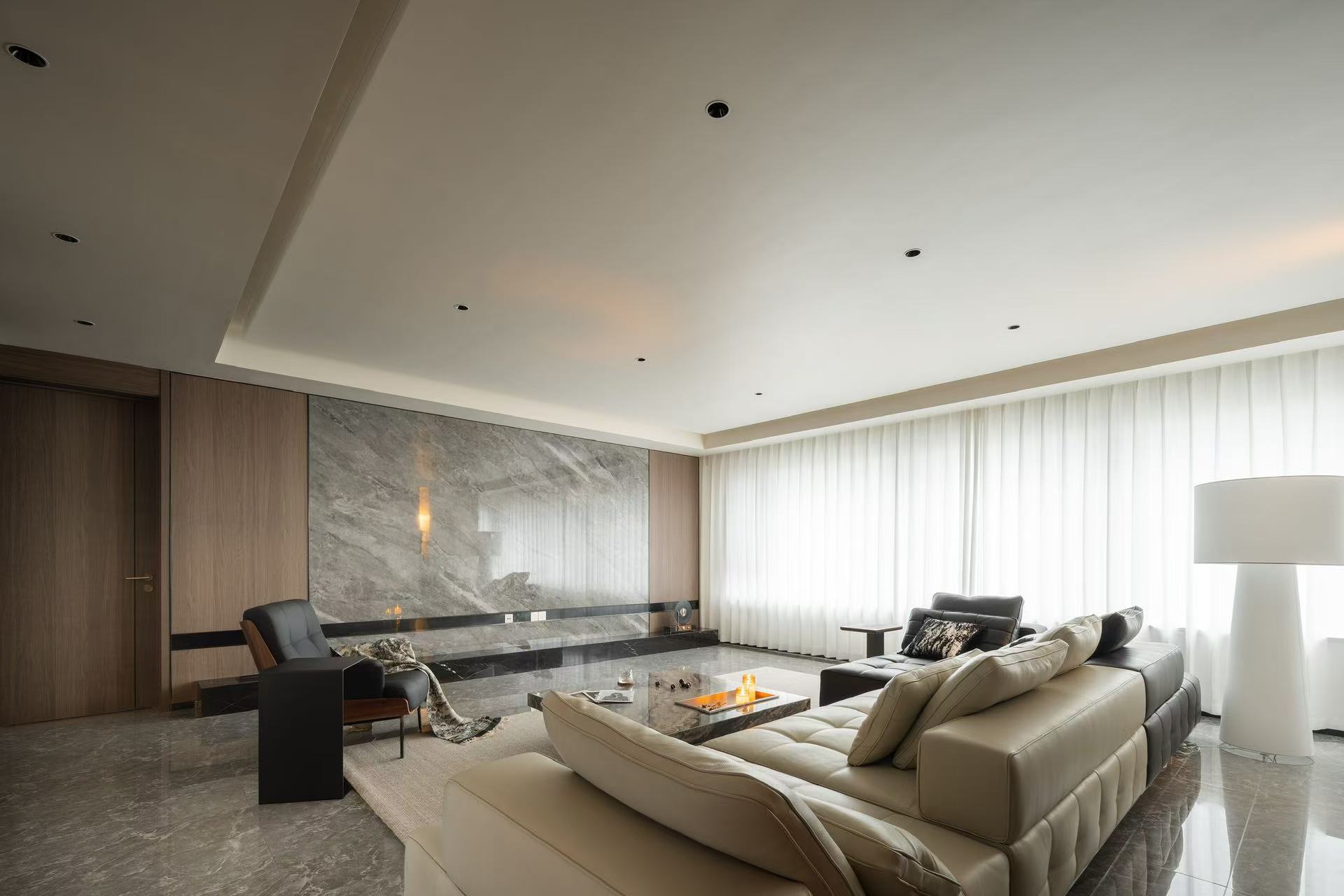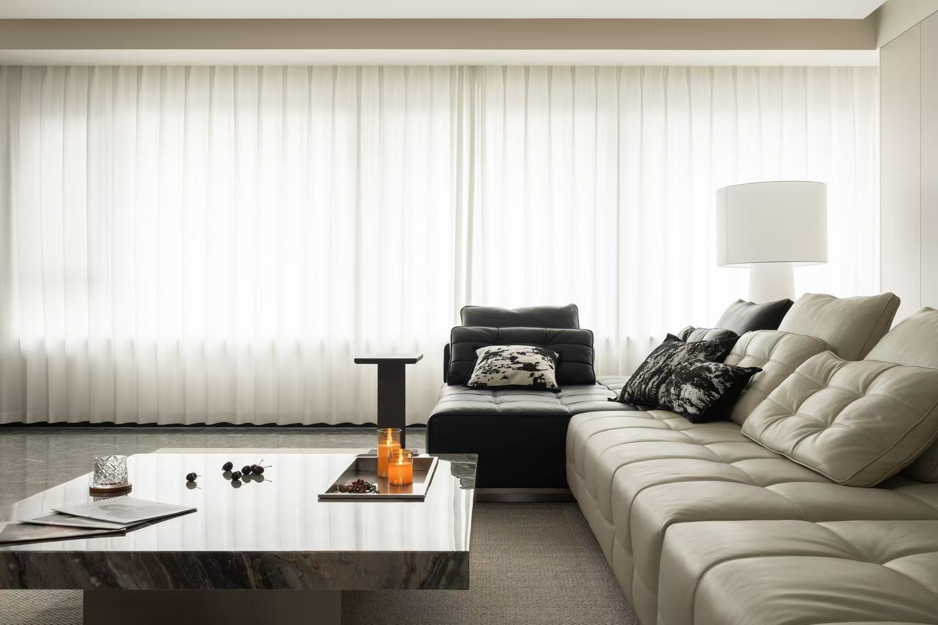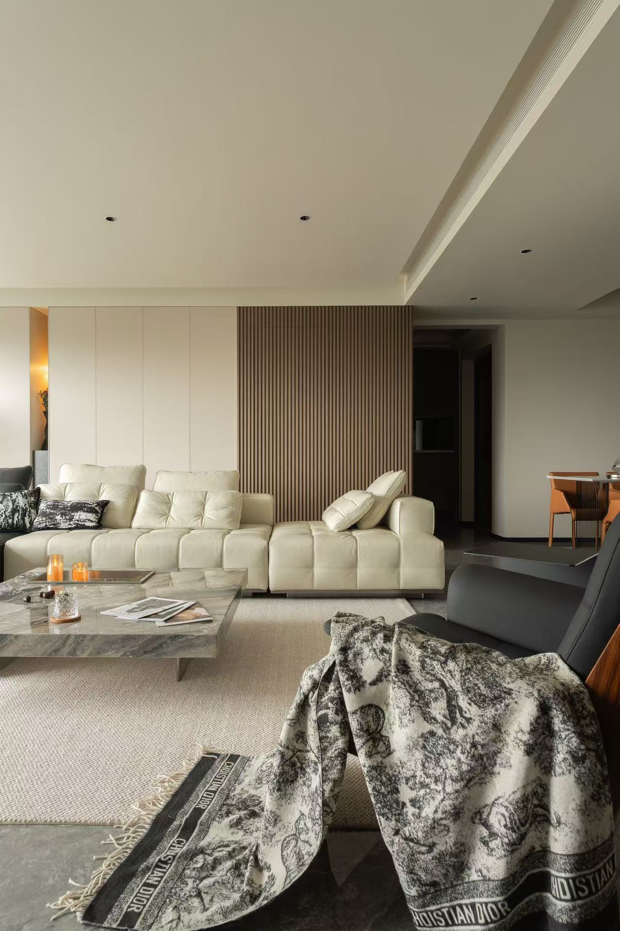 客厅整体采用多动线设计,以保证空间感。