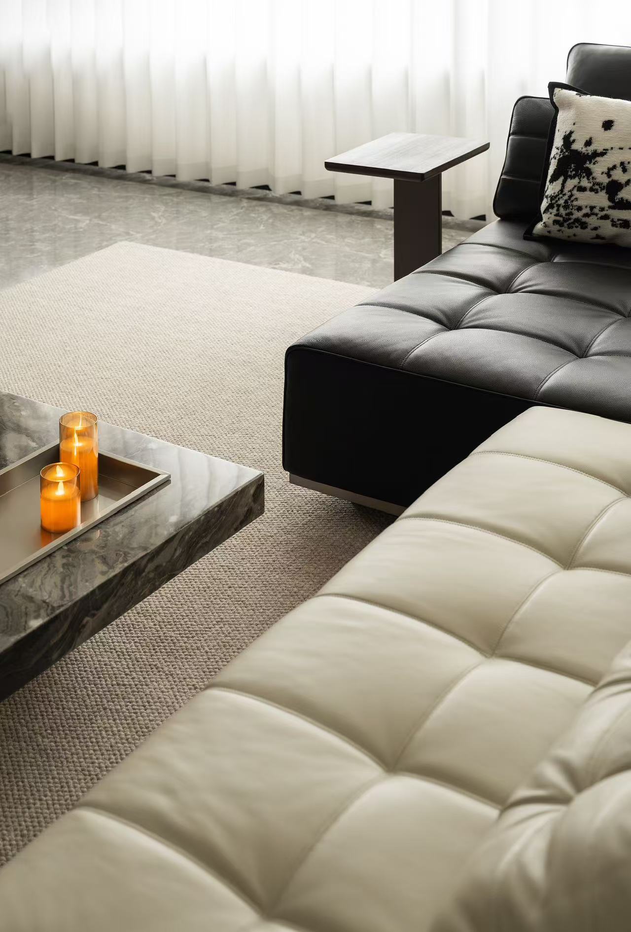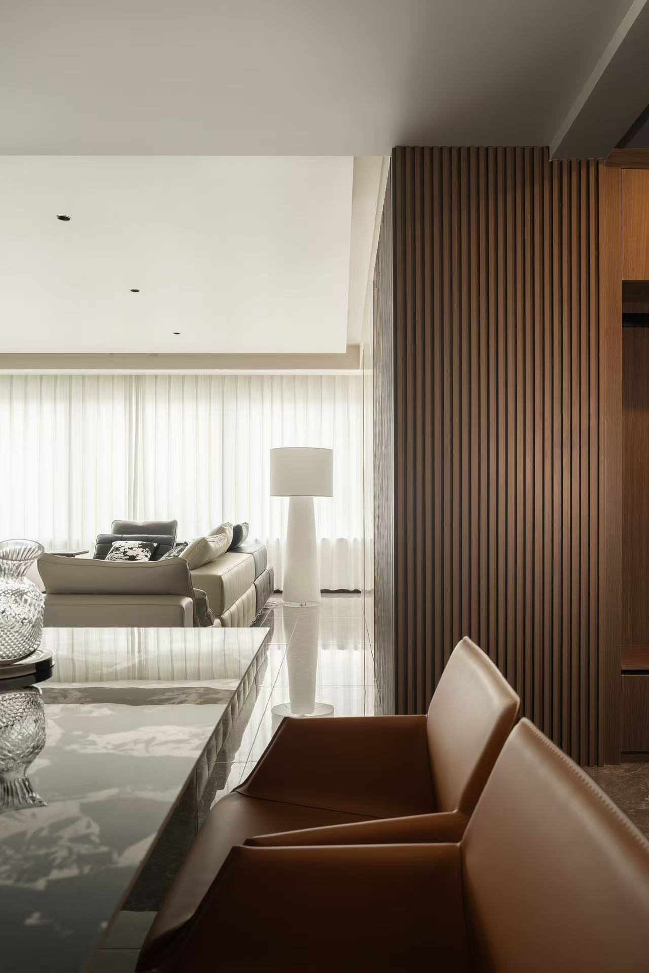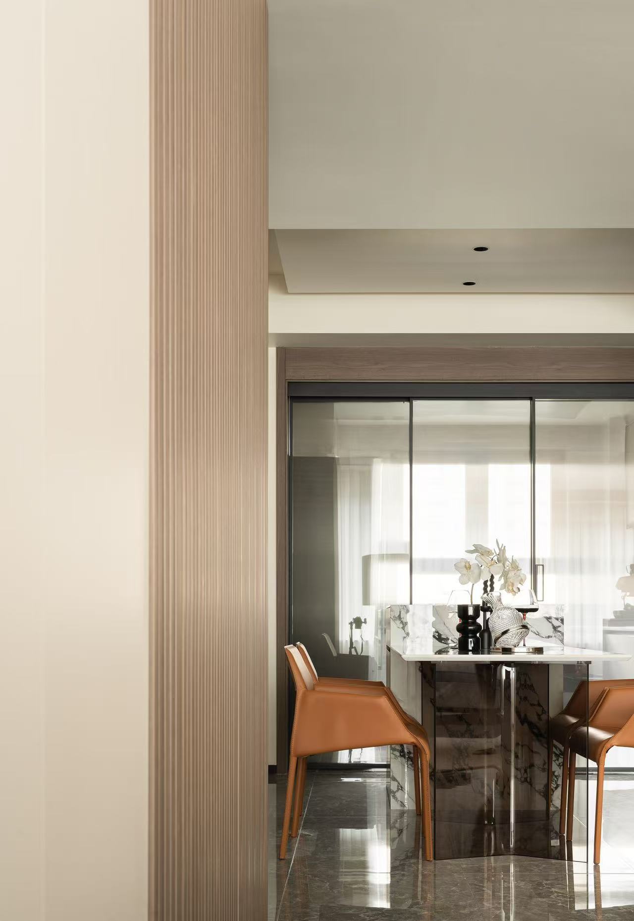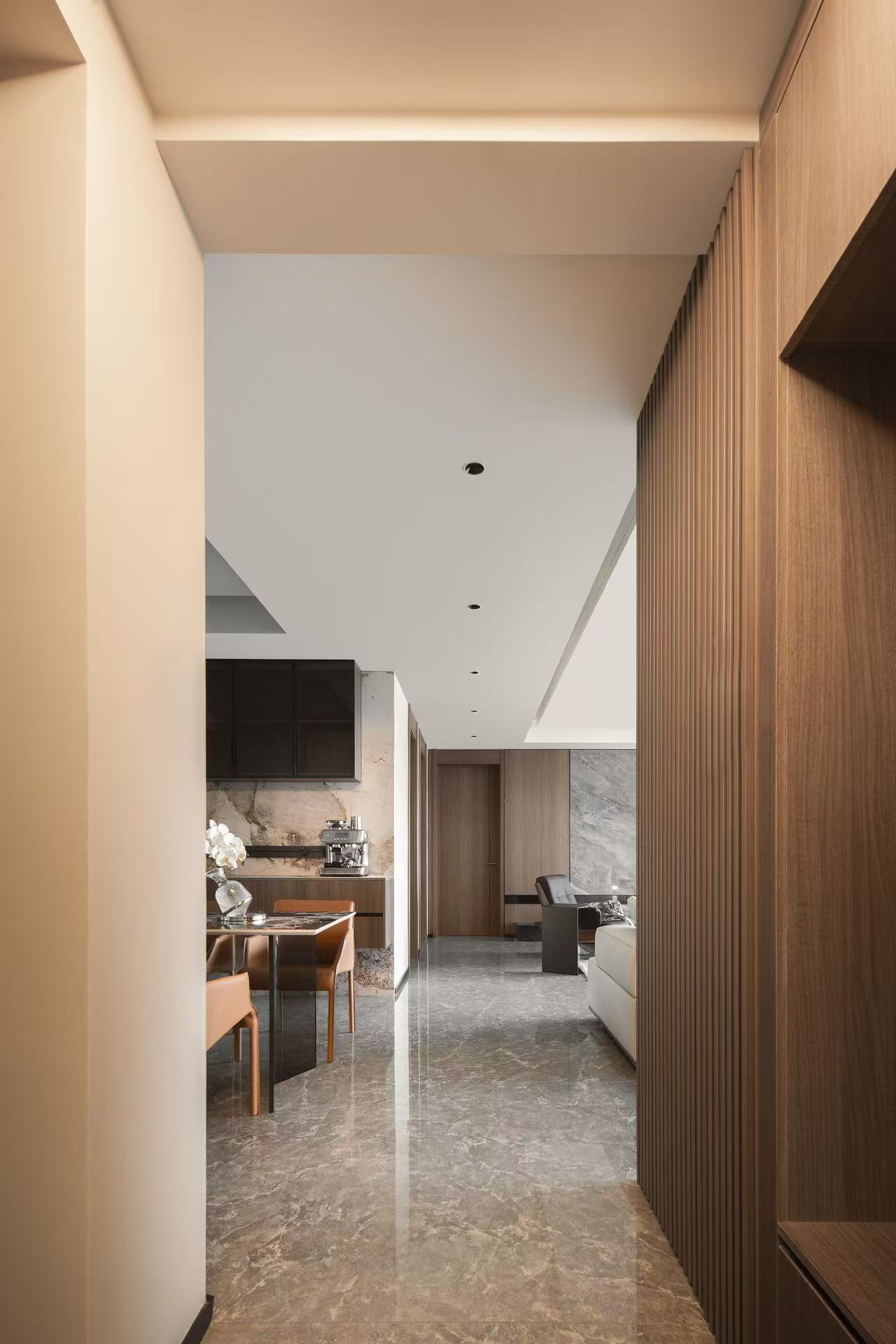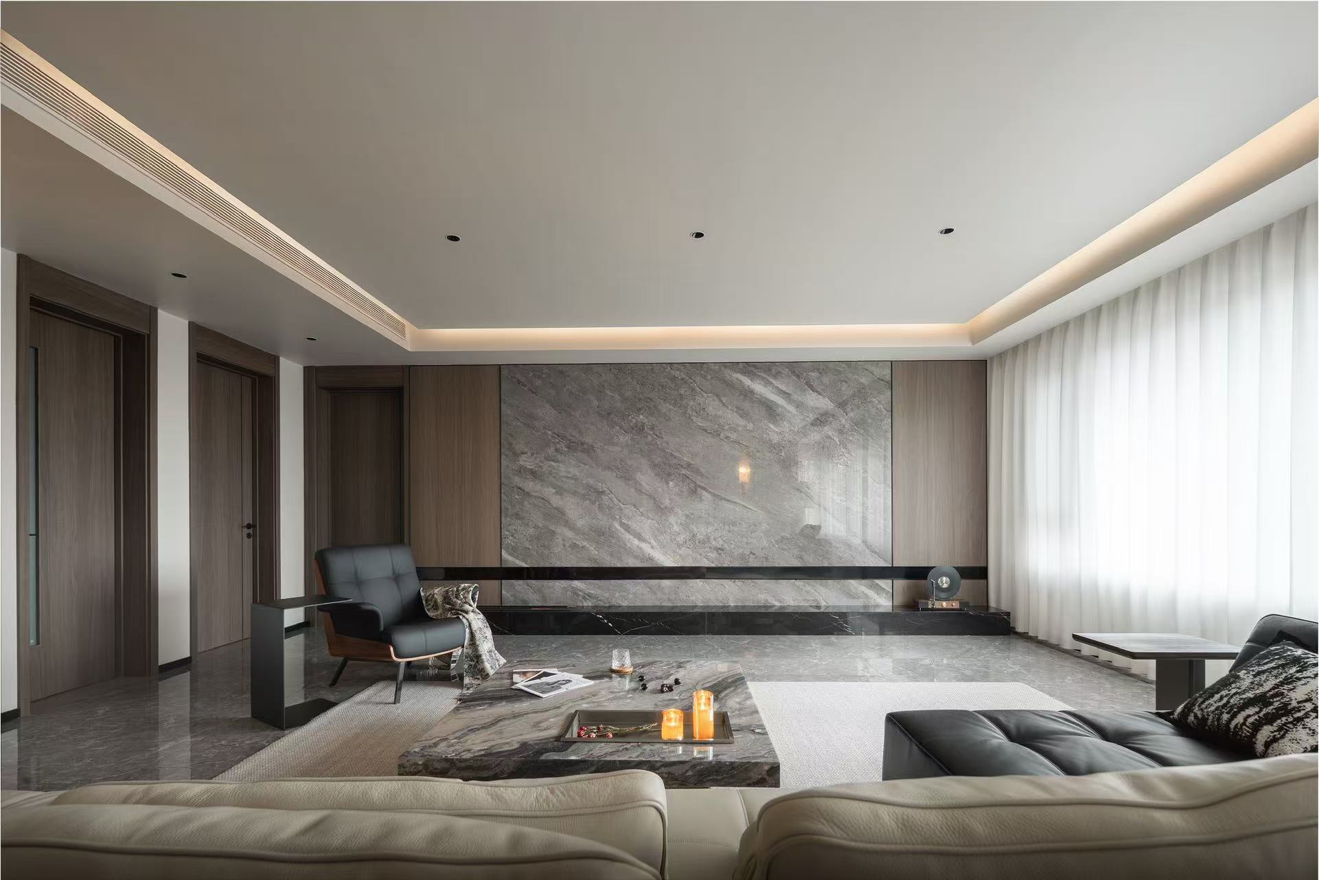 客厅整体采用多动线设计,以保证空间感。