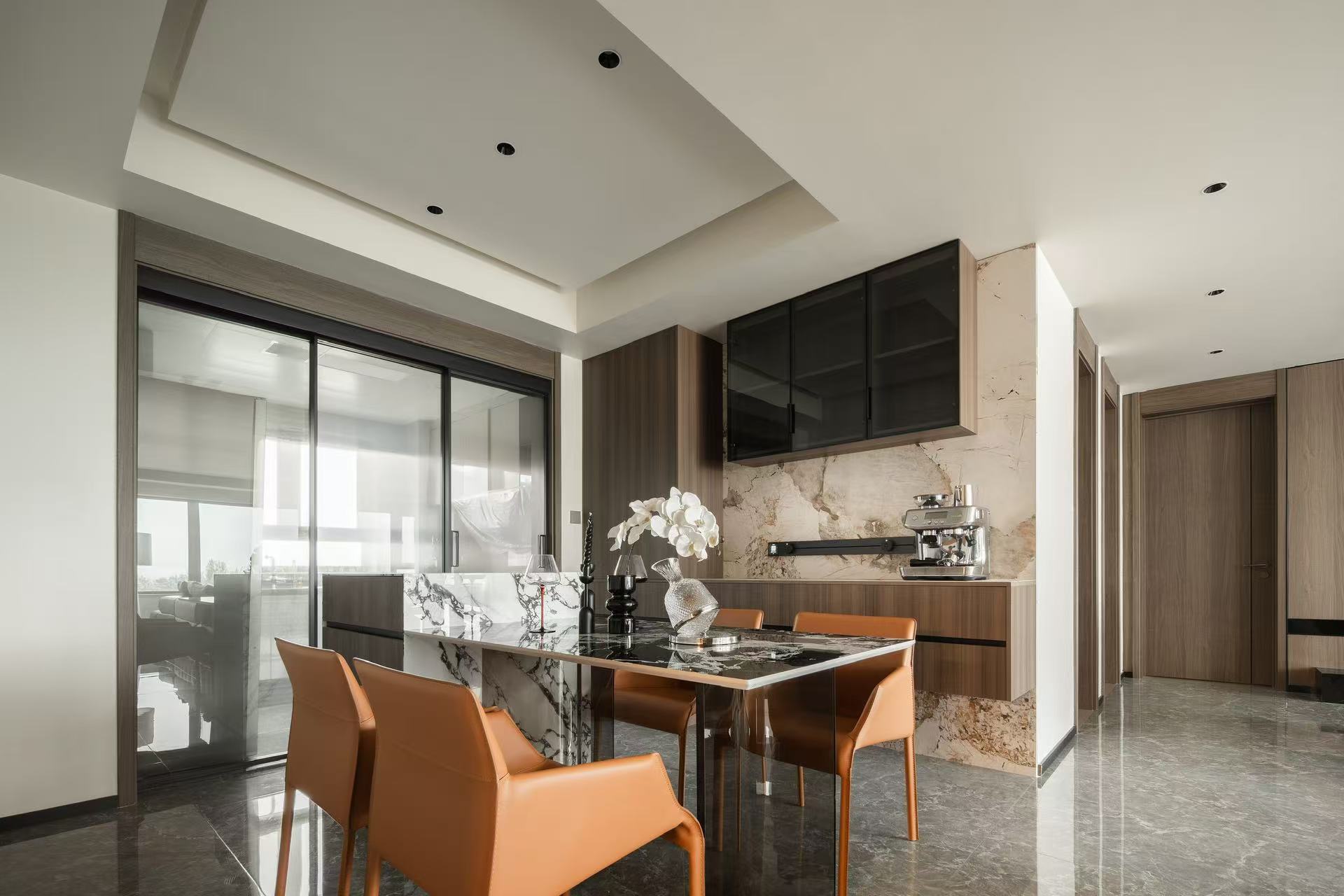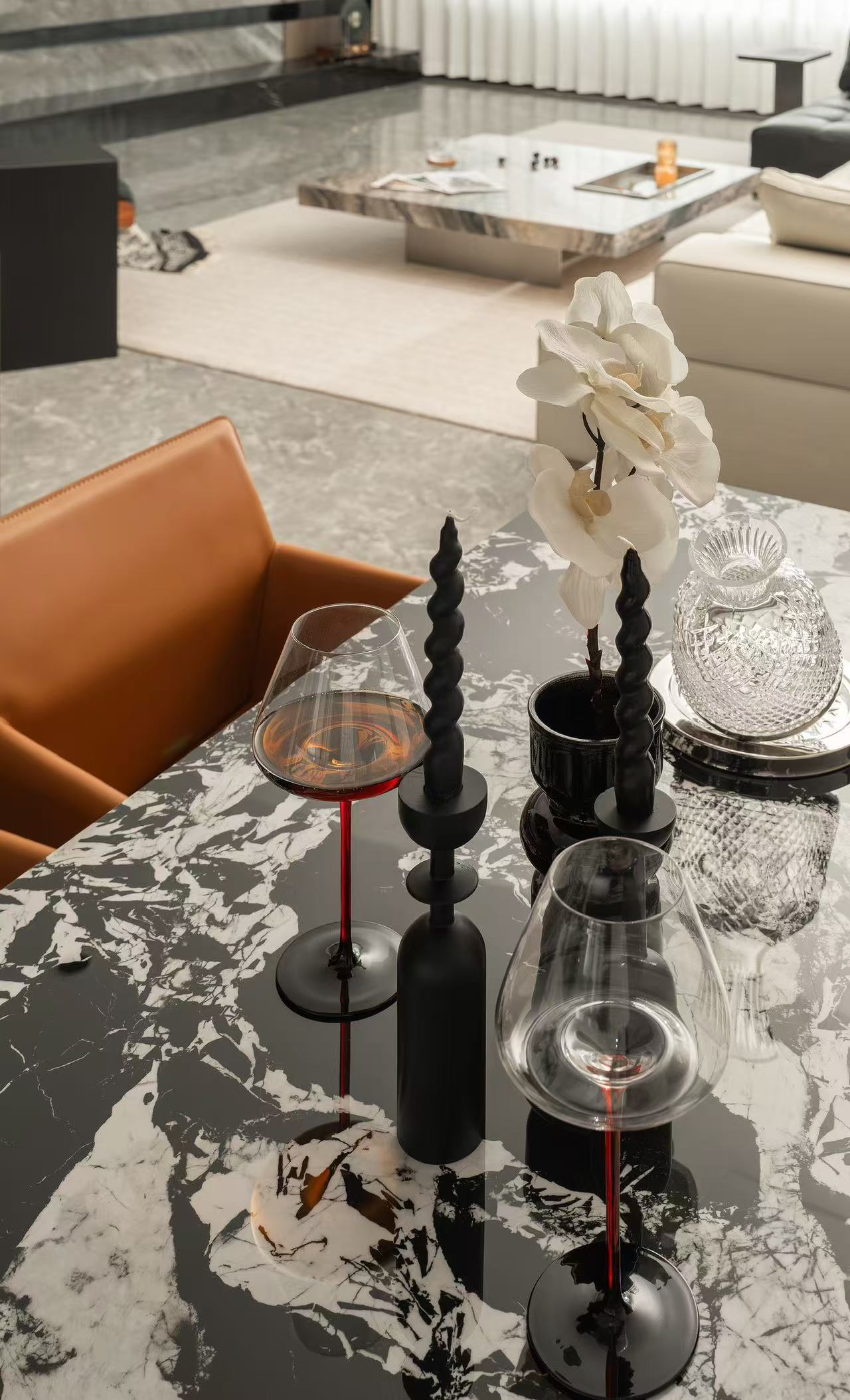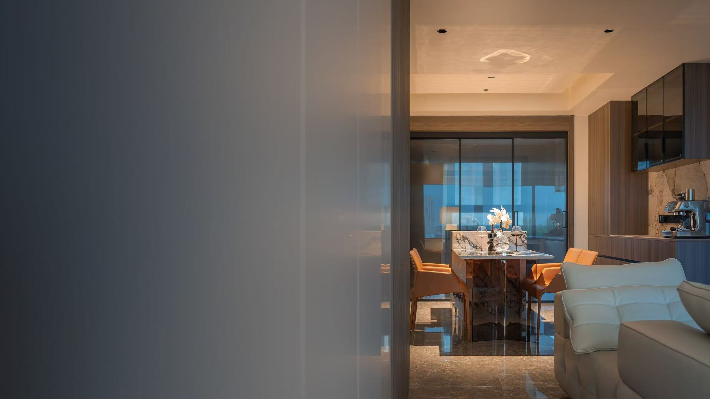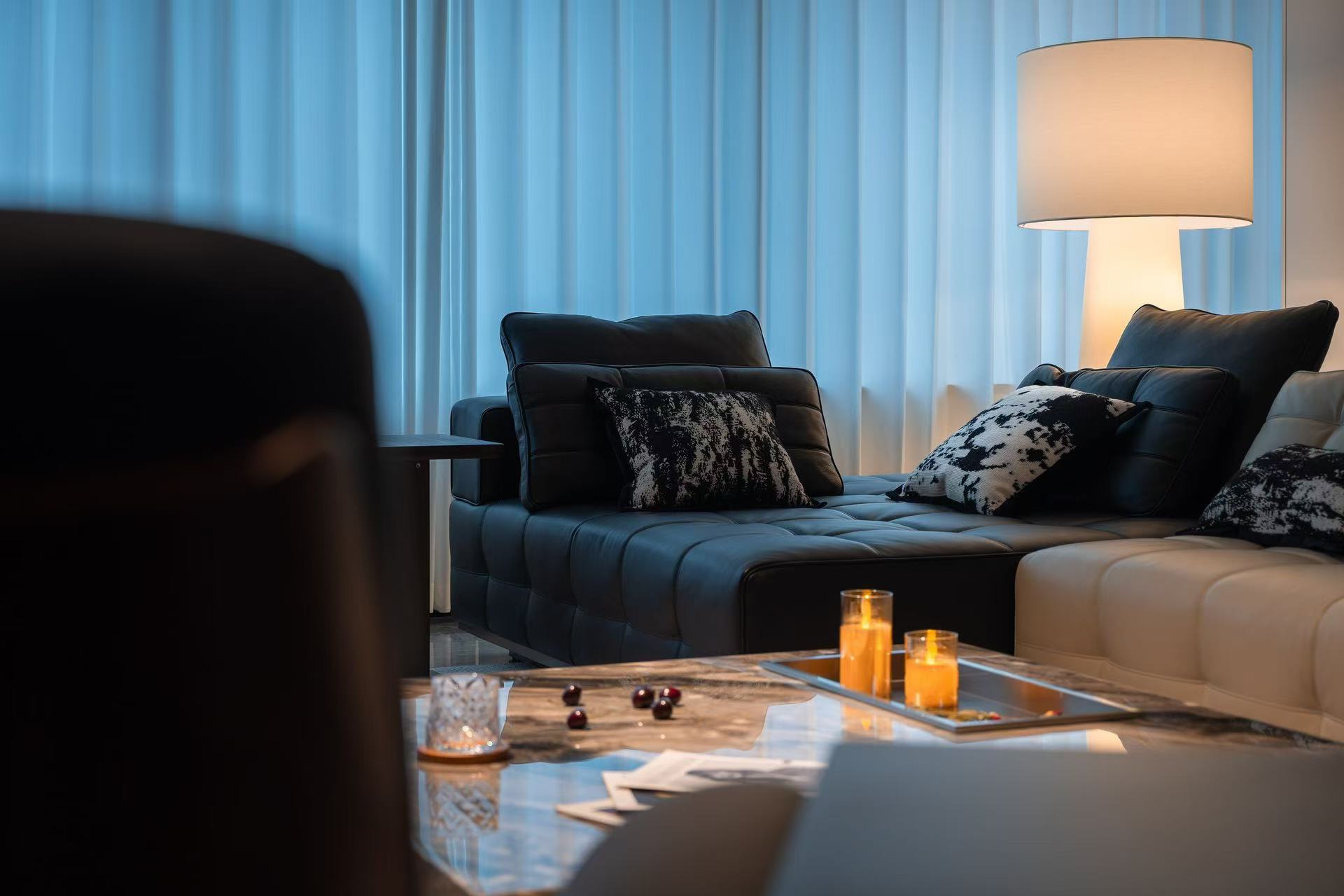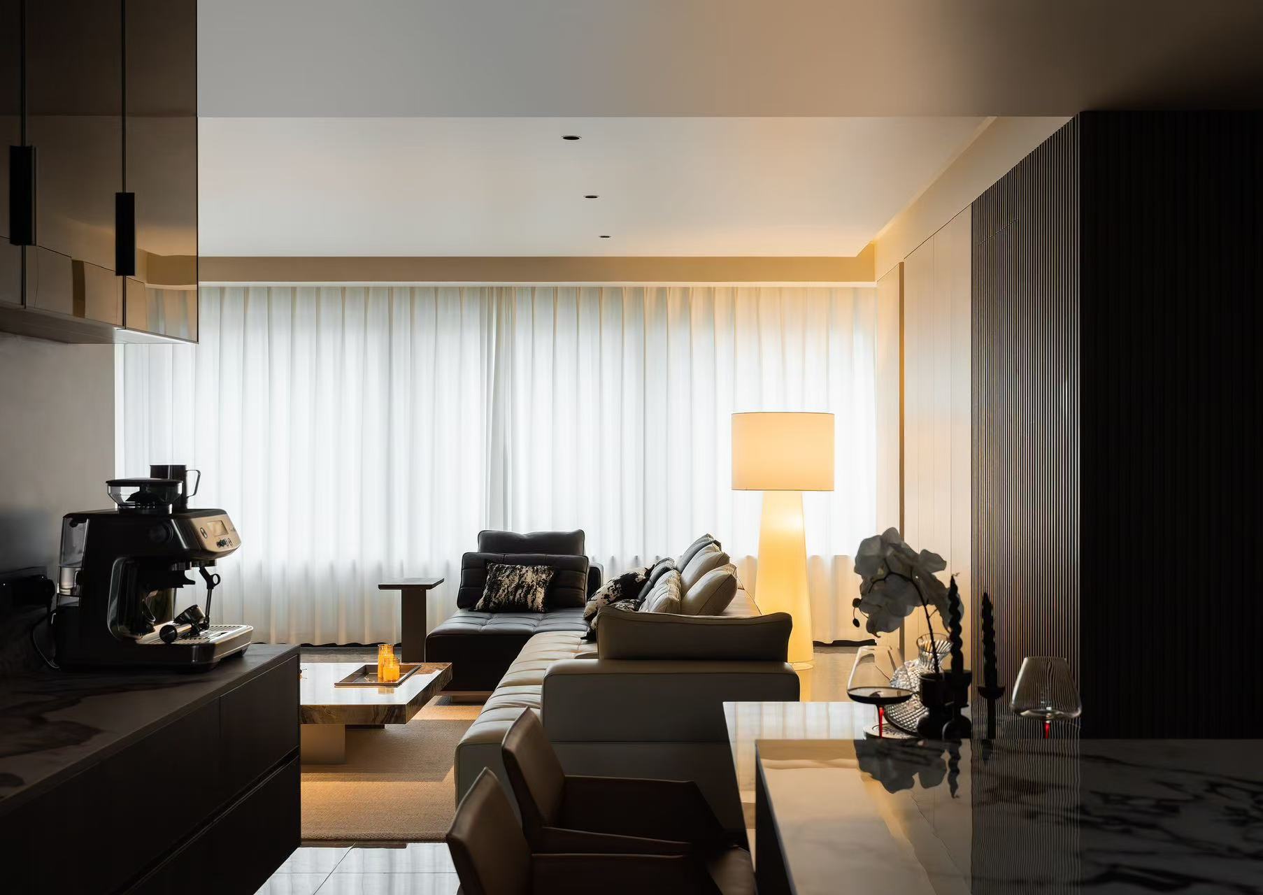 客厅整体采用多动线设计,以保证空间感。