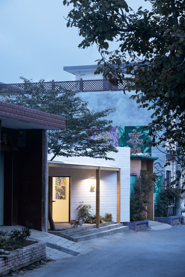 关于开放和共享,项目所在的街道,在两侧房屋的扩张和挤压下,其间的道路仅剩两米多宽,除了车辆通行,已无法继续承担人的活动,我们希望通过内退的建筑与其形成的半室外空间,成为了街道新的聚集点。 -