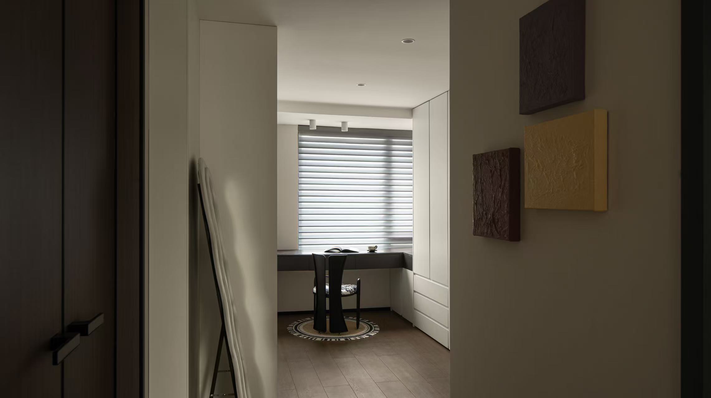空间意境:在空间场景设计时,我们考虑到实际的生活习惯。我们把两个常住的空间做了一定的分离。 父母与小孩需要独处时又自己的空间互不干扰。 在公区我们也设计了交流玩乐区。在饭后及平时我们能在公区有宽敞的空间做亲子互动、沟通、交流。 让家里回归成一个温馨的家园。
