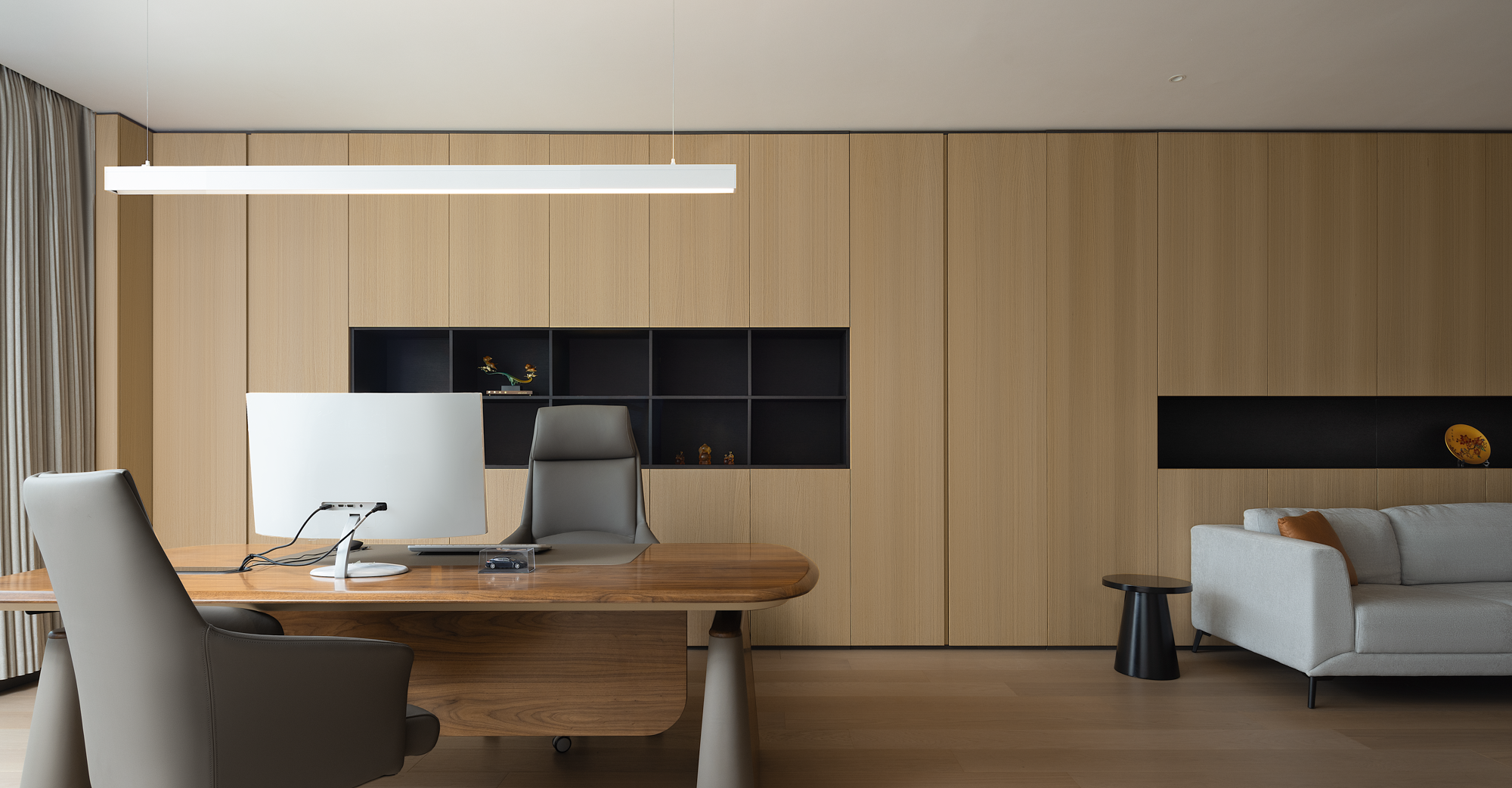 干净的体块处理手法来表达总经办,纯粹又不失大体。