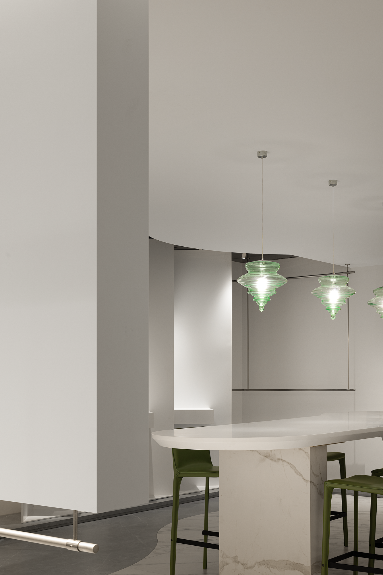 设计师办公区,爆单的产品需要认真探索和独立展示,岩板视觉中心的引导为他呈现,犹如舞台聚光下的“演员”