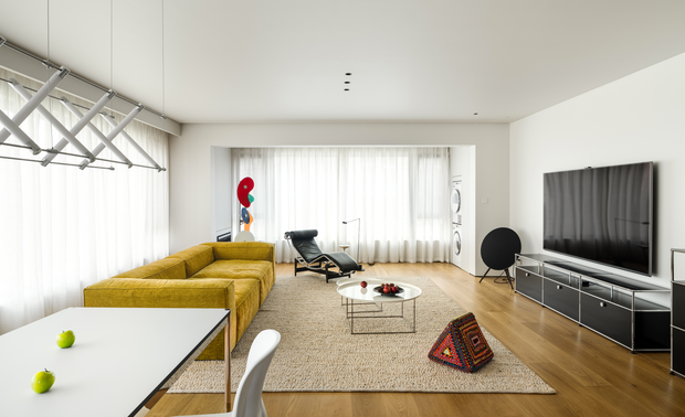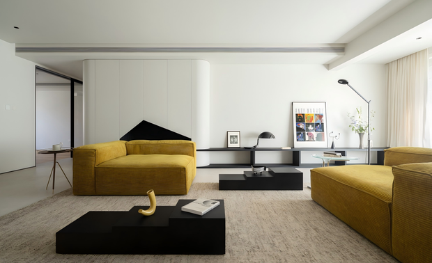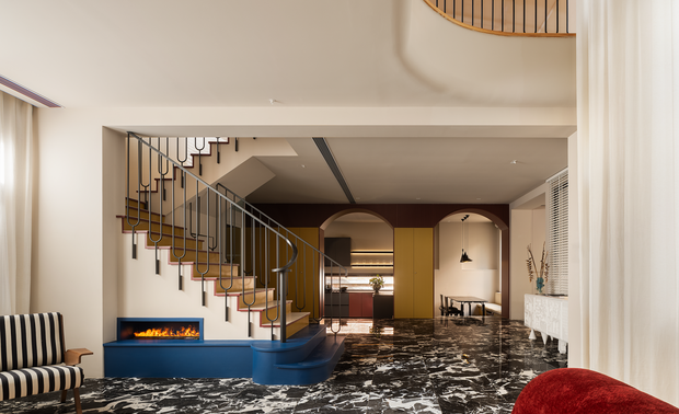设计师没有将客厅挑空全部封闭,而是特意留了1/3的挑空,也是整体结构改造的点睛之处。1/3的挑空让一层公区的层高得以部分保留,更为一层和二层之间的互动场景留出了可能性。 -