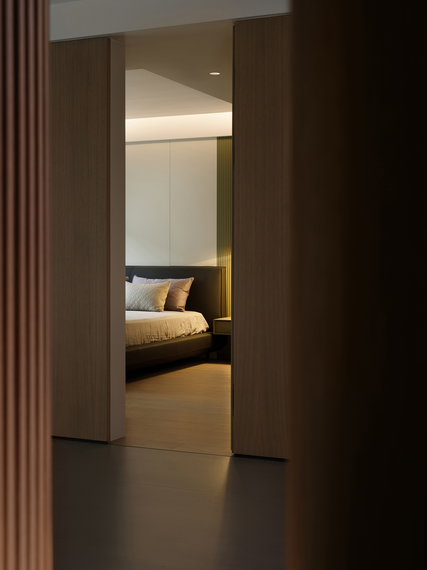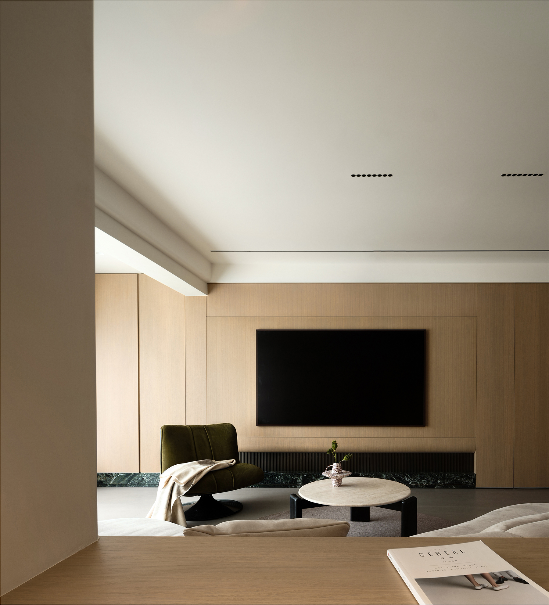 使用理性的设计语言重构空间秩序,以简洁的木、白线条构建空间骨架,虚与实、光与影,或穿插,或咬合,或透视,空间关系传递出丰富的空间张力。