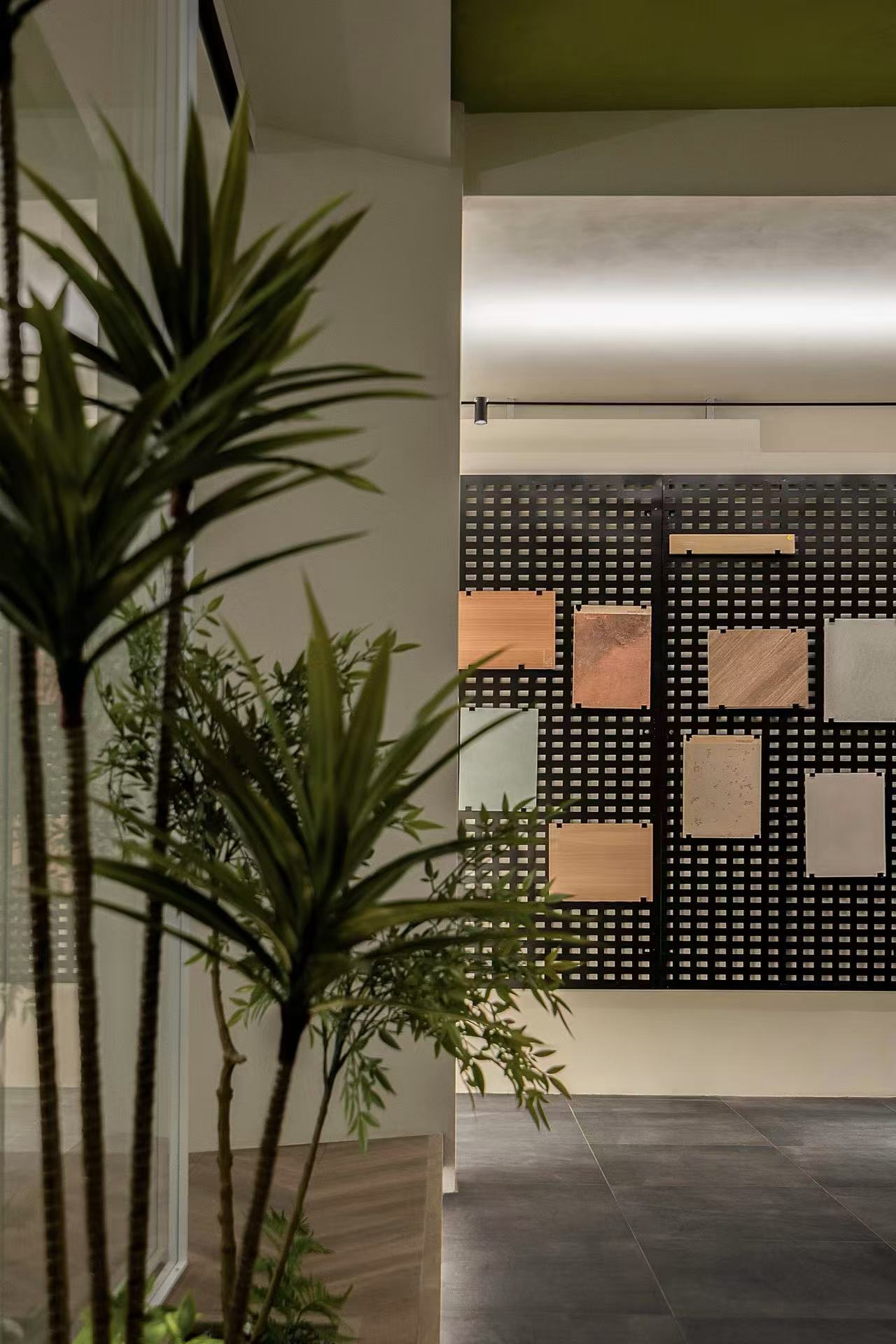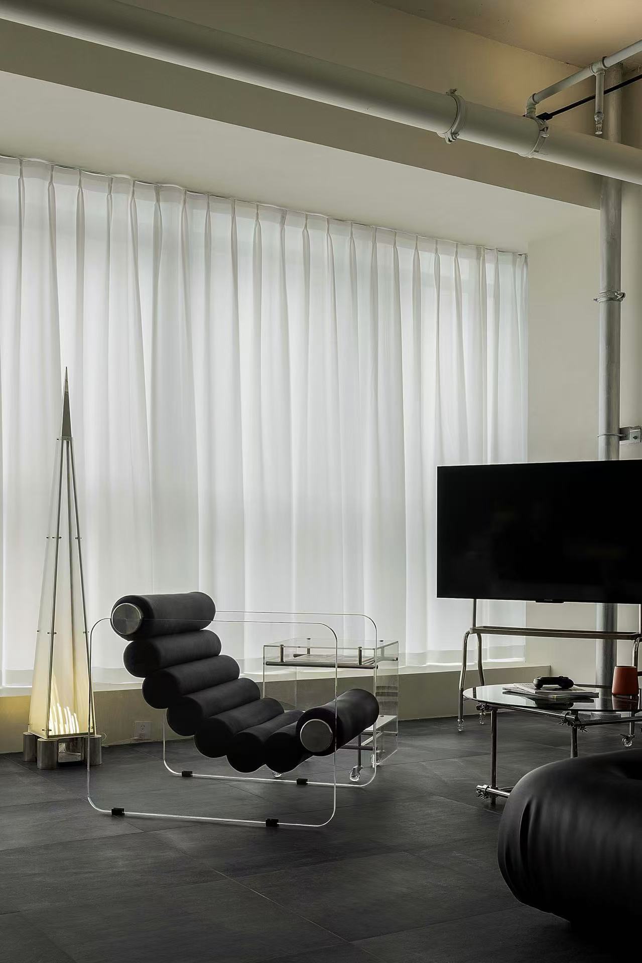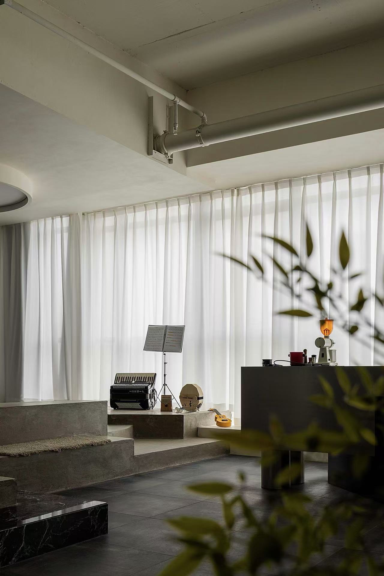 选材上 选用了清水混凝土板 地面水泥自流平 墙面艺术涂料