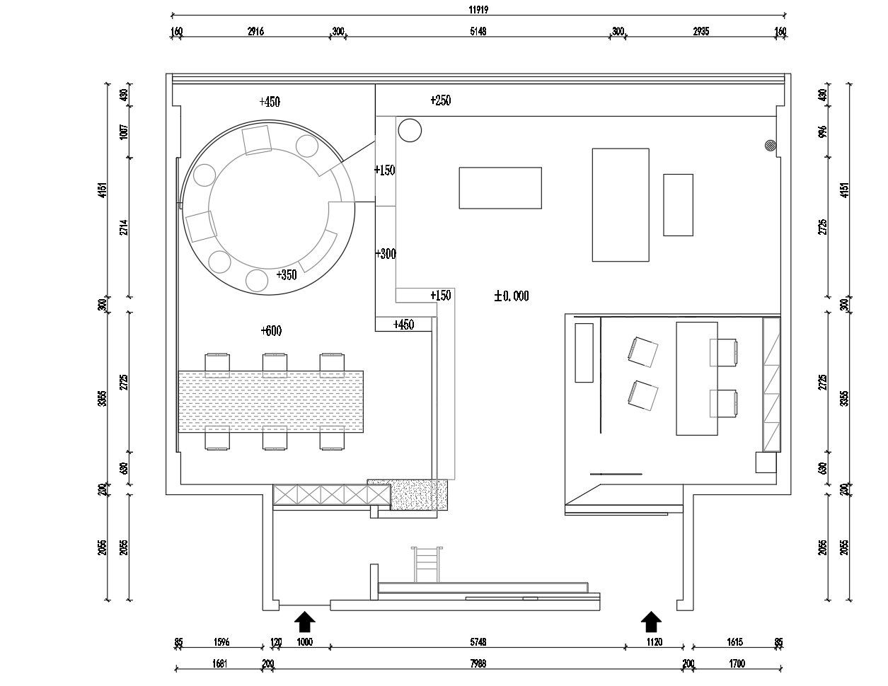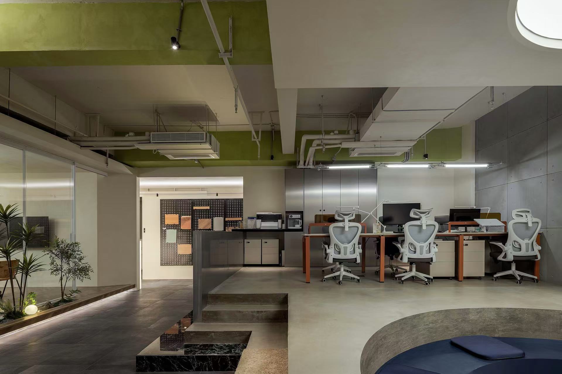 办公空间整体做了抬高 侧边下沉式沙龙区呼应